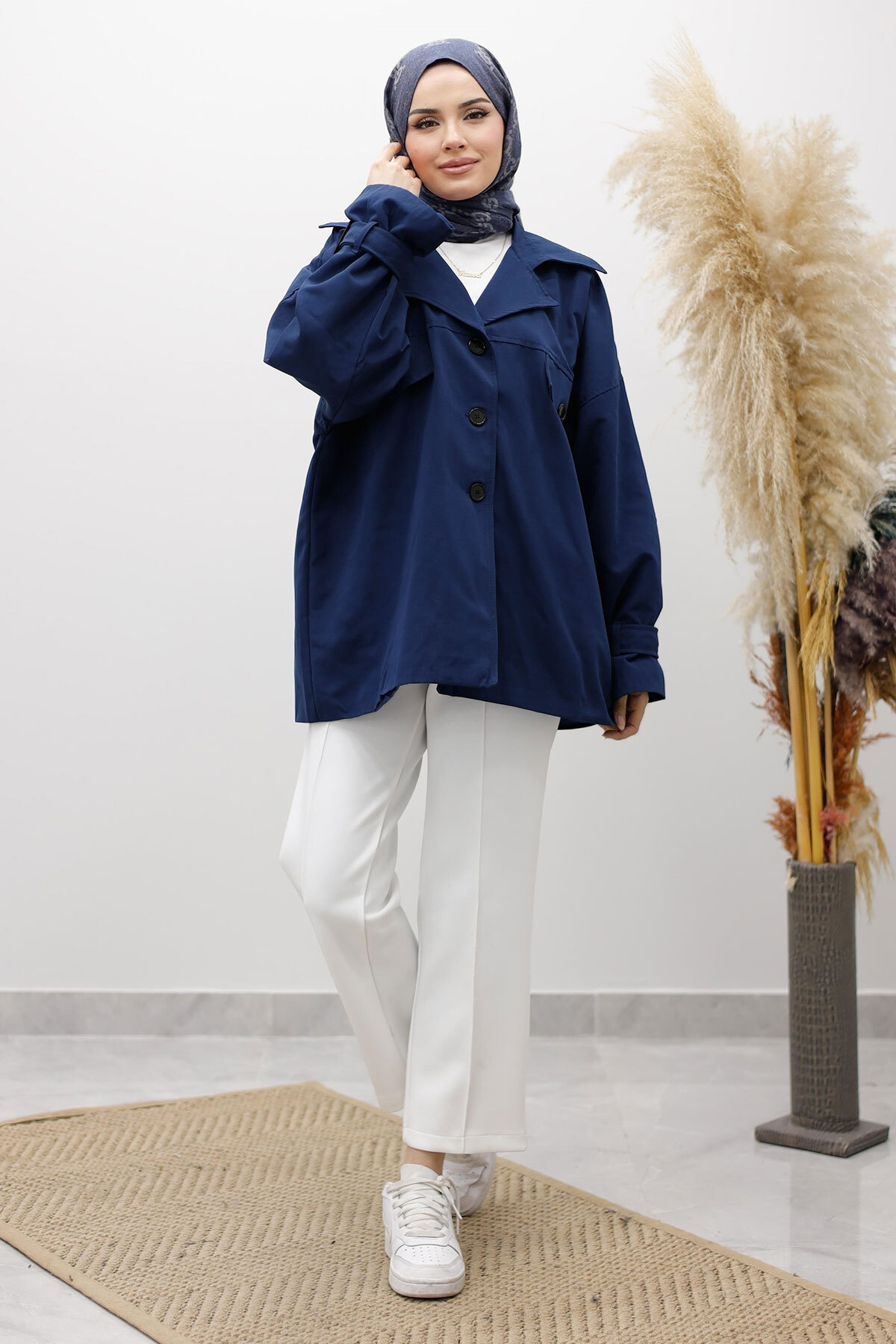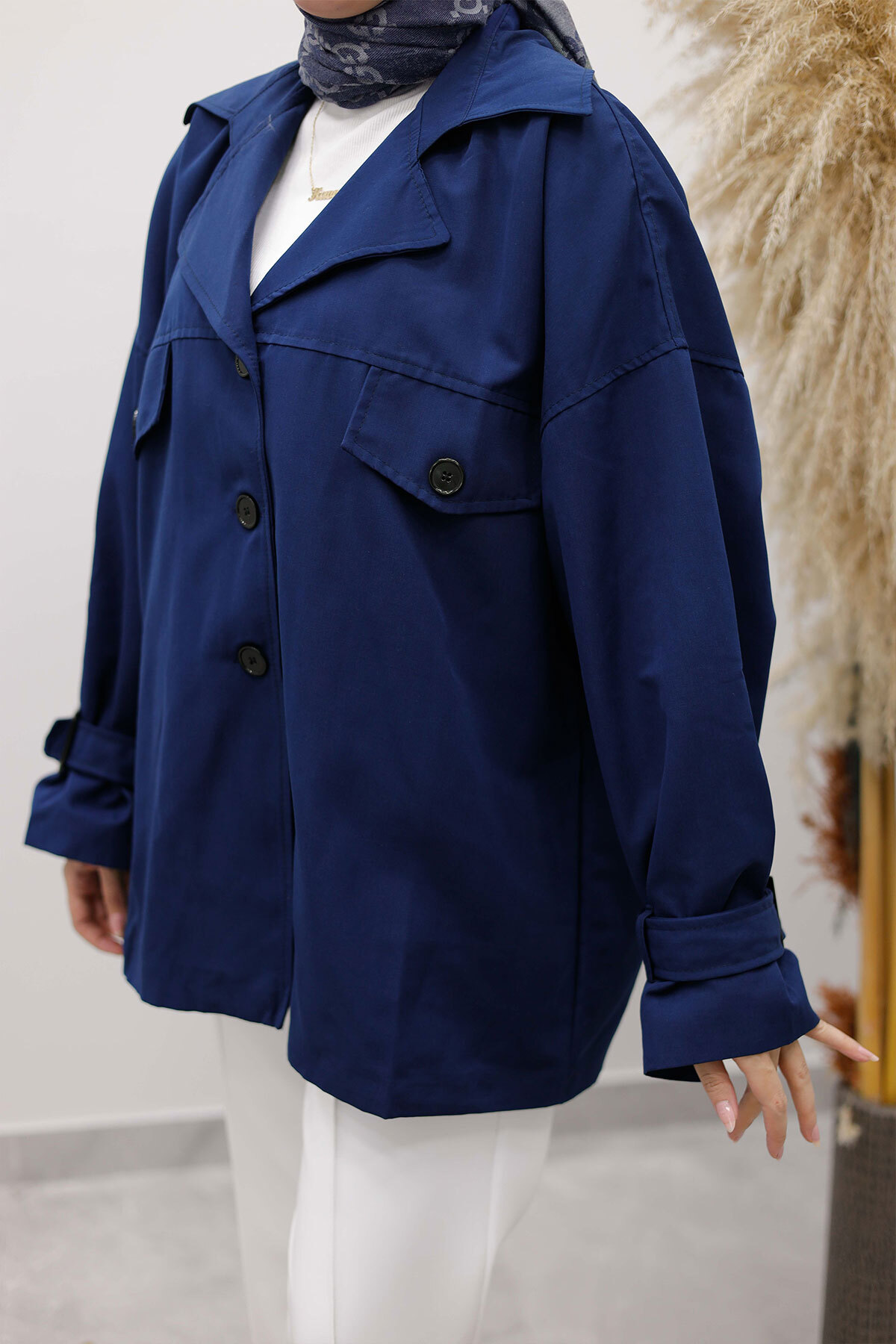 Apolet Detaylı Kruvaze Yaka Trençkot TSD260128 Lacivert Özellikleri