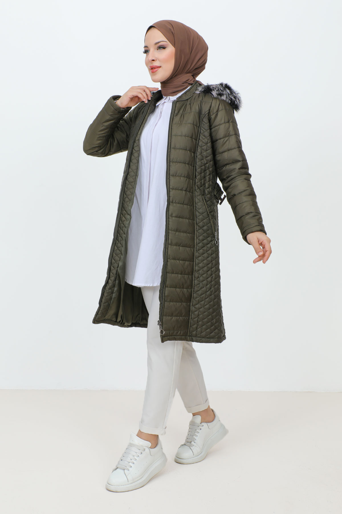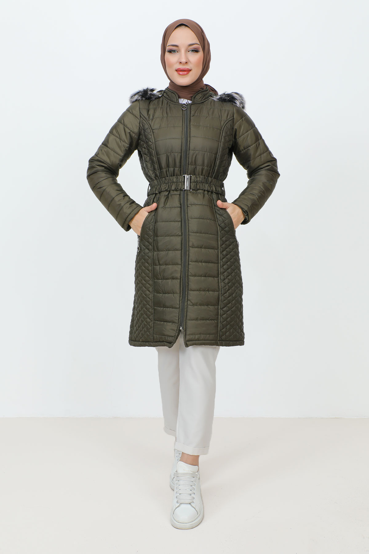 Ürün Özelliği : Yeni sezon Ara Boy Kapitone Mont modelidir. Boydan fermuar ile kapanabilir olup belinde lastik kemer vardır. İçi astarlıdır. Kullanılabilir iki cebi bulunmaktadır. Kapüşonlu bir modeldir. Kapişonu isteğe göre takılıp çıkarılabilir. Kapüşonu kürklüdür. Ürün renginde konsept çekimlerinden dolayı ton farklılığı olabilir.