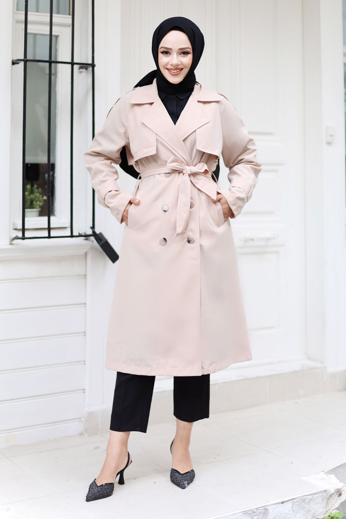 Arkası Zincir Detaylı Trençkot TSD240902 Bej Özellikleri