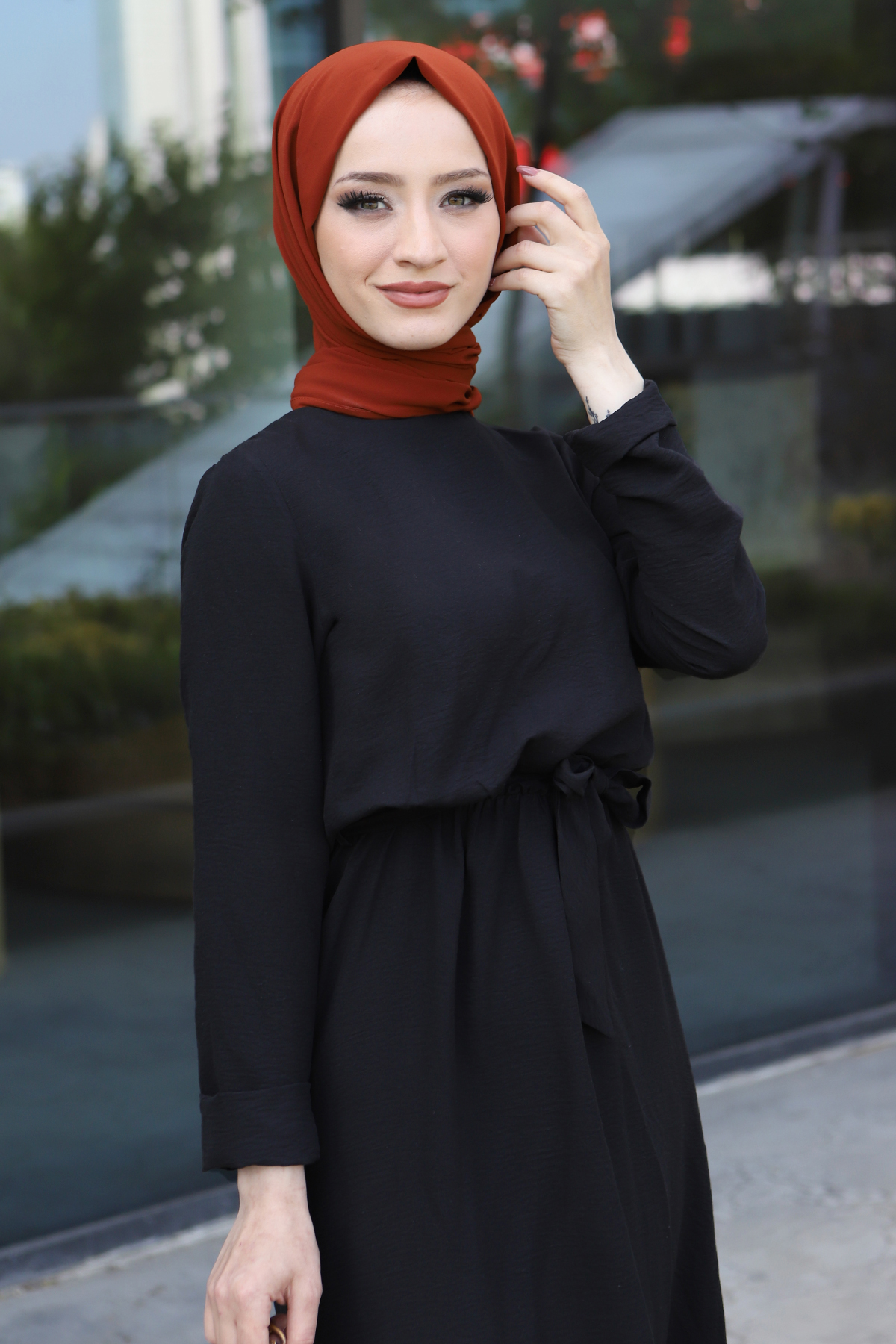 Ürün Özelliği : Yeni sezon Ayrobin Elbise modelidir. Arkadan düğme ile kapanmaktadır. Bisiklet yakalıdır. Beli lastiklidir.Belinde kuşak detayı bulunmaktadır. Ürün renginde konsept çekimlerinden dolayı ton farklılığı olabilir.