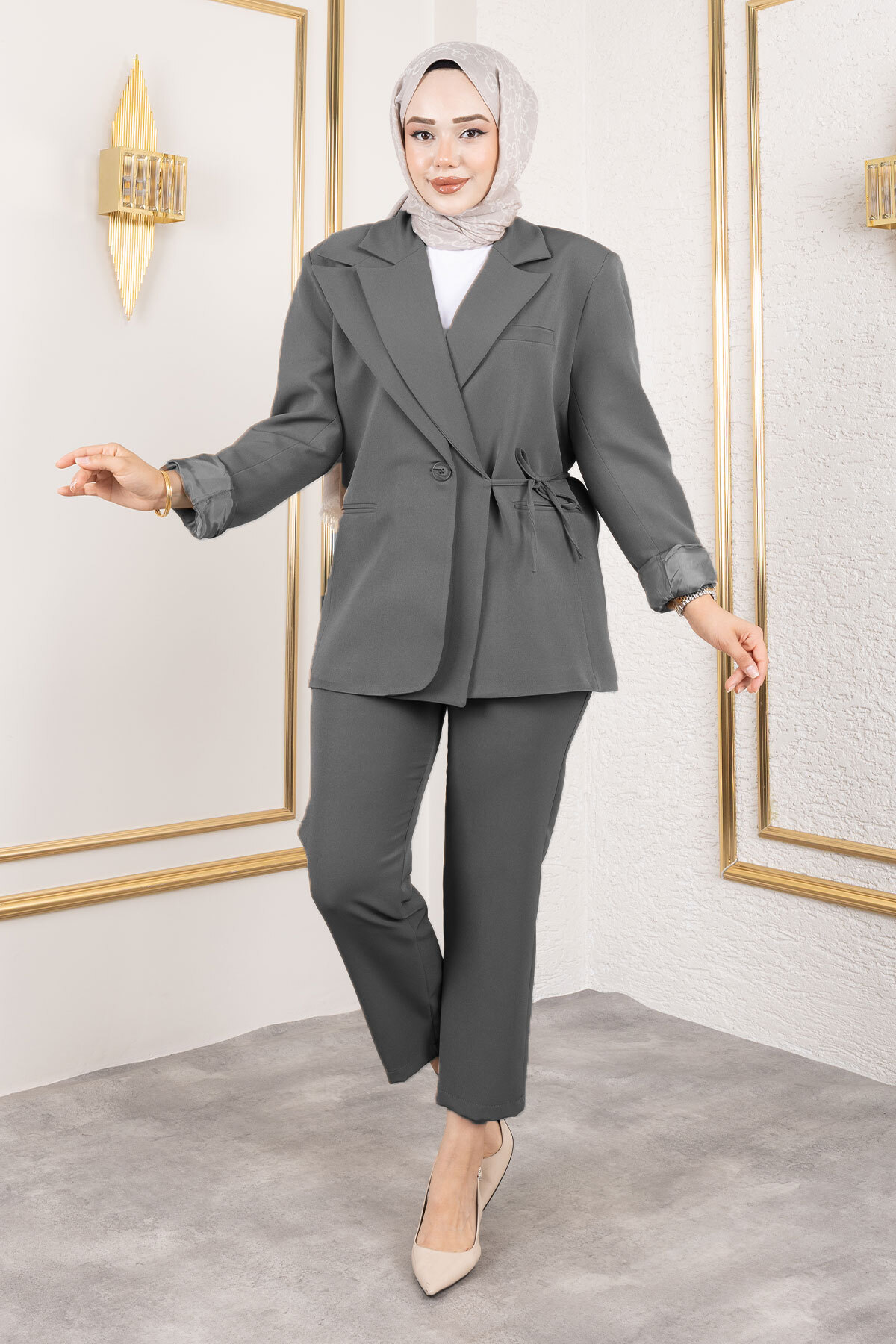 Bağlama Detaylı Blazer Takım TSD250196 Vizon Özellikleri