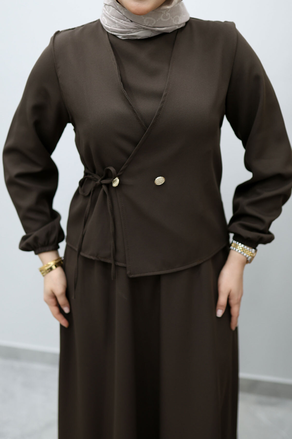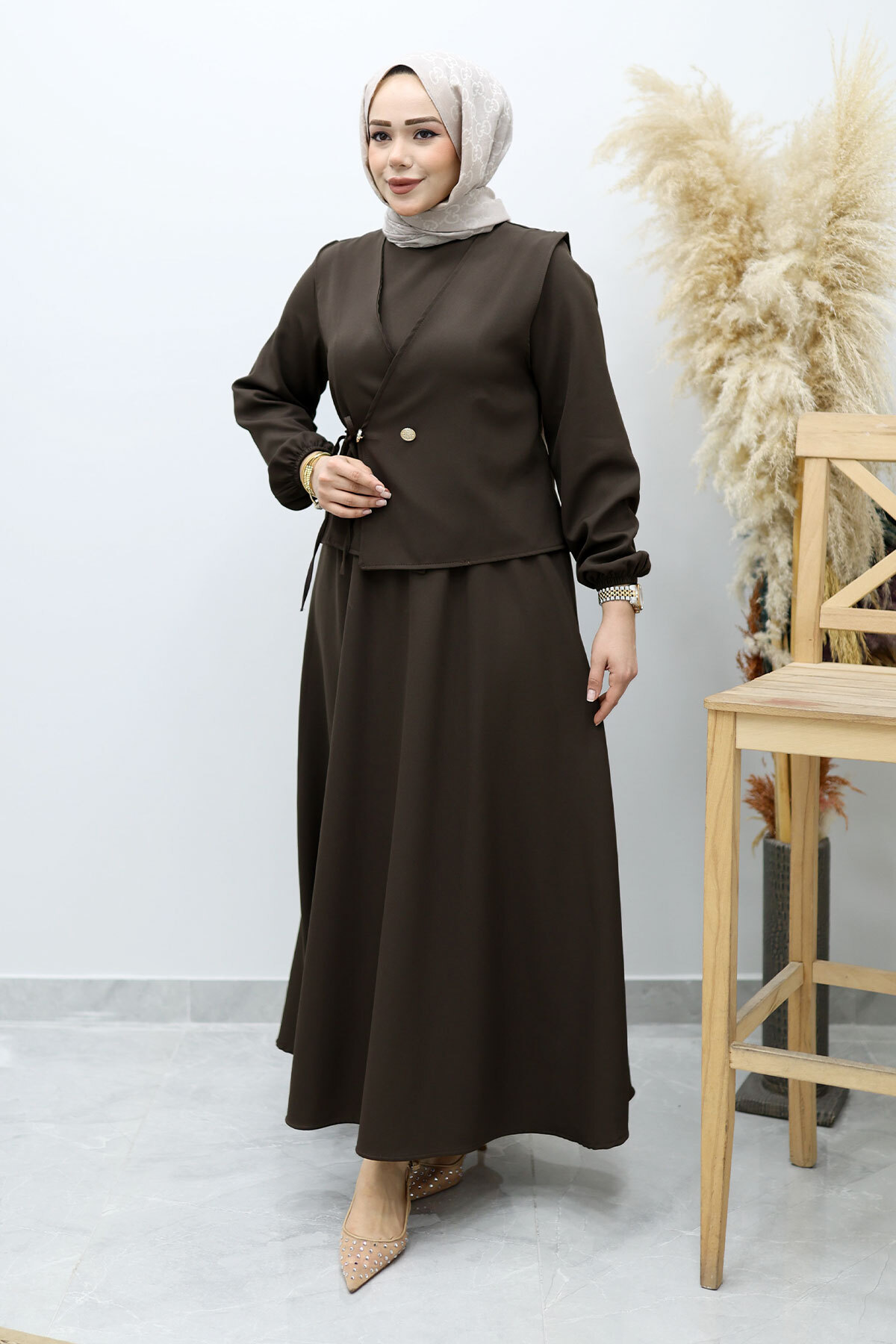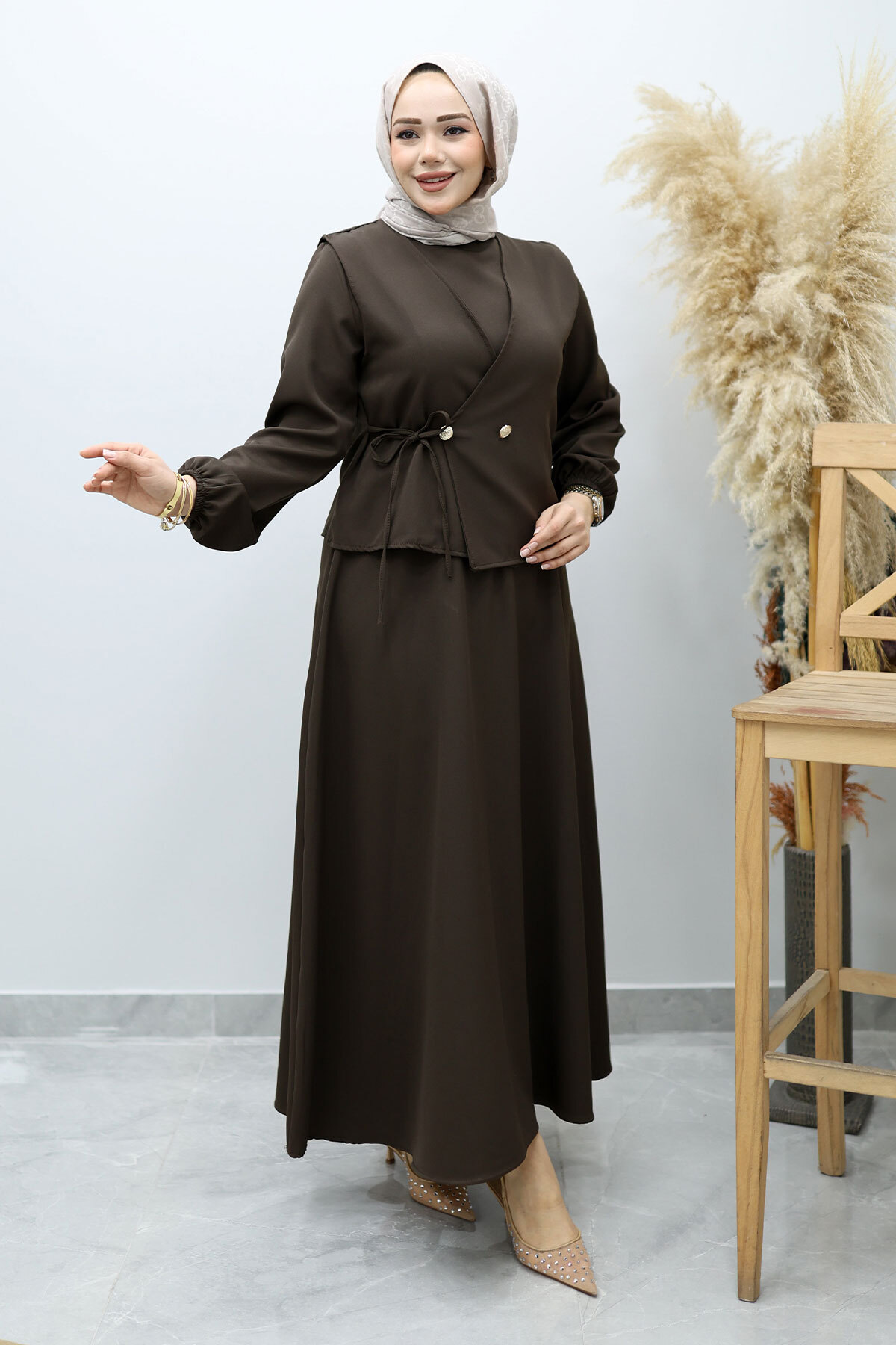Bağlamalı Yelekli Elbise TSD260153 Acı Kahve