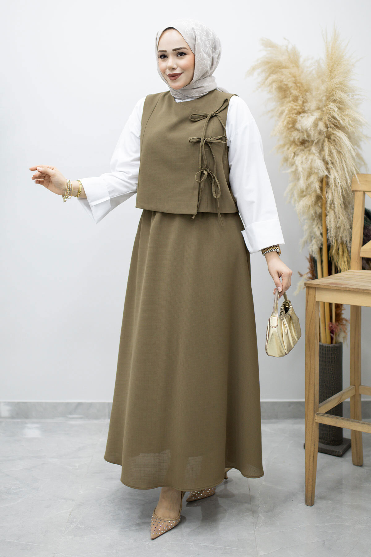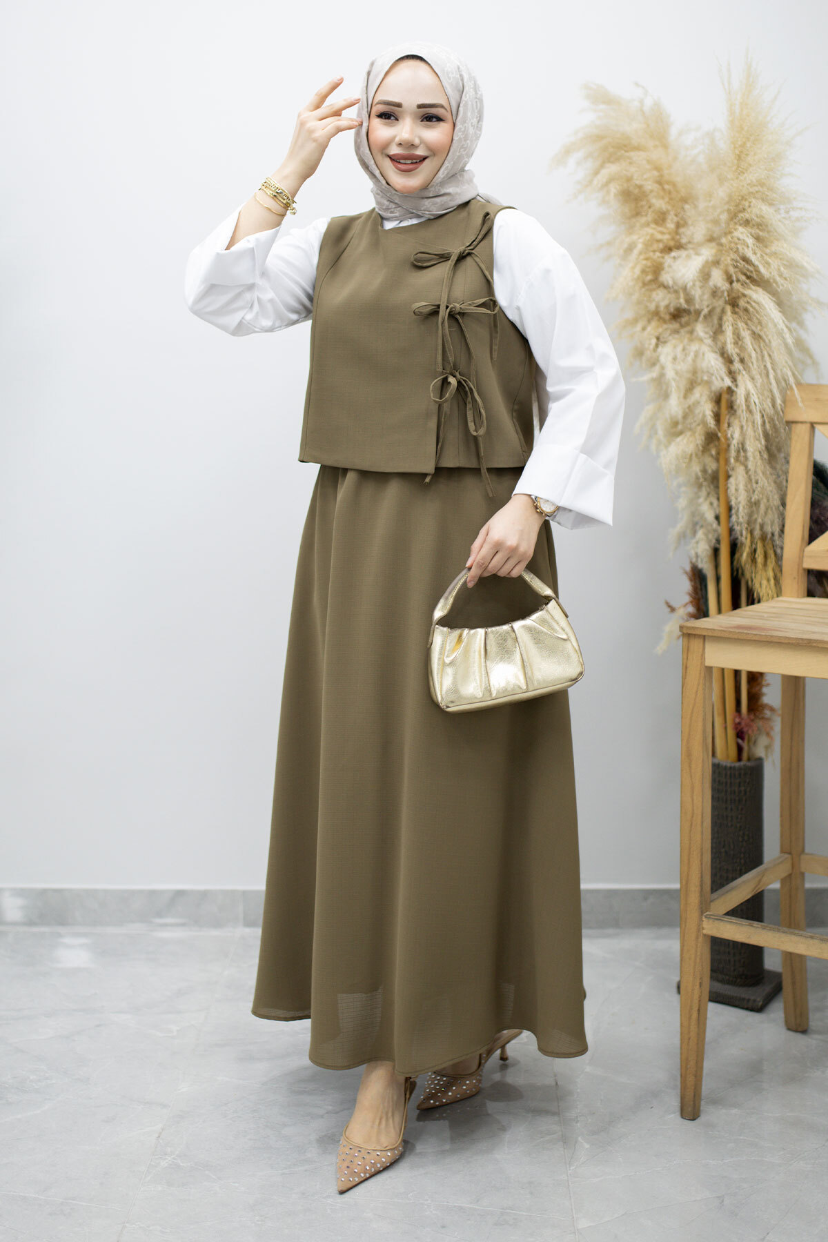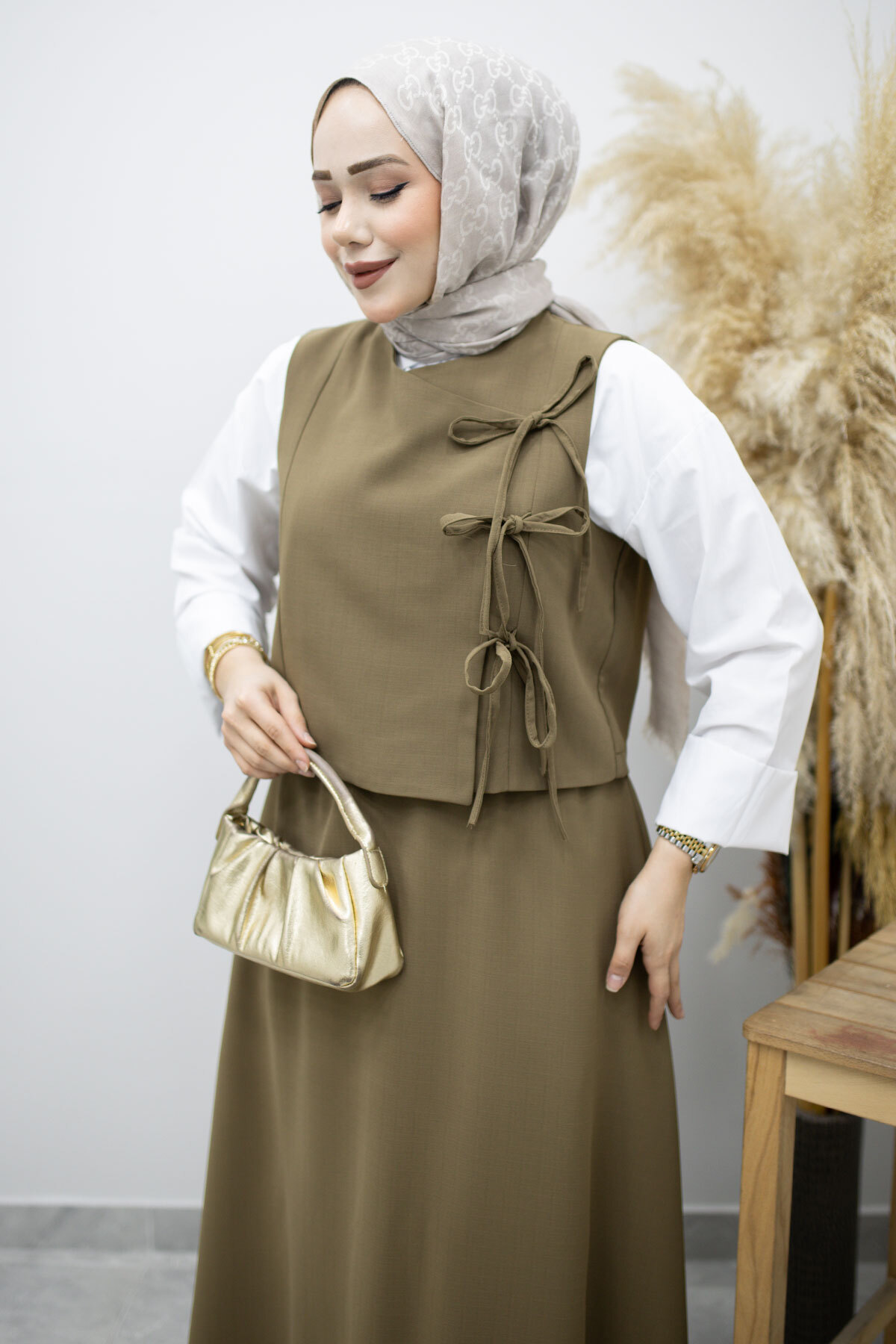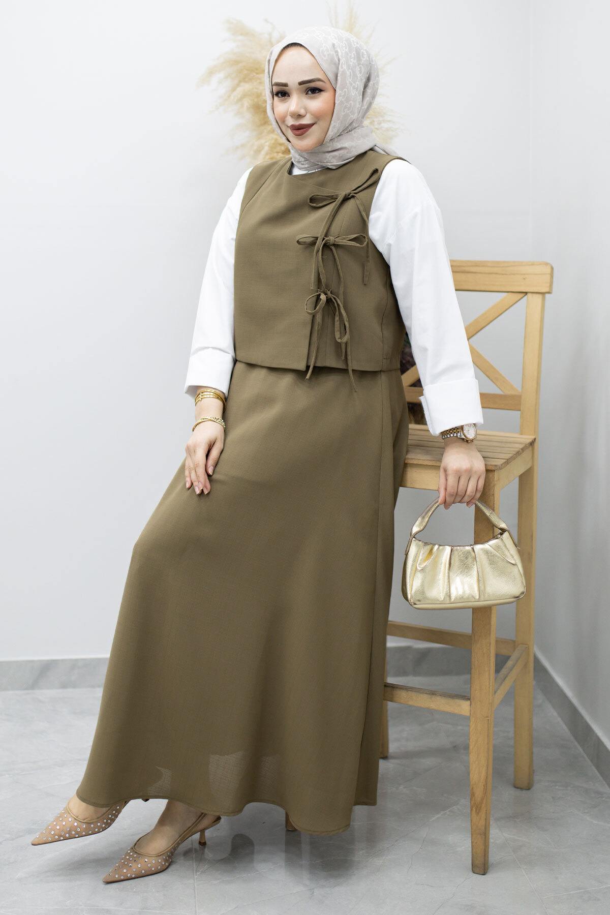 Ürün Özelliği : Yeni sezon Bağlamalı Yelekli İkili Takım modelidir.
