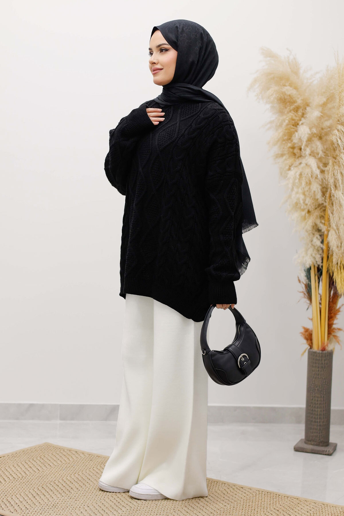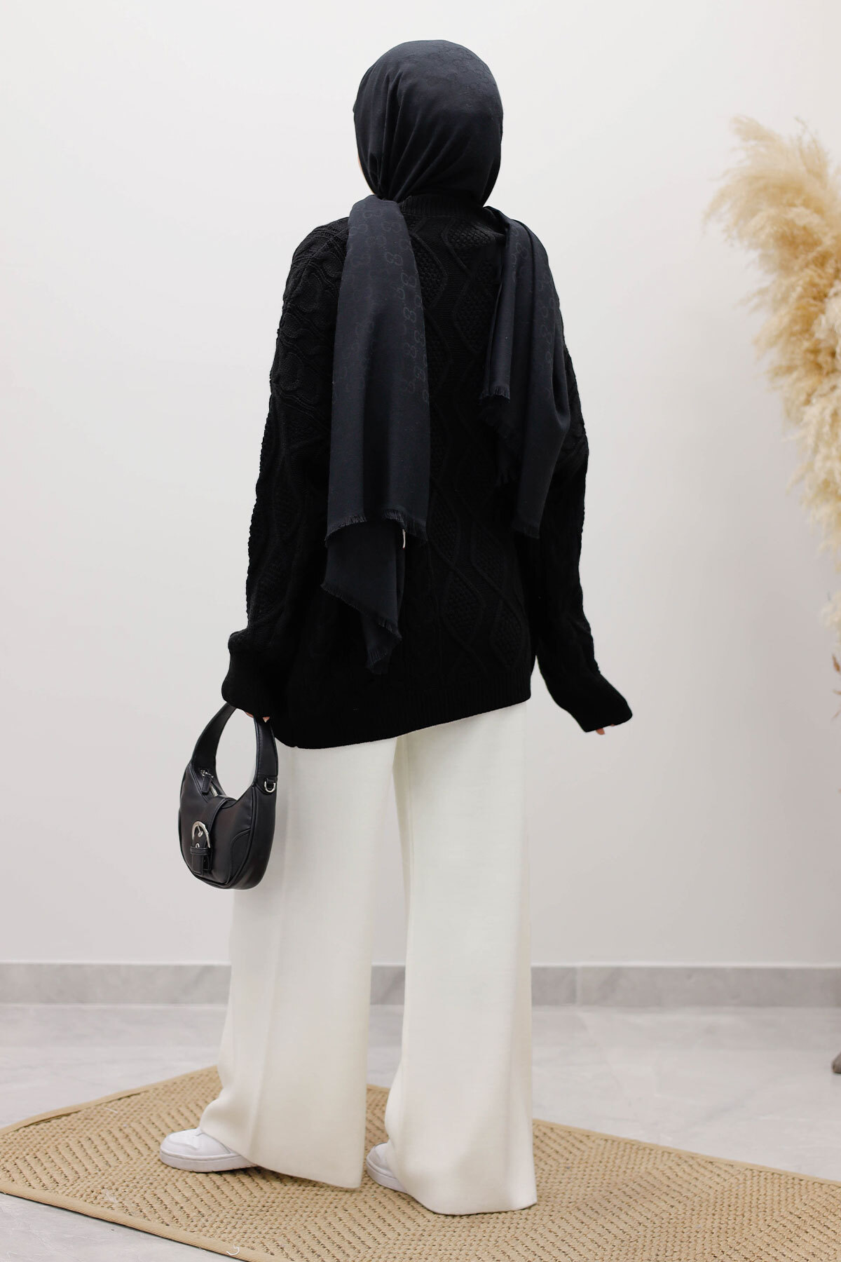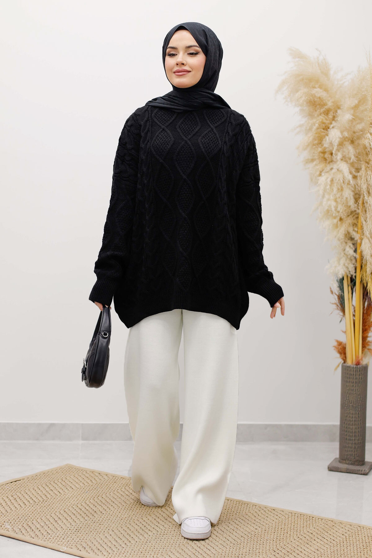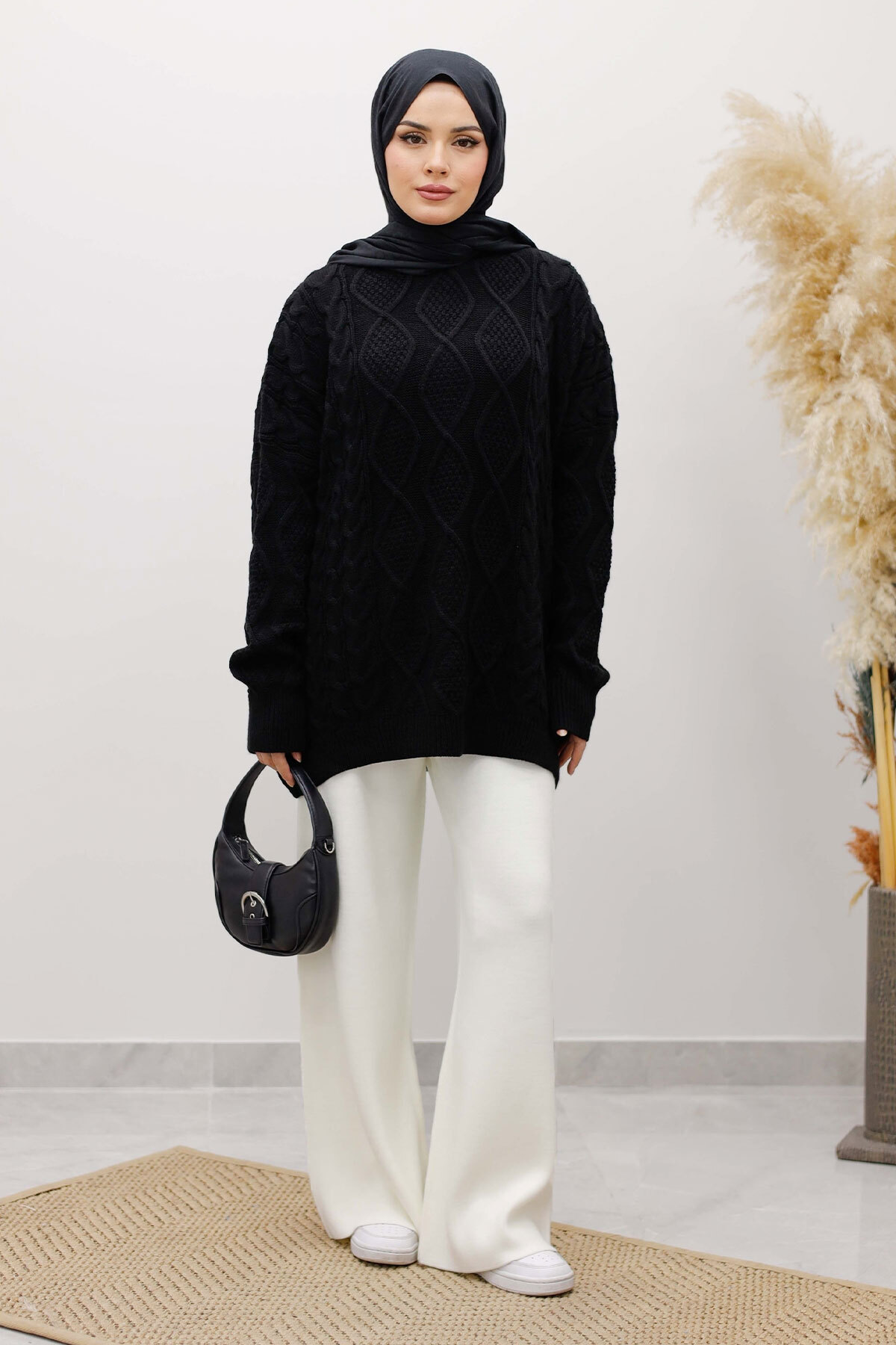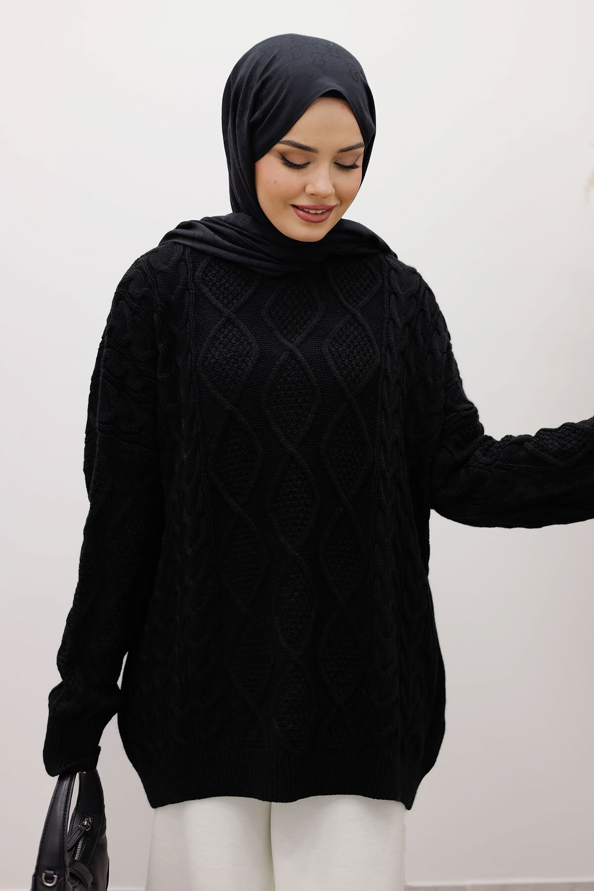 Baklava Desenli Triko Kazak TSD260115 Siyah
