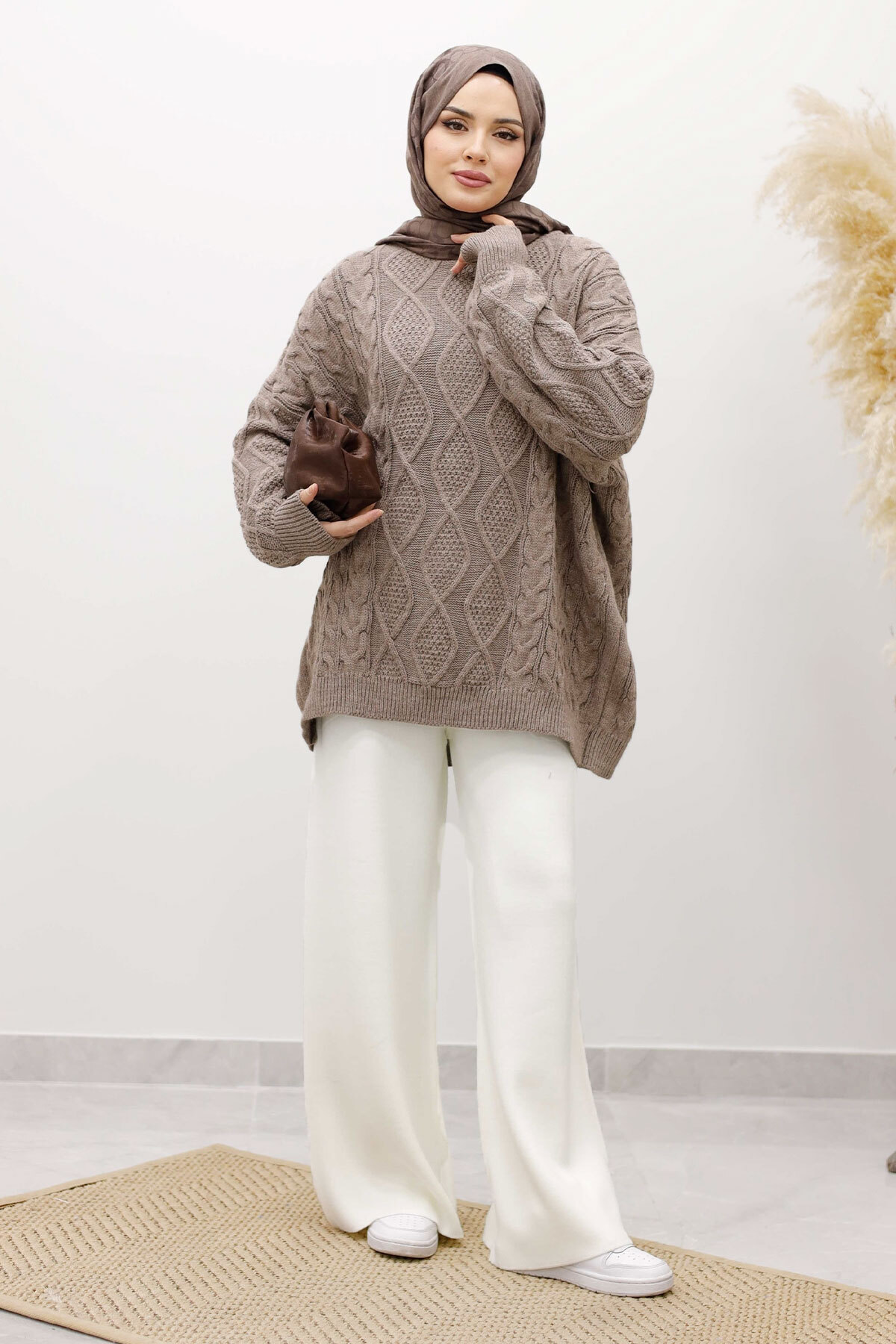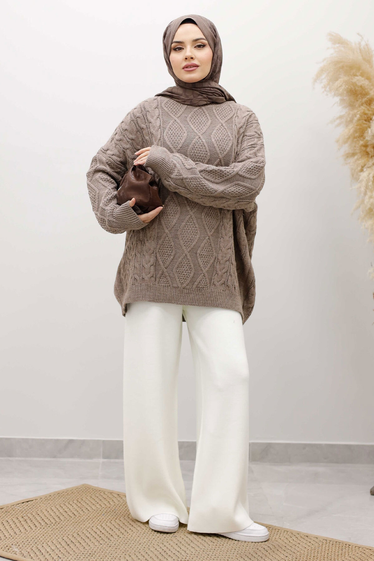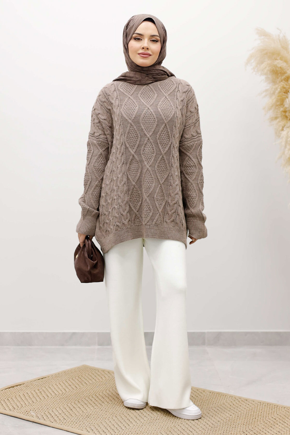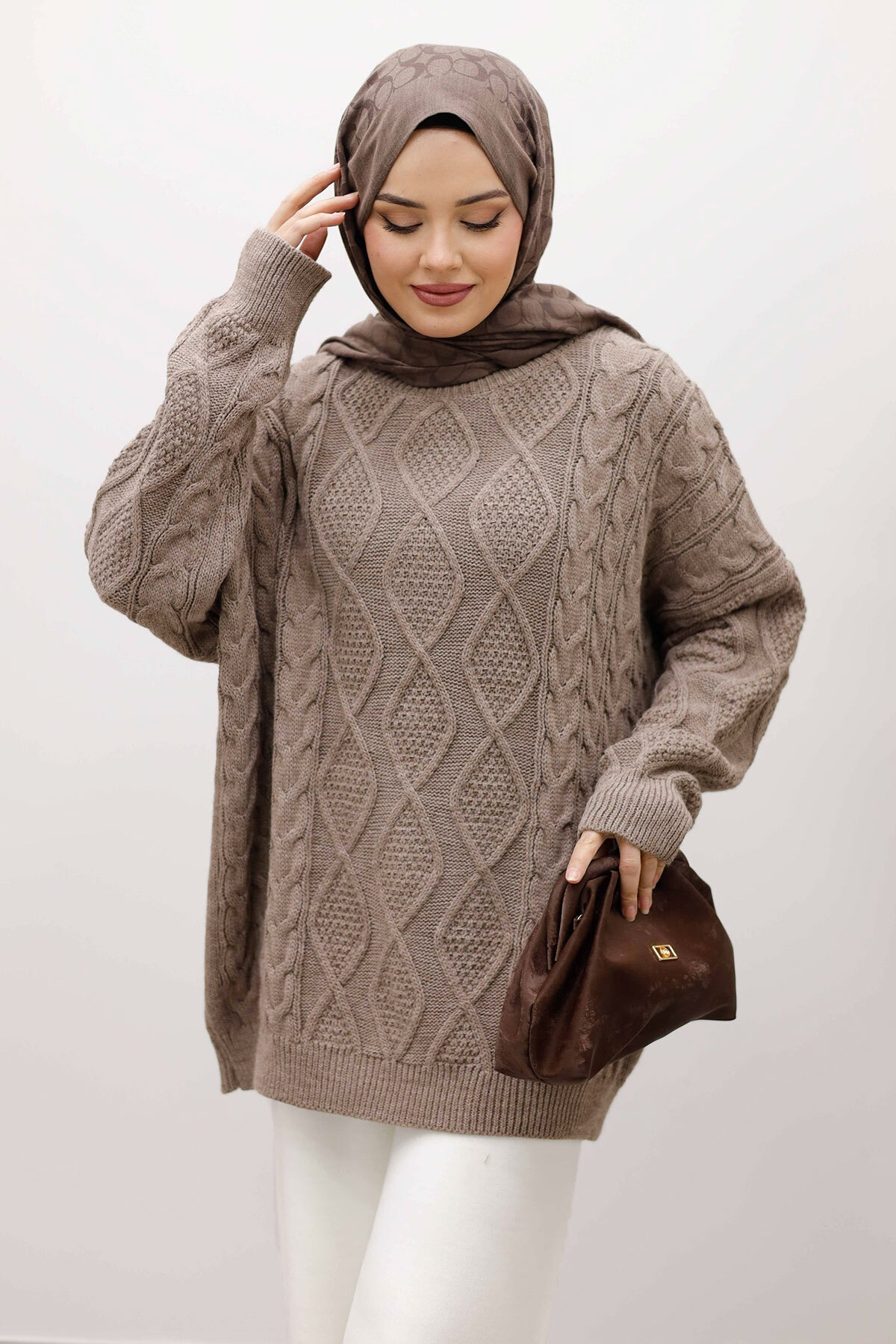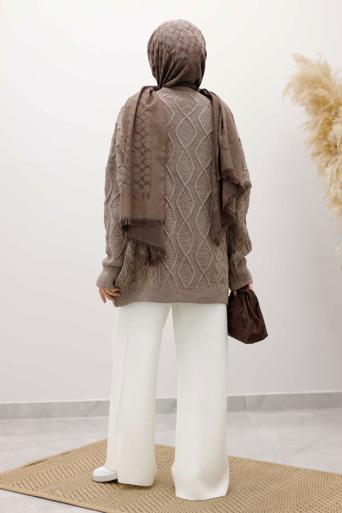 Baklava Desenli Triko Kazak TSD260115 Vizon