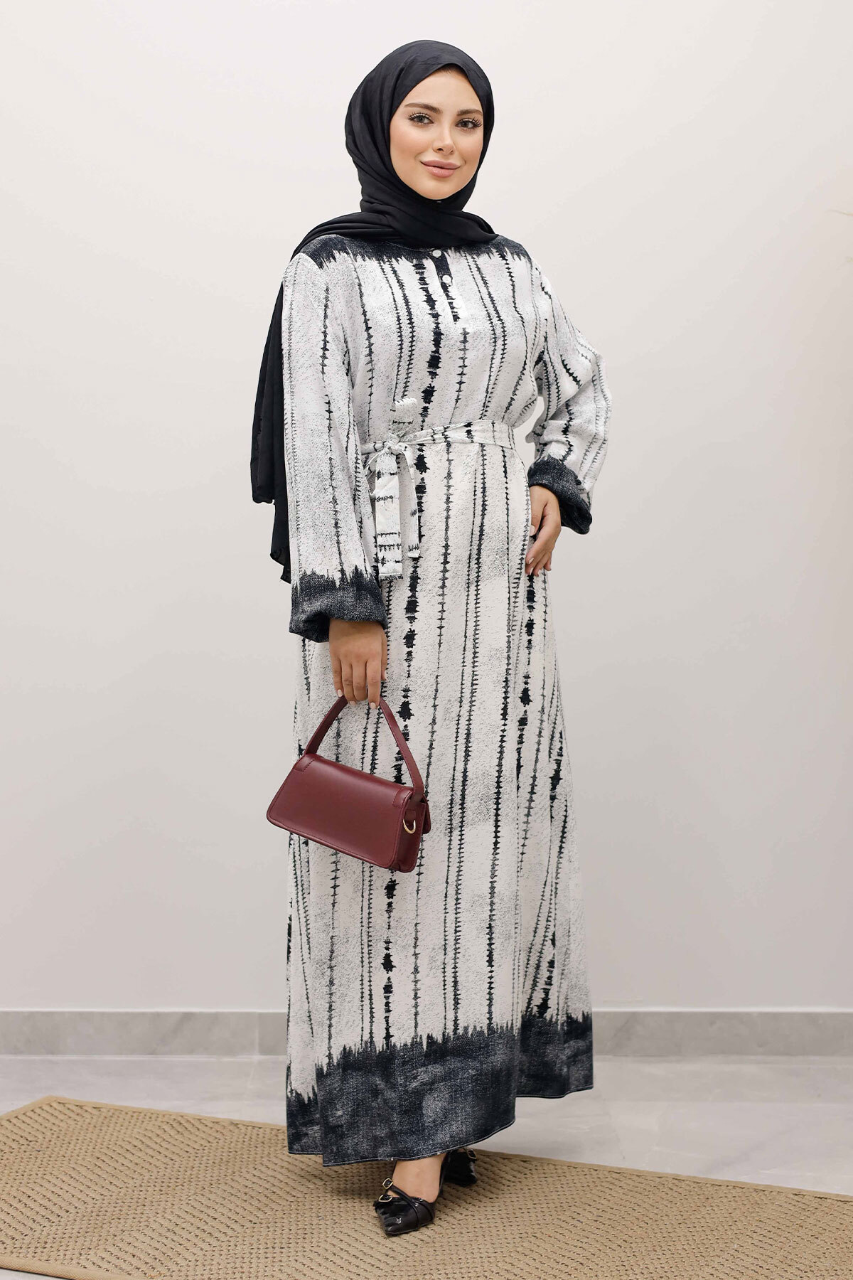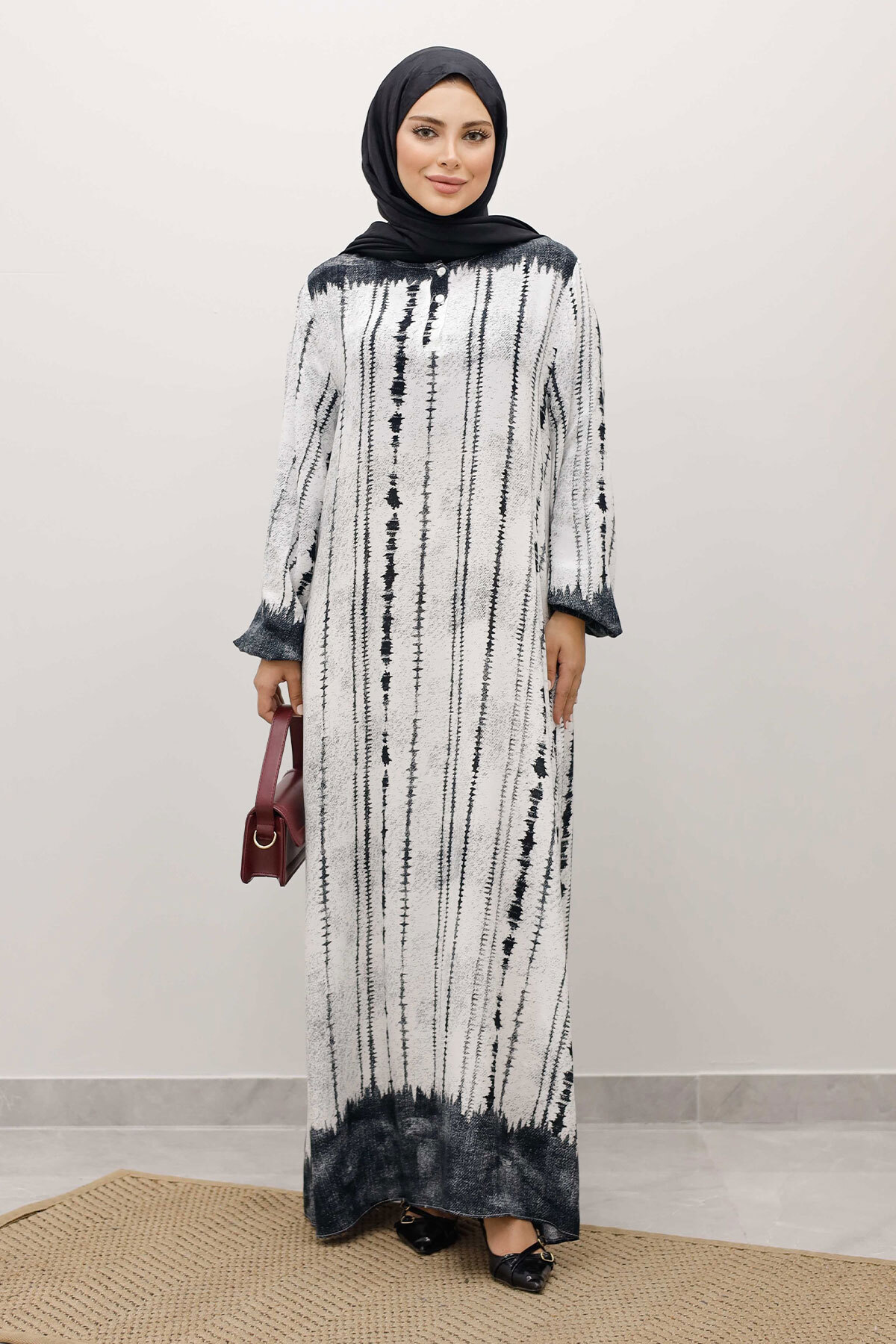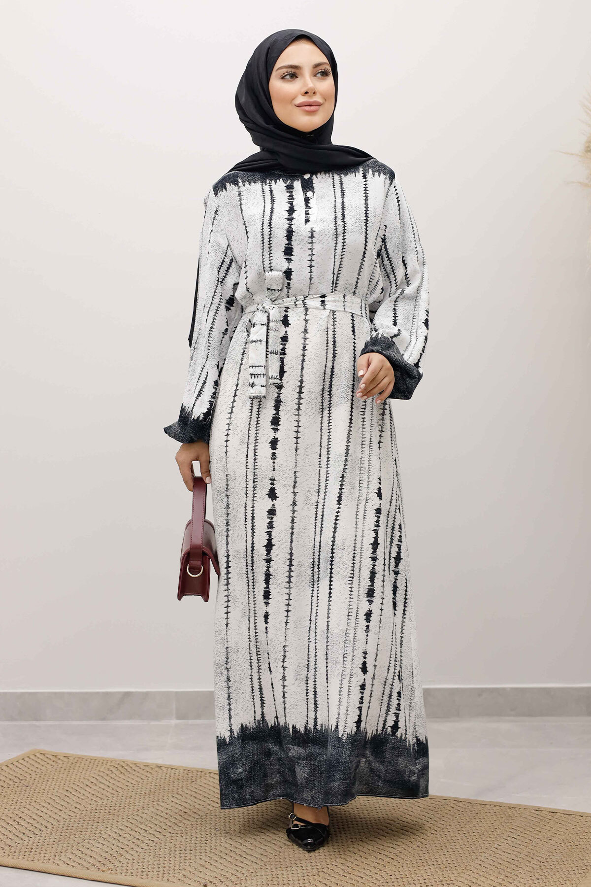 Batik Desenli Viskon Elbise TSD250229 Siyah Özellikleri