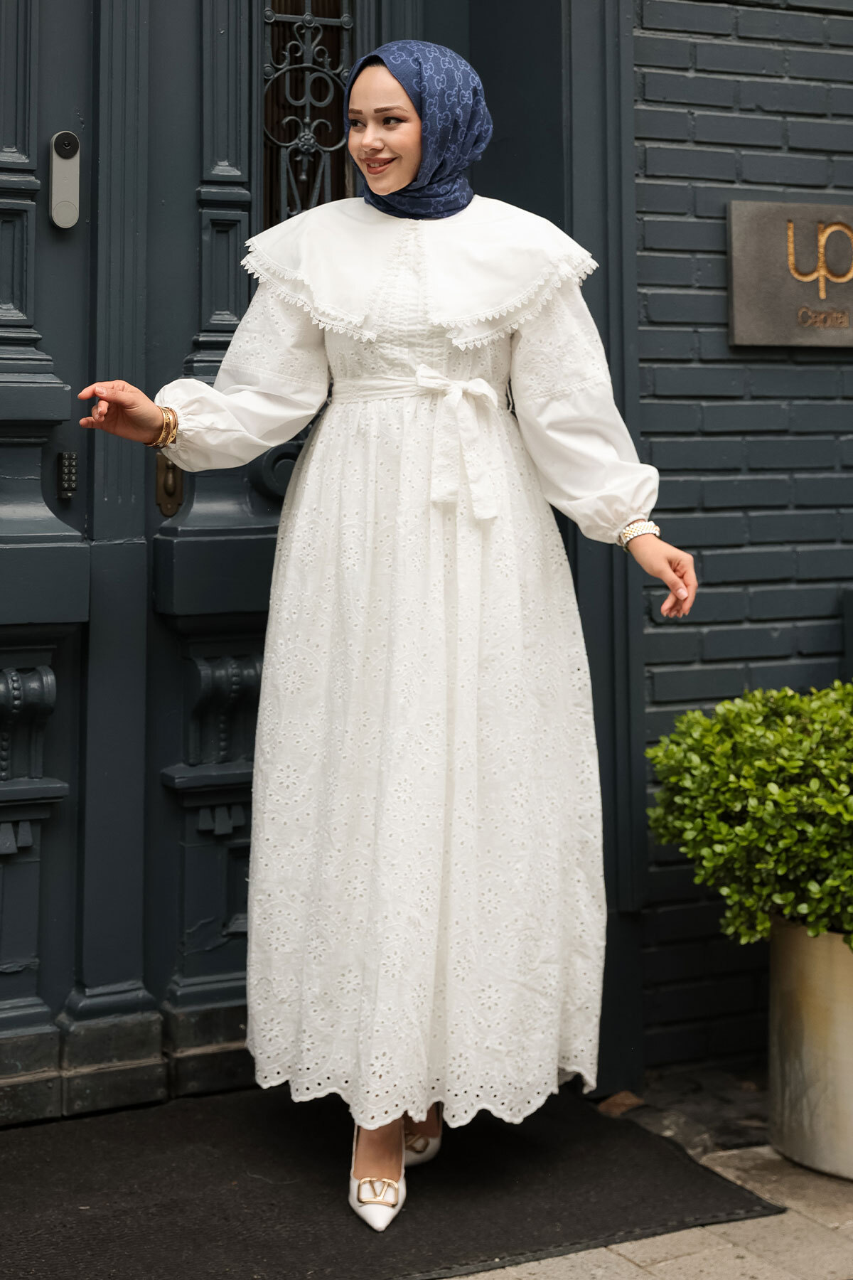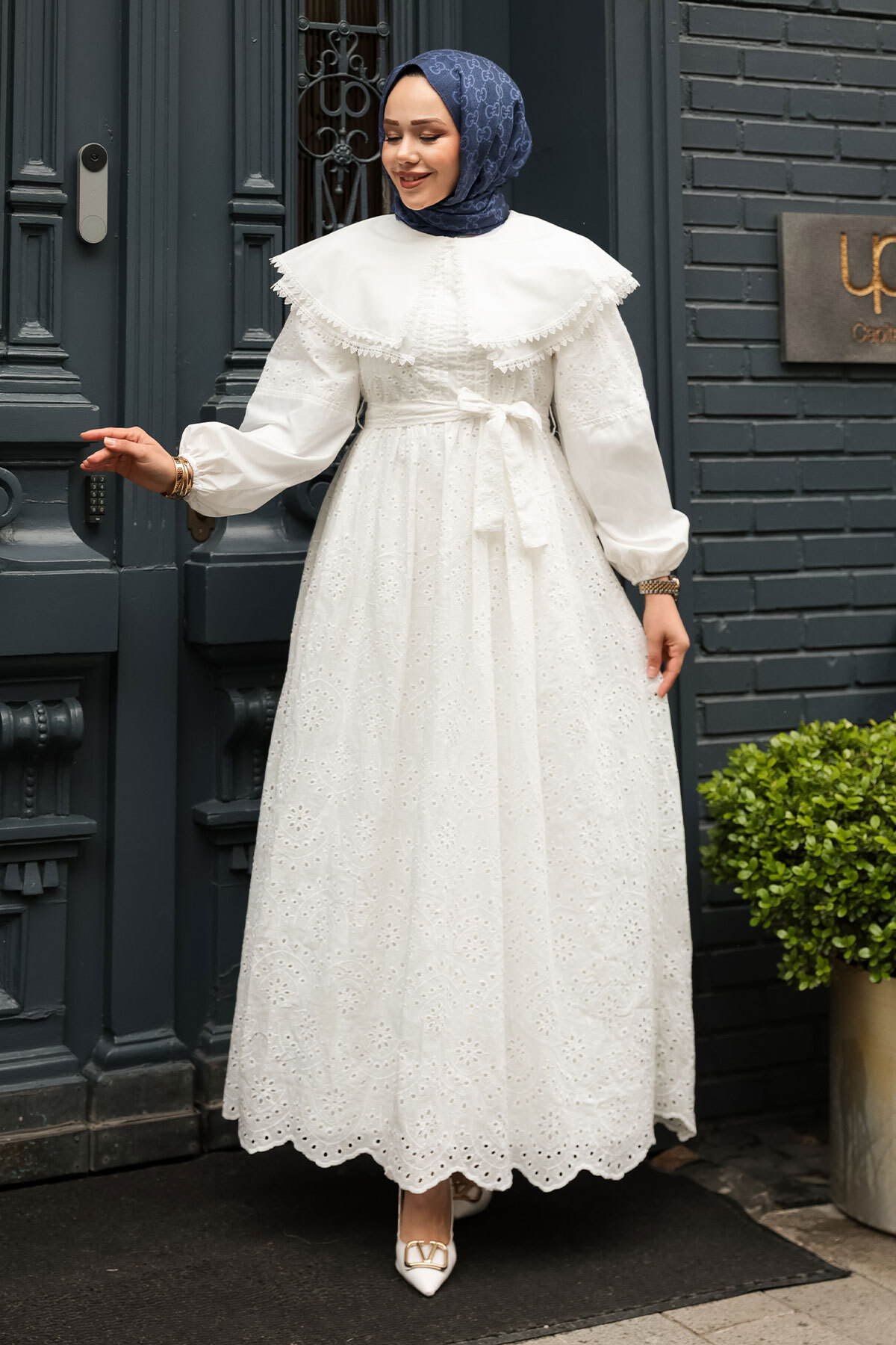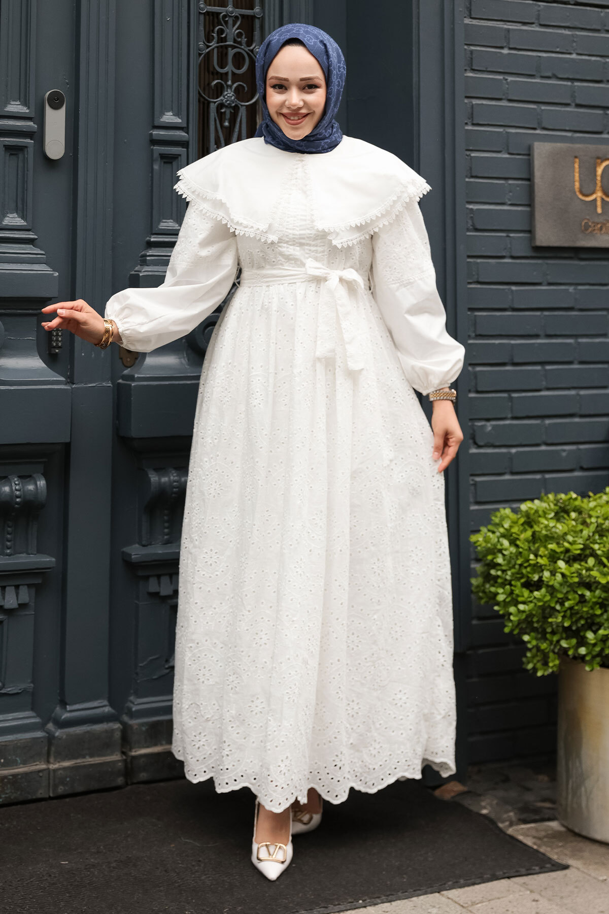 Ürün Özelliği : Yeni sezon Bebe Yaka Beli Kuşaklı Elbise modelidir. Bilekleri lastiklidir. Arkadan fermuar ile açılmaktadır. Astarlıdır. Cepsizdir. Belinde seyyar kuşak mevcuttur. Ürün renginde konsept çekimlerinden dolayı ton farklılığı olabilir.
