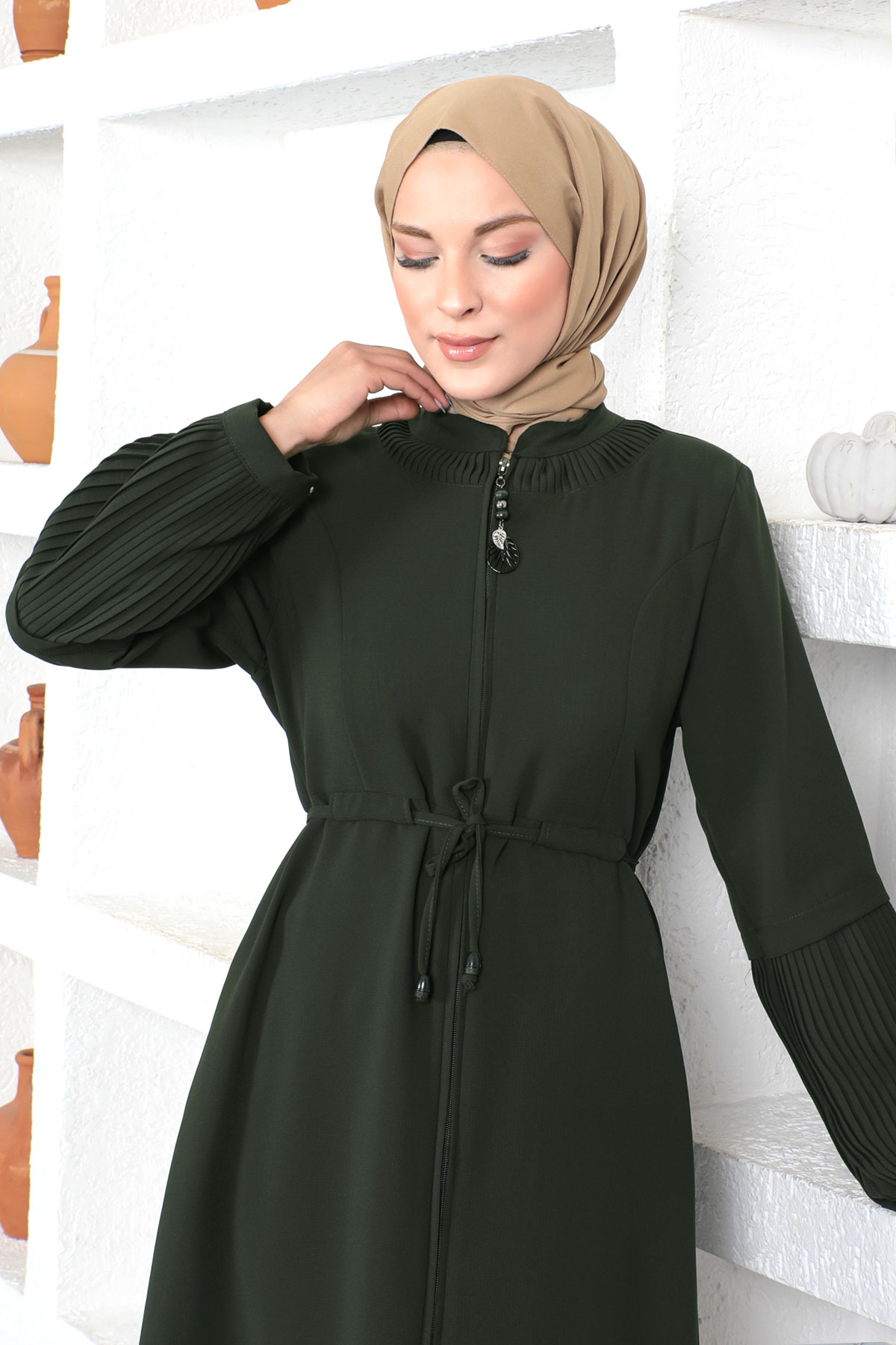 Ürün Özelliği : Yeni sezon Beli Bağlamalı Tesettür Ferace modelidir. Boydan fermuar ile açılmaktadır. Kolunda pile detayları vardır. Beli tünel geçişli ipli bağlama detaylıdır. Ceplidir, astarsızdır. Ürün renginde konsept çekimlerinden dolayı ton farklılığı olabilir.