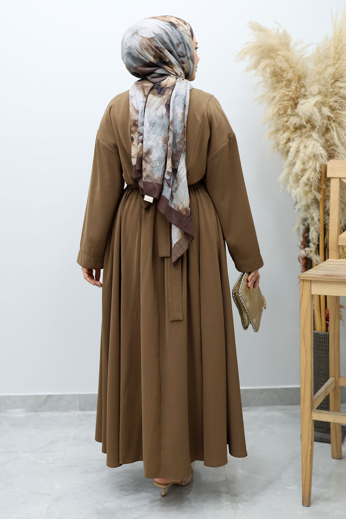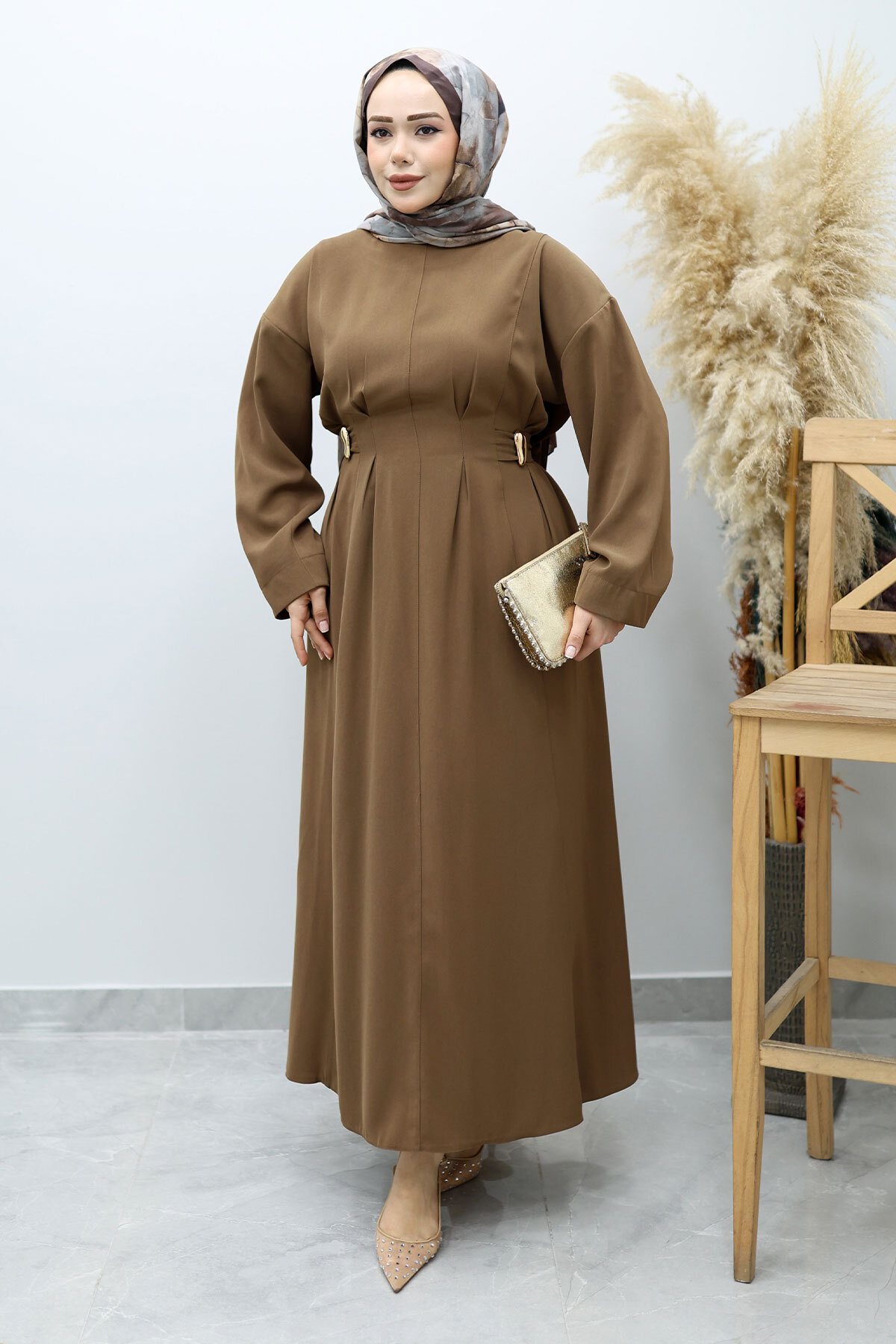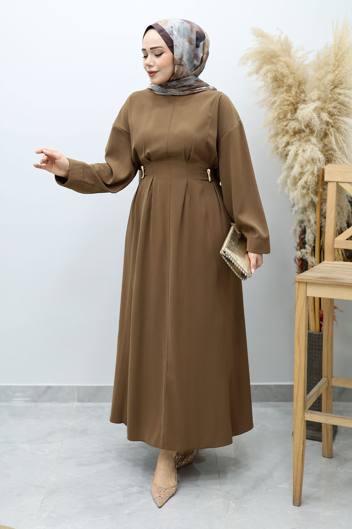 Beli Broş Detaylı Elbise TSD260149 Vizon Özellikleri