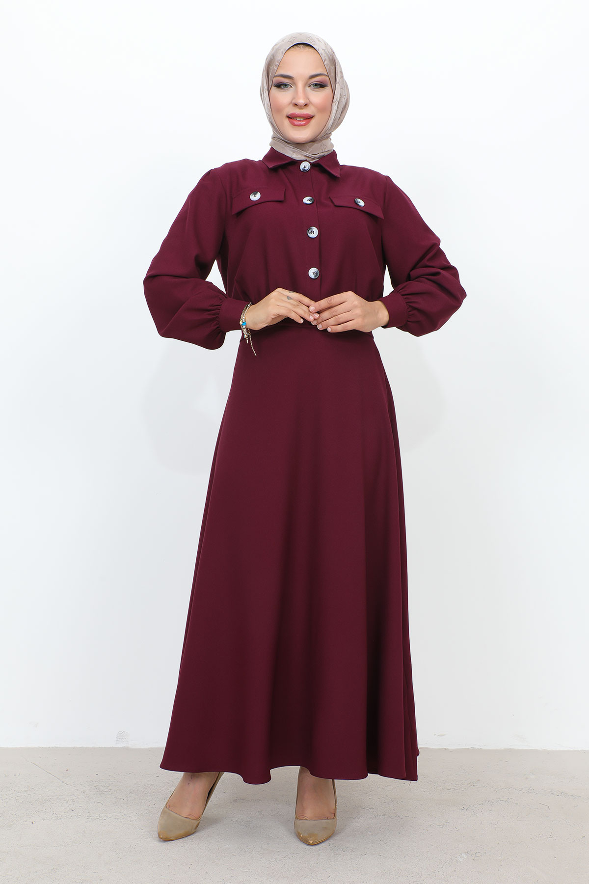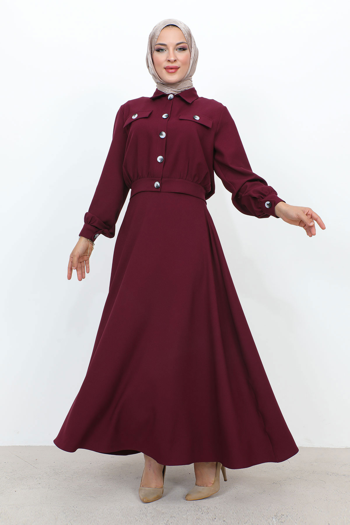 Beli Büzgülü Cepli Etekli Takım TSD231201 Mürdüm Özellikleri