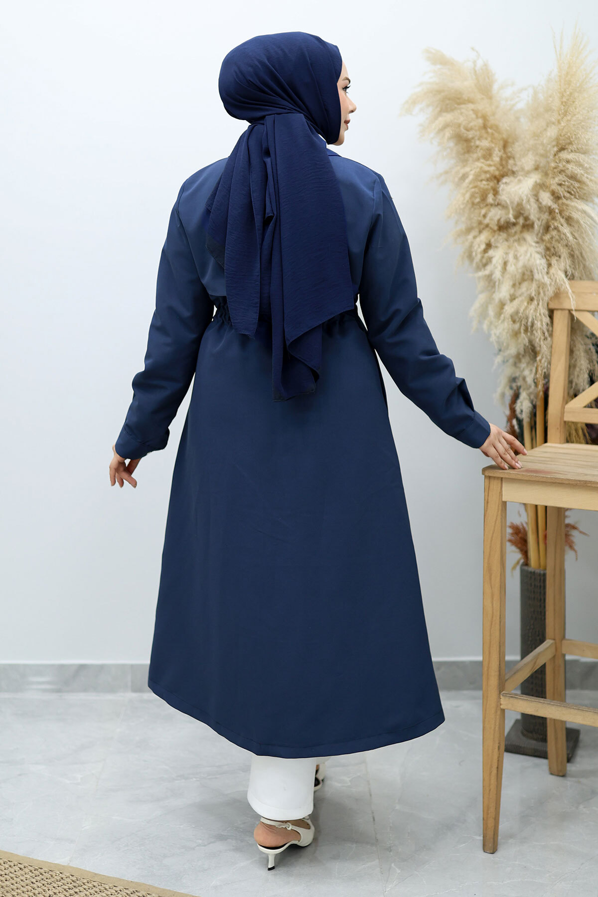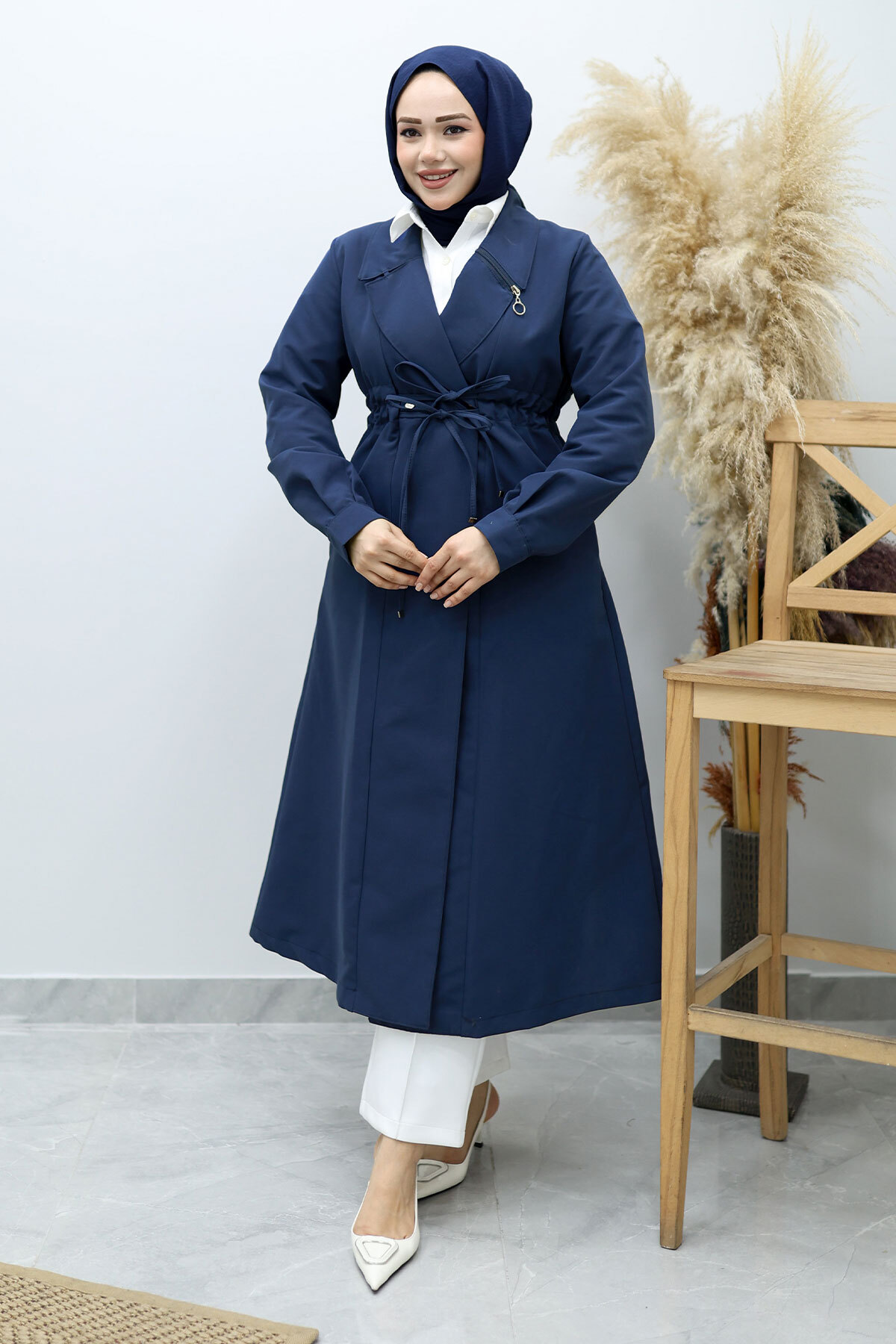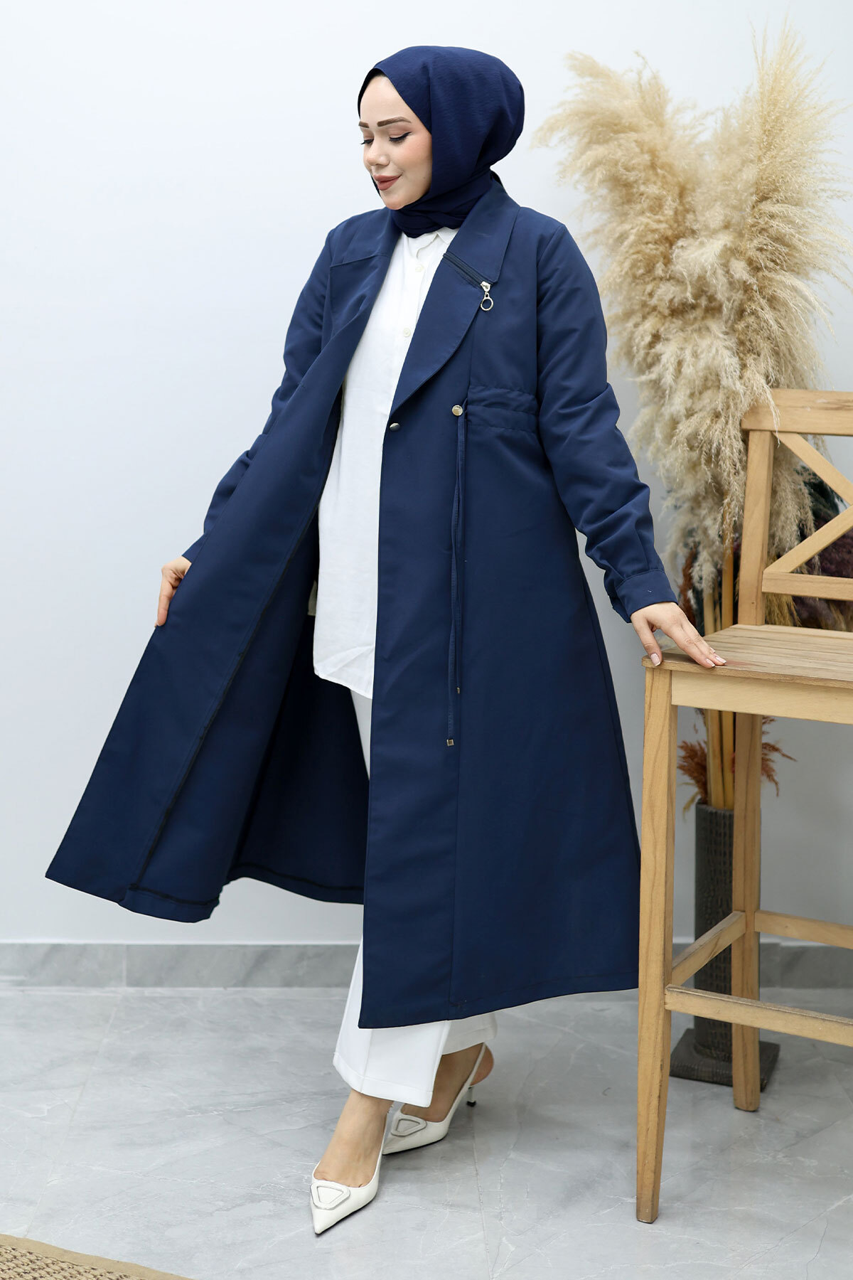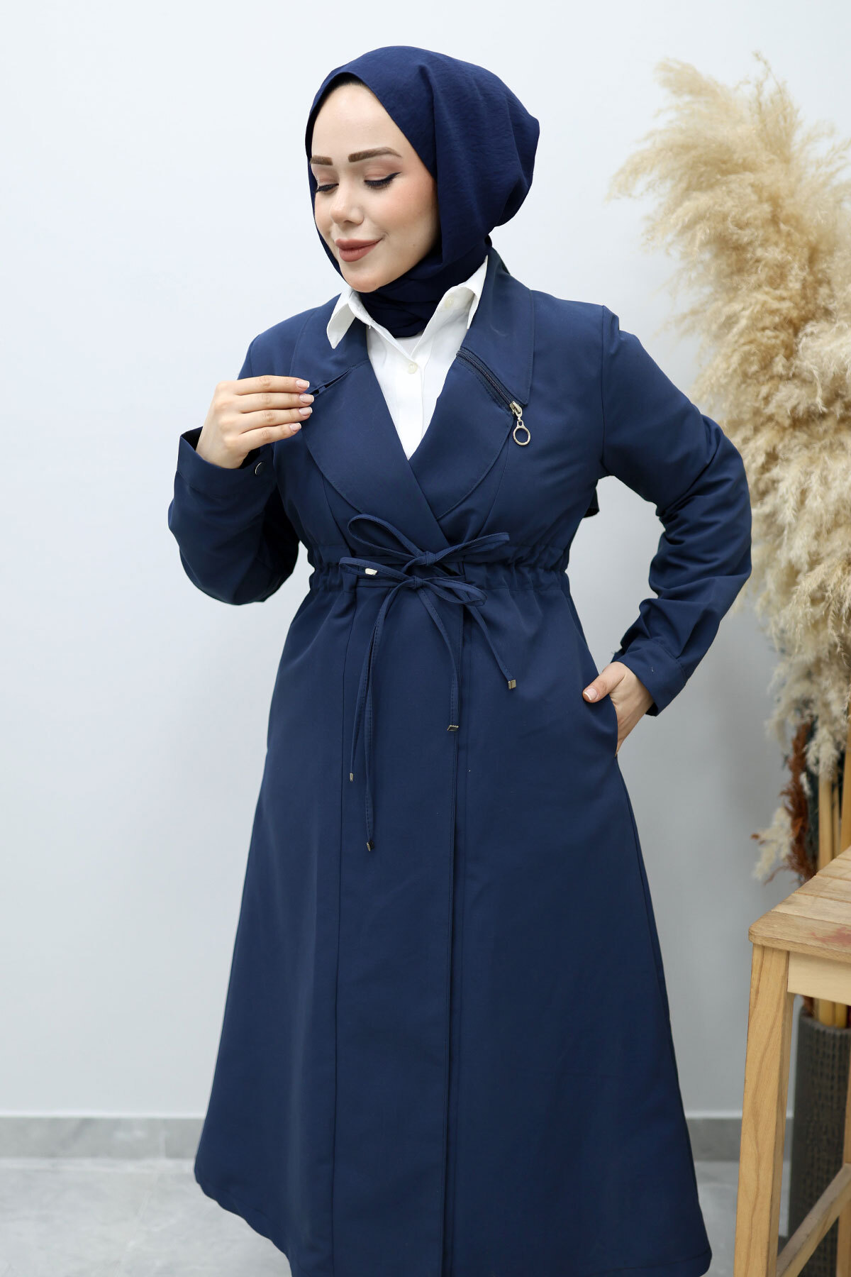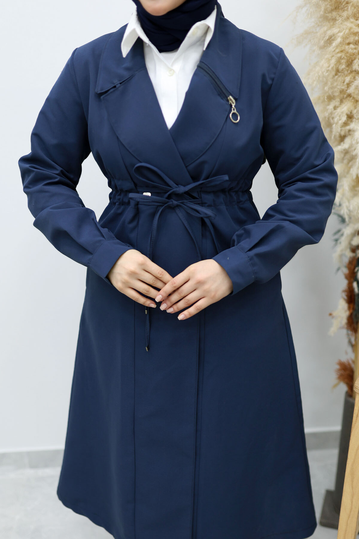 Beli Büzgülü Fermuar Detaylı Trençkot TSD260145 Lacivert Özellikleri