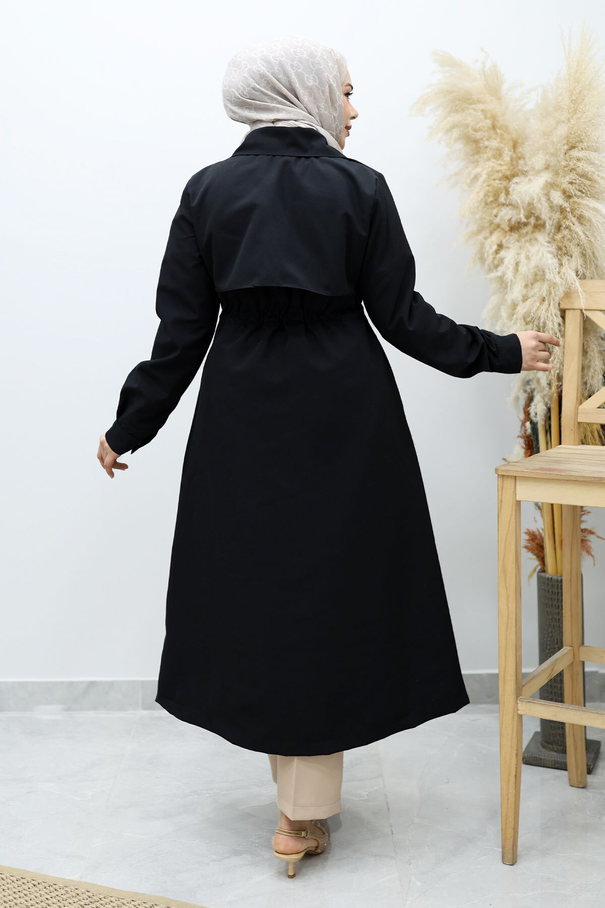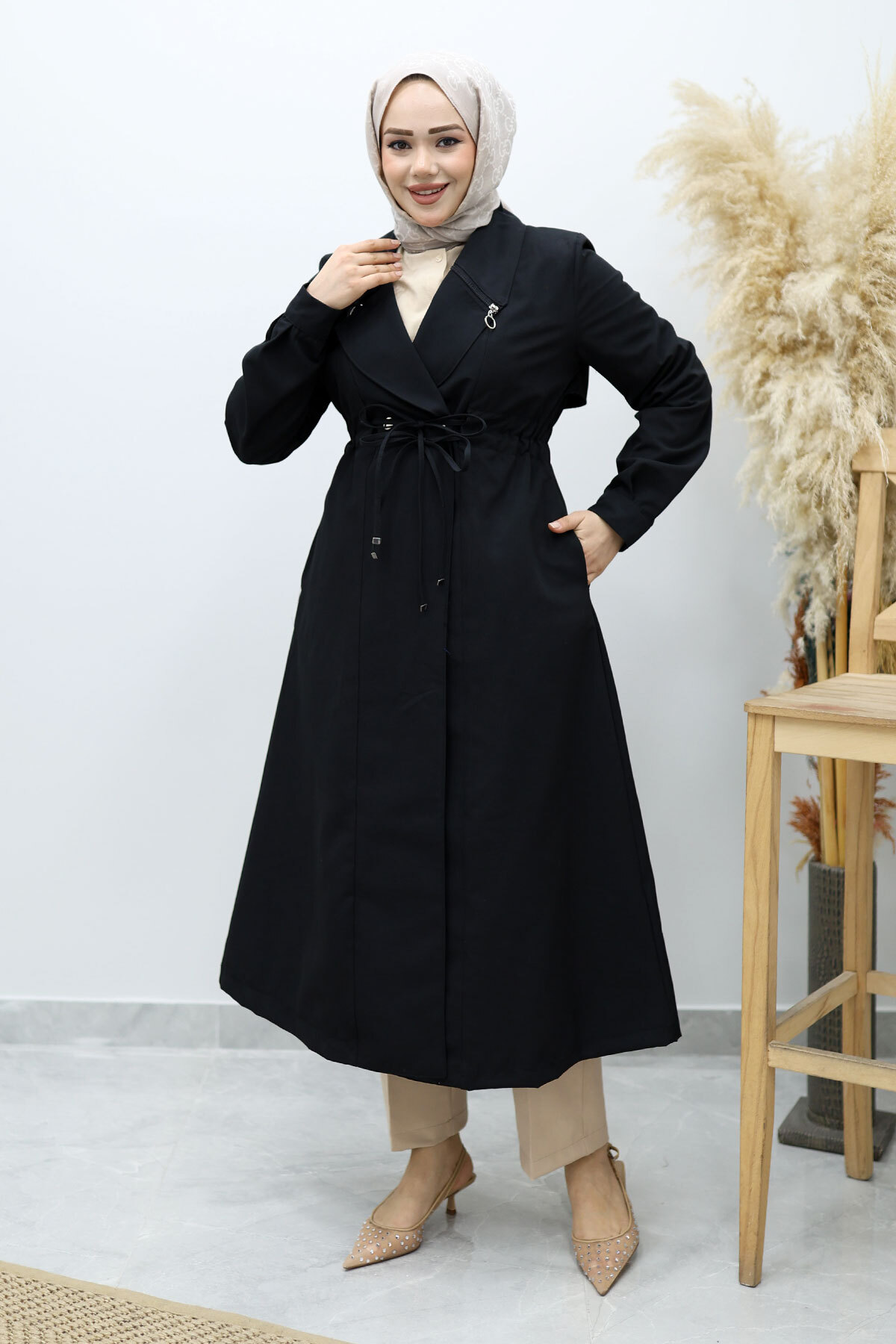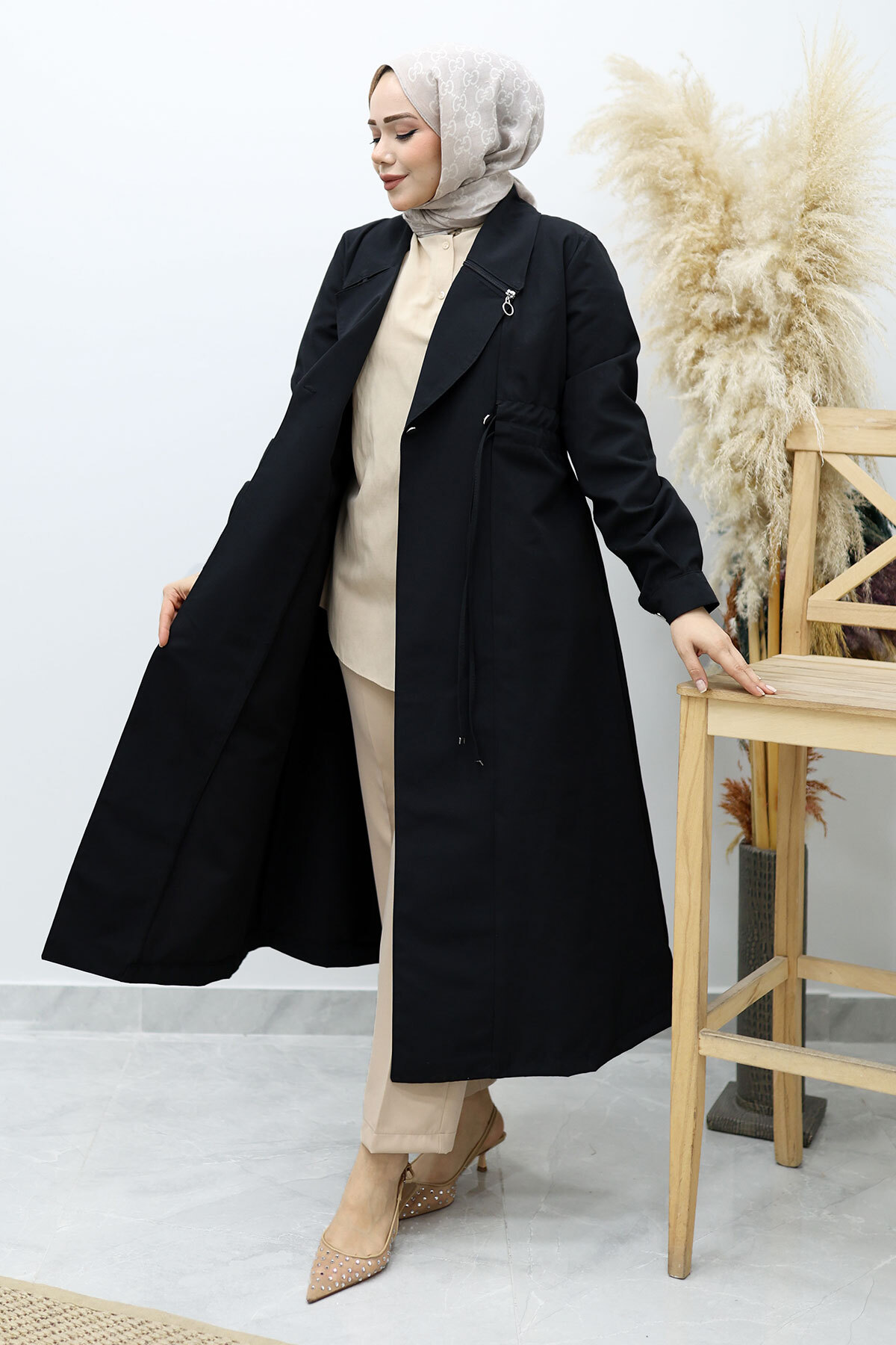 Beli Büzgülü Fermuar Detaylı Trençkot TSD260145 Siyah Özellikleri