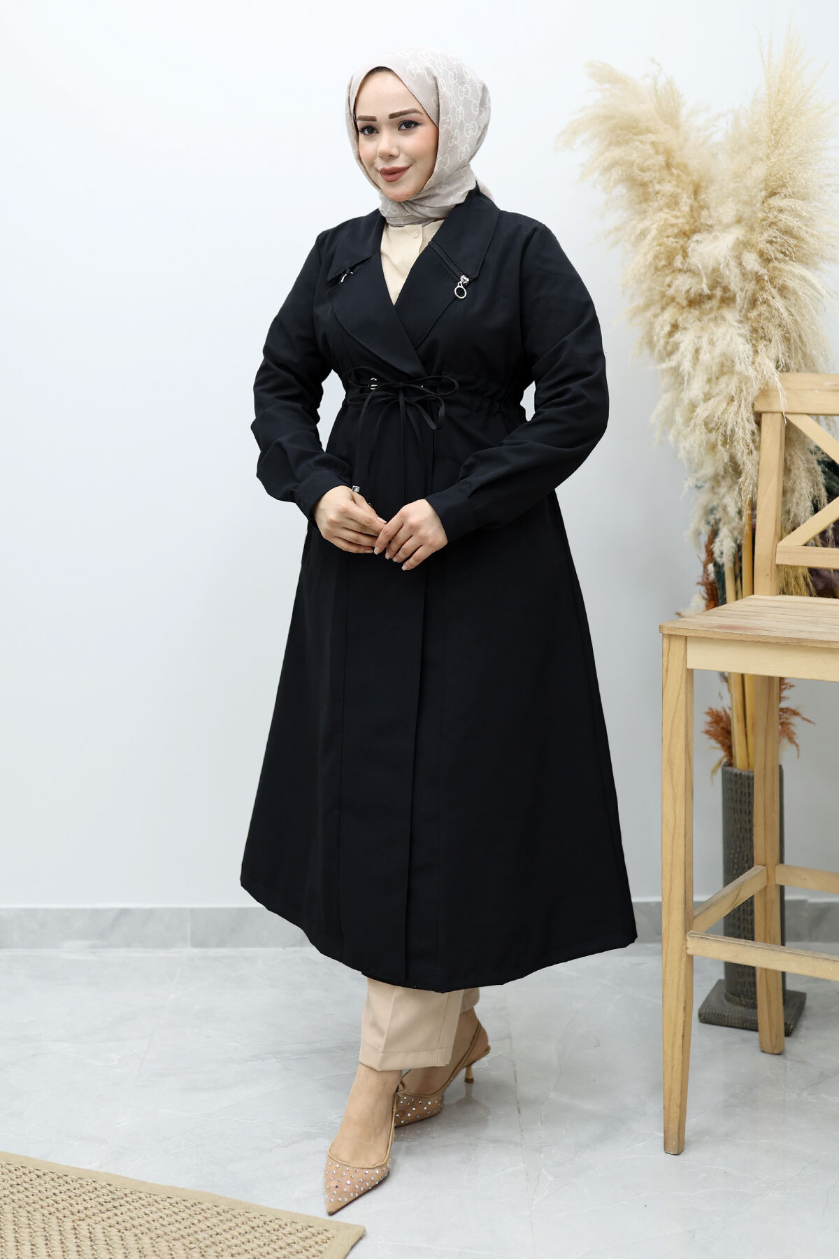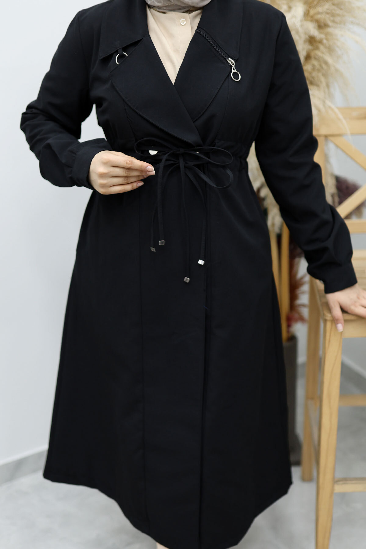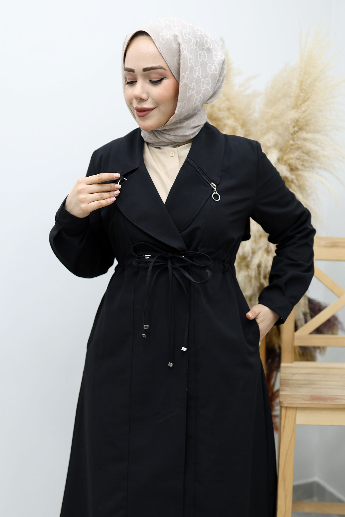 Beli Büzgülü Fermuar Detaylı Trençkot TSD260145 Siyah Özellikleri