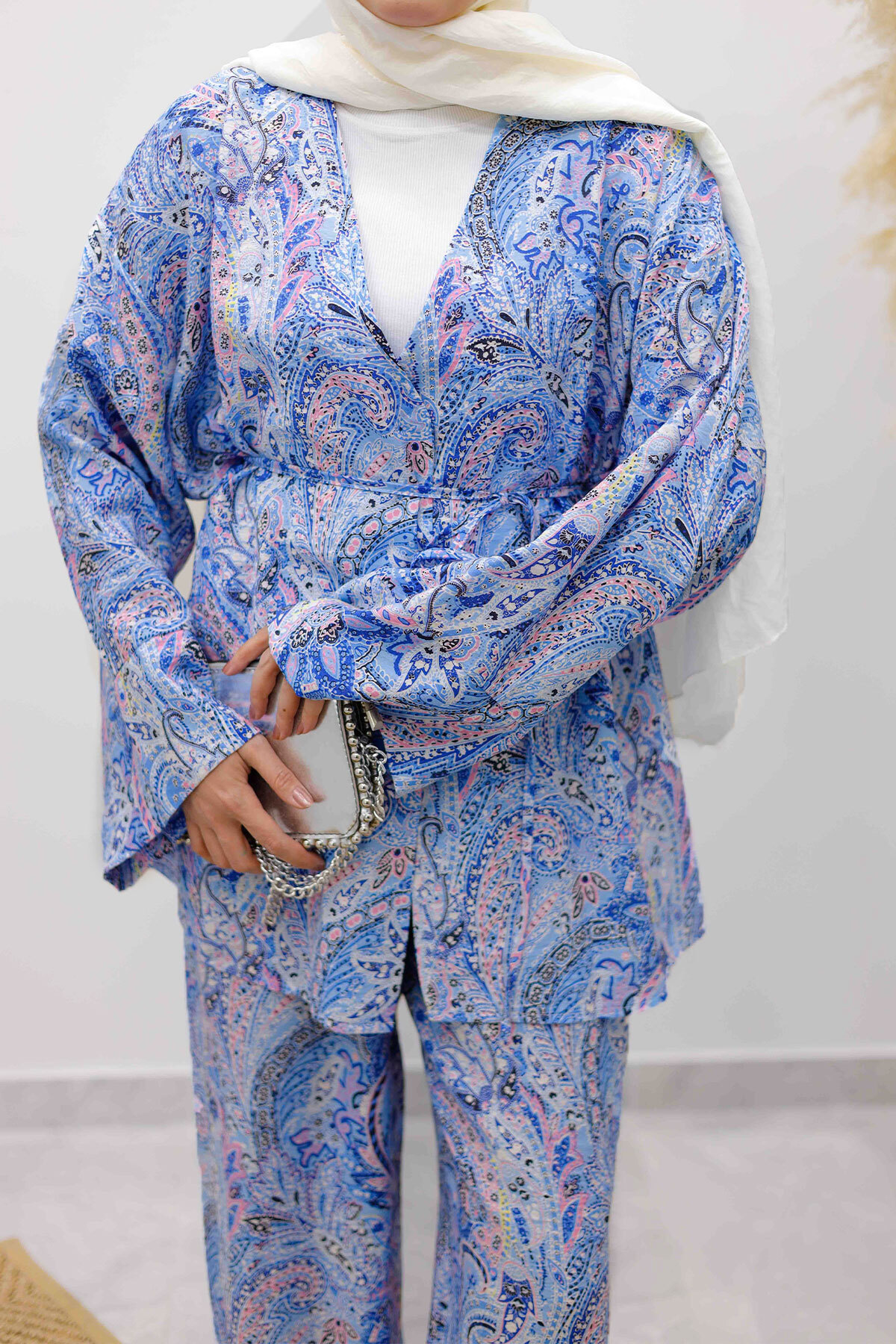 Ürün Özelliği : Yeni sezonBeli İp Bağlamalı Kimono Takım modelidir.