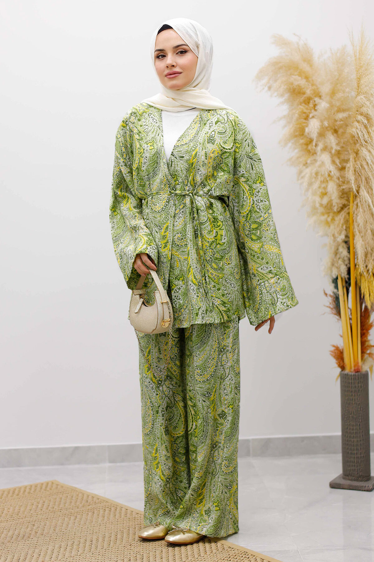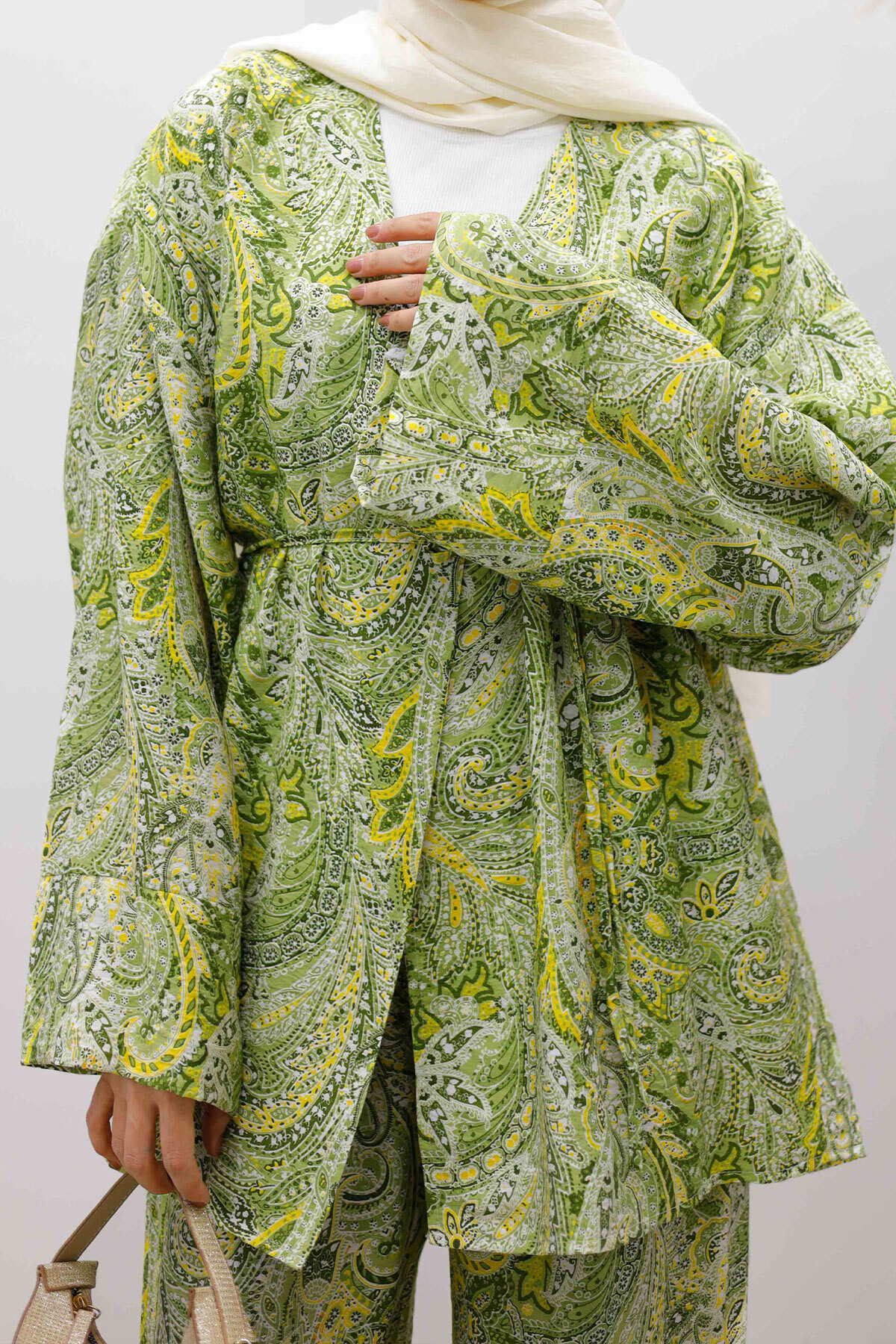 Beli İp Bağlamalı Kimono Takım TSD250265 Yeşil Özellikleri