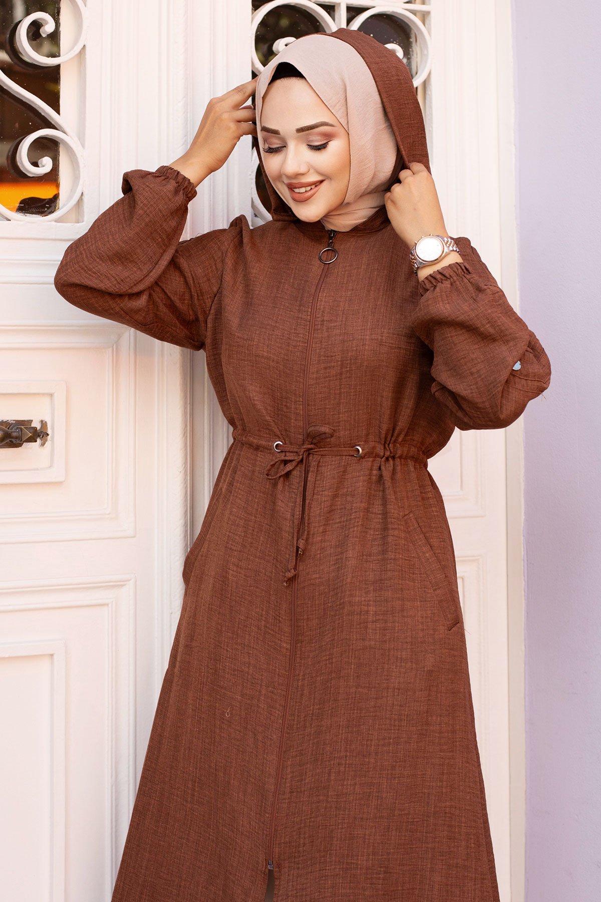Ürün Özelliği : Yeni sezon Beli İp Büzgülü Kapüşonlu Kap modelidir. Boydan fermuarlıdır. Kapüşonu mvecuttur. Hakim yakaya sahiptir. Beli ip büzgülüdür. Kol ucu lastiklidir. Ürün renginde konsept çekimlerinden dolayı ton farklılığı olabilir.