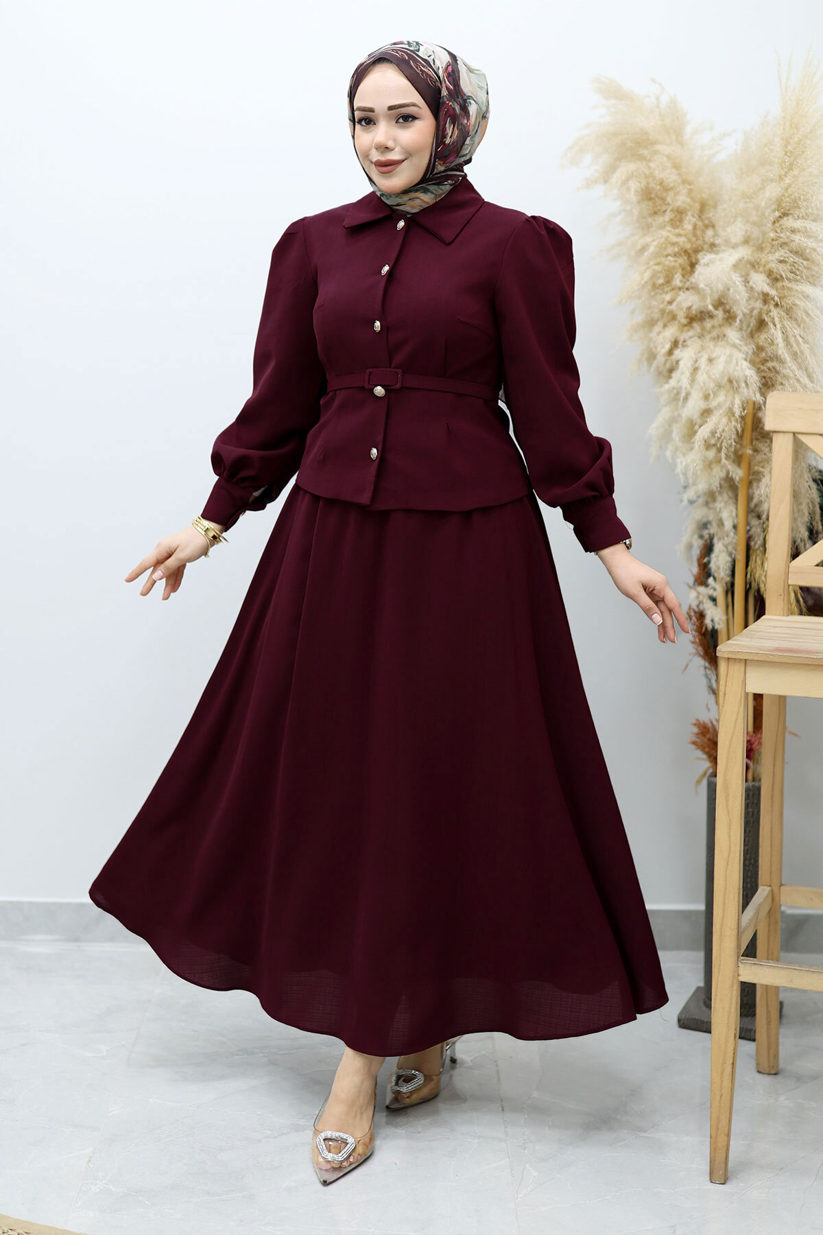 Ürün Özelliği : Yeni sezon Beli Kemerli Etekli Takım modelidir.