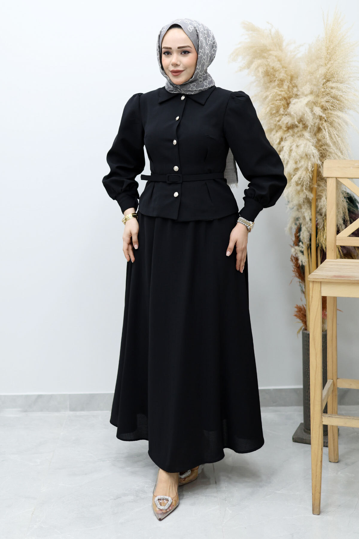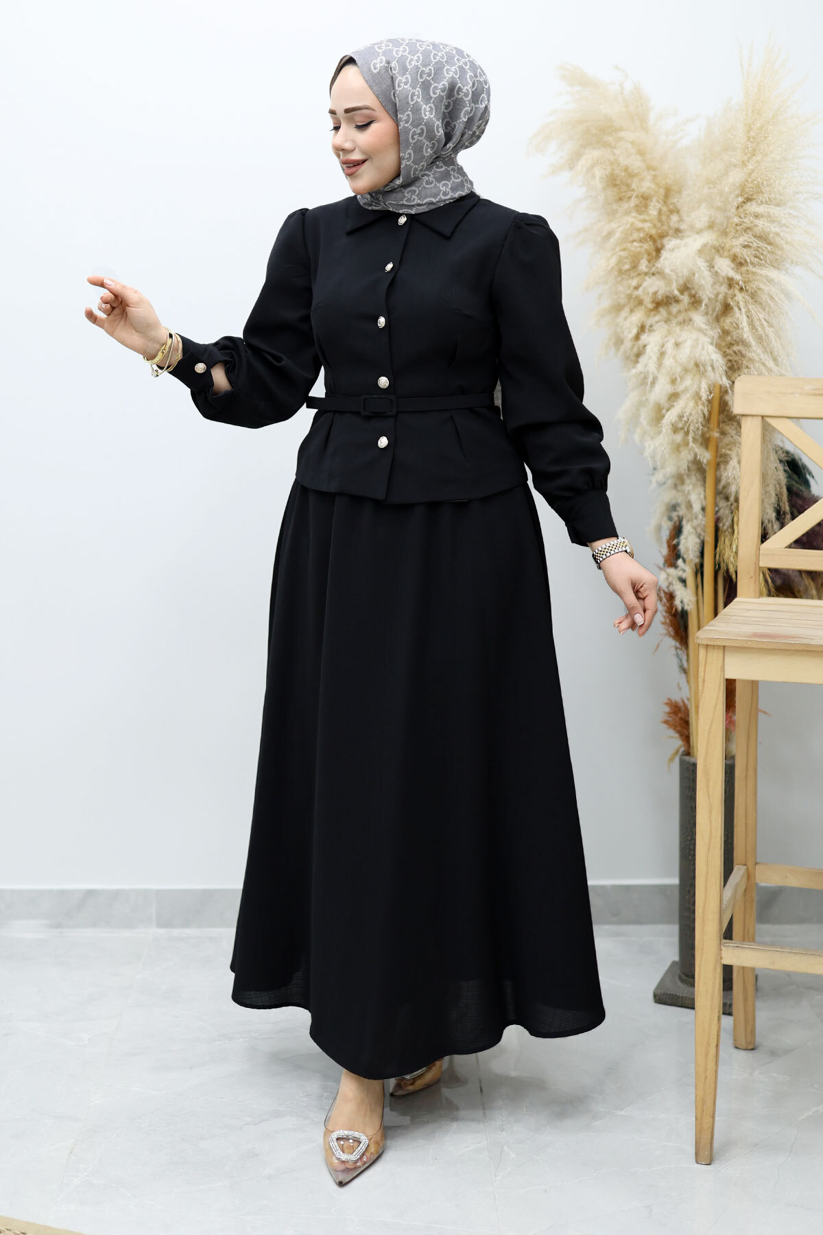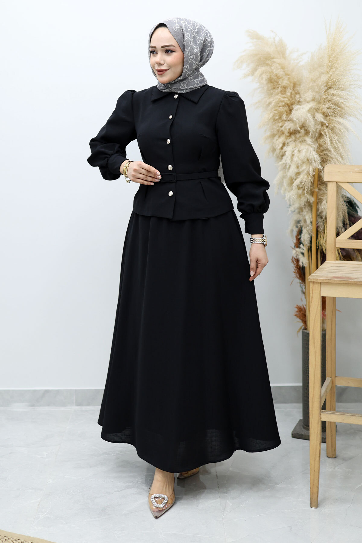 Beli Kemerli Etekli Takım TSD260150 Siyah