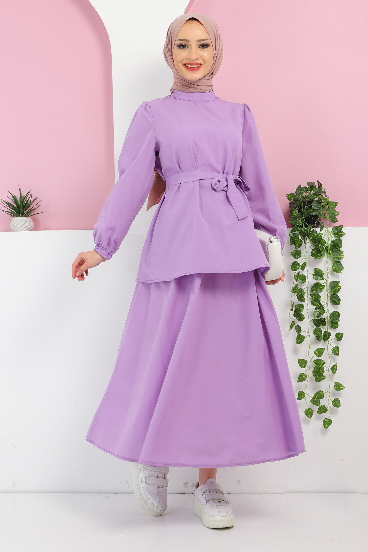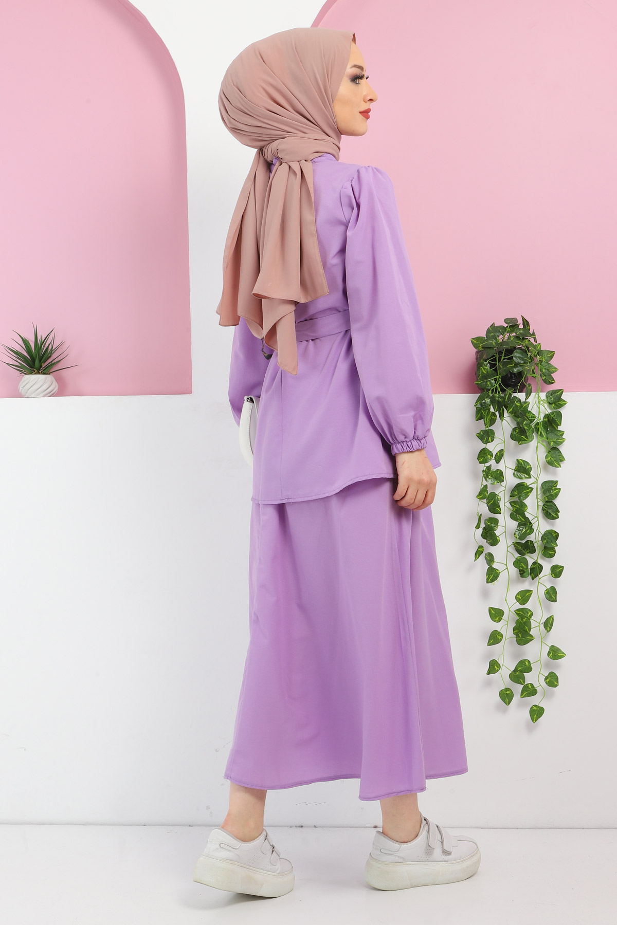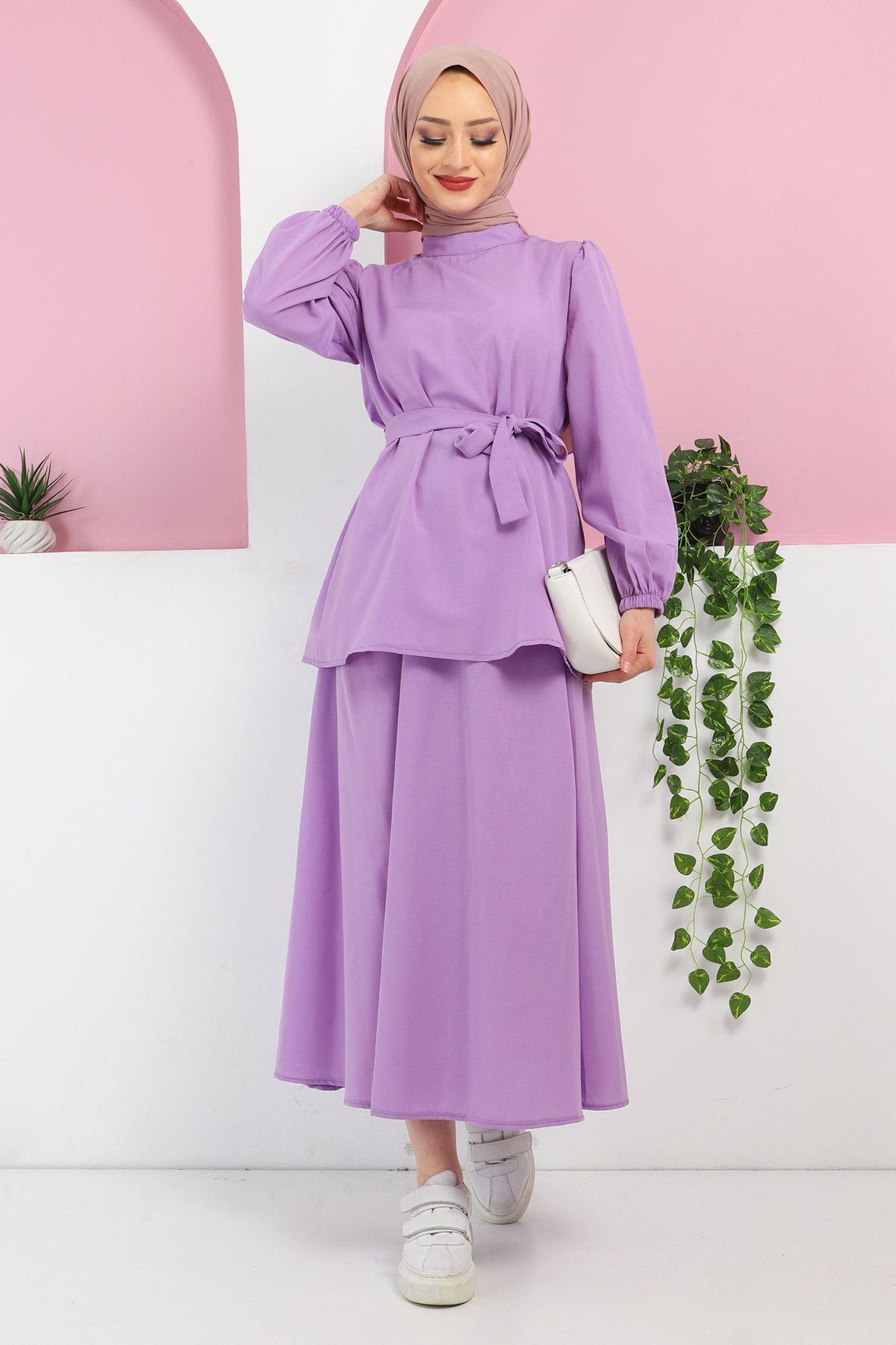 Beli Kuşaklı Etekli Takım TSD220410 Lila Özellikleri