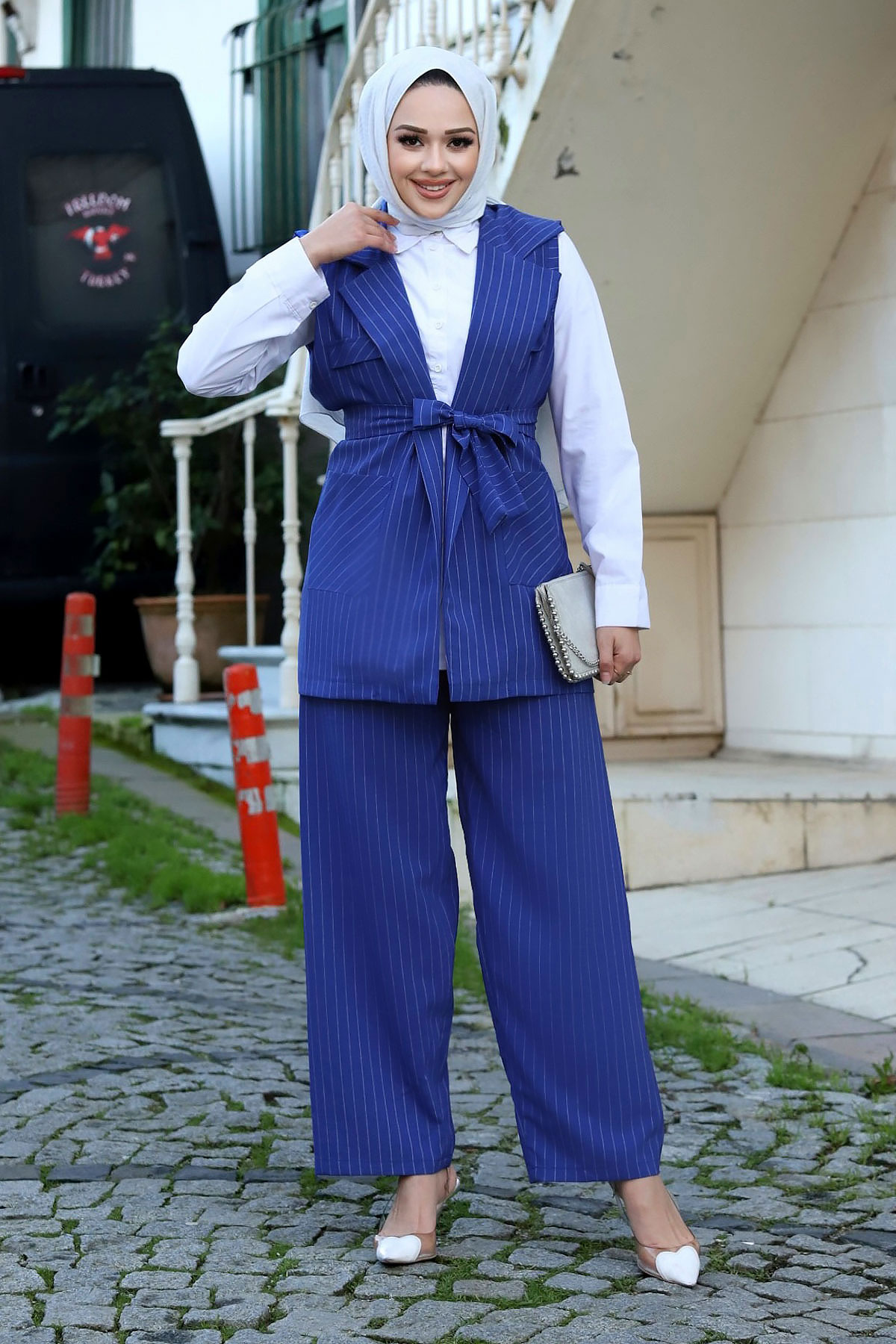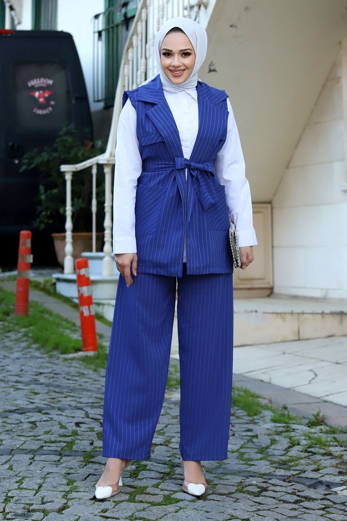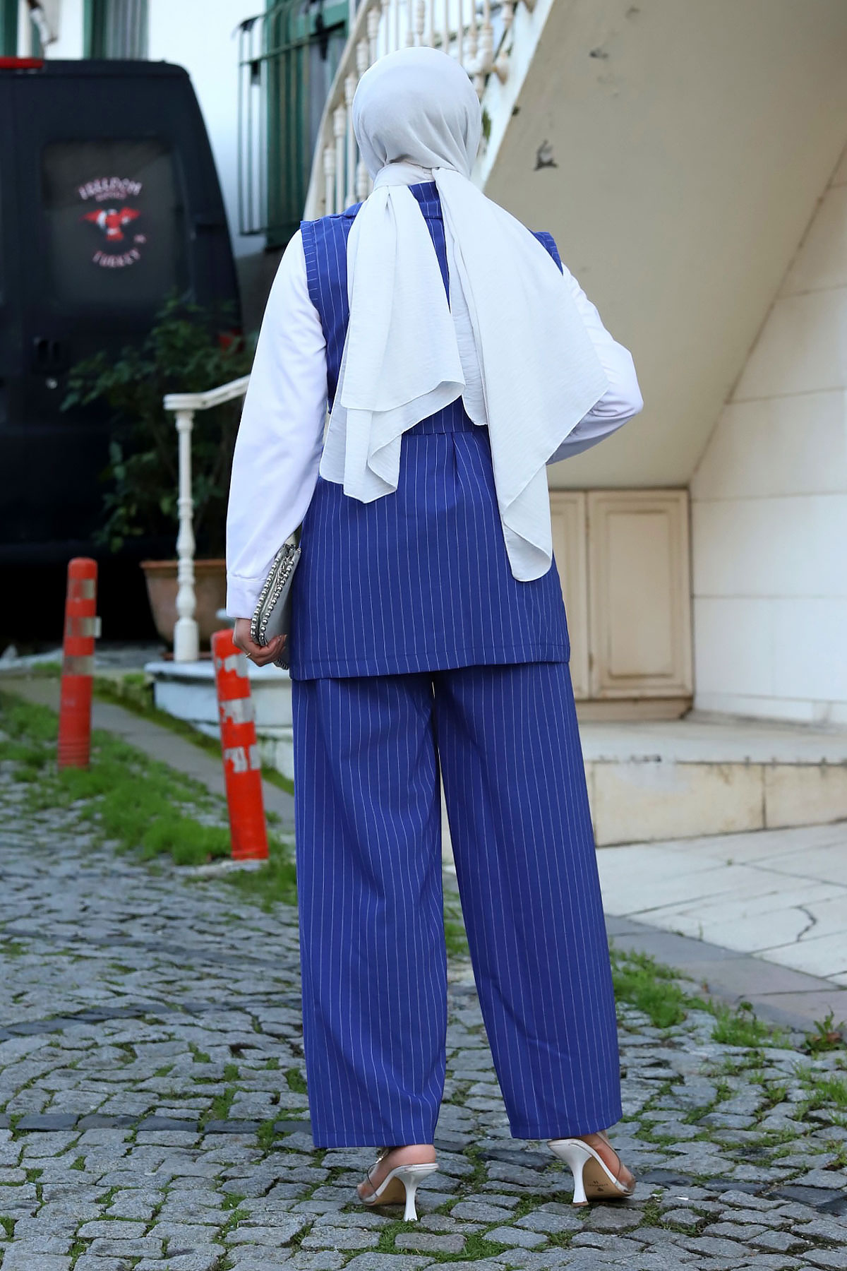 Beli Kuşaklı Yelekli Çizgili Takım TSD240102 Saks Mavisi Özellikleri