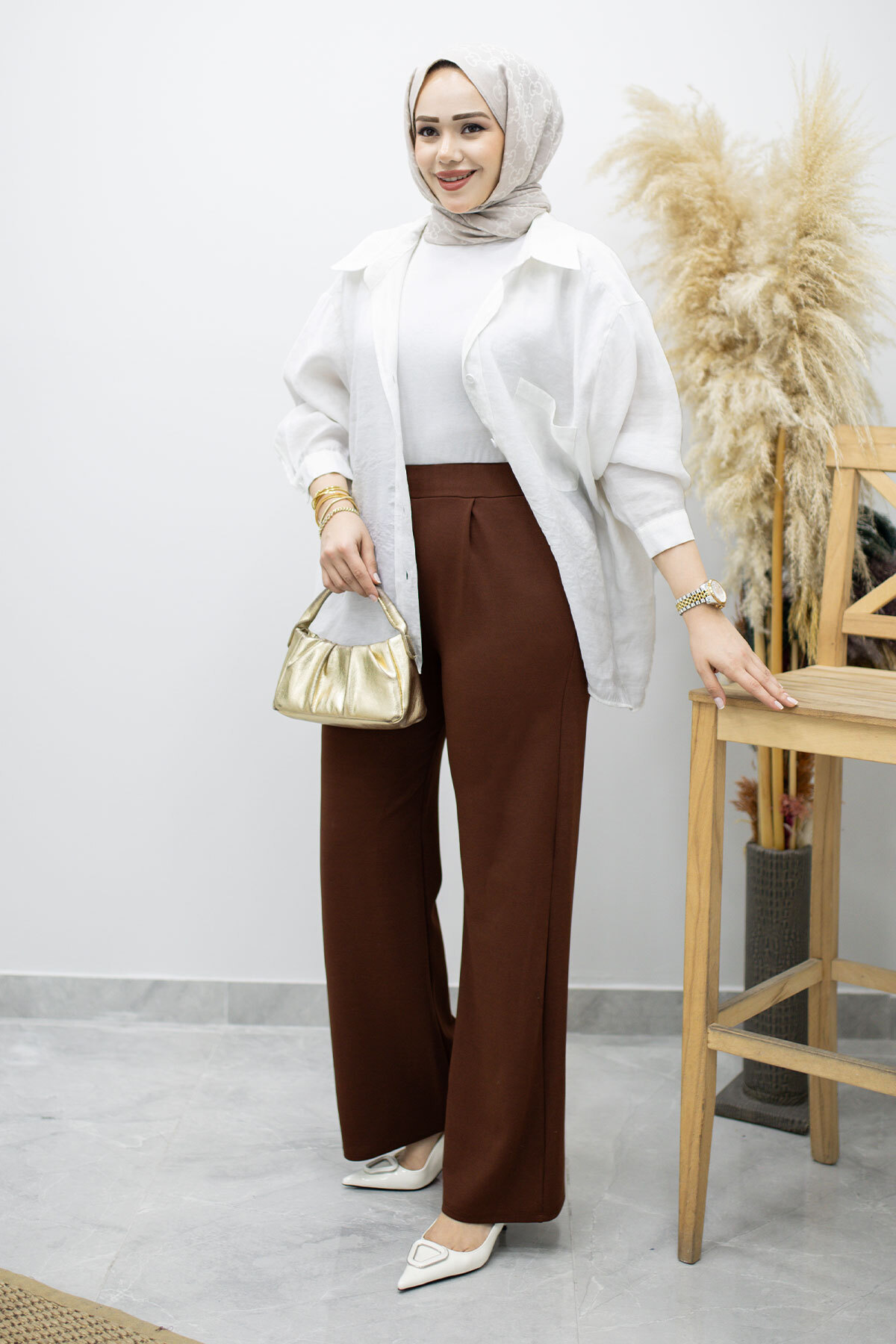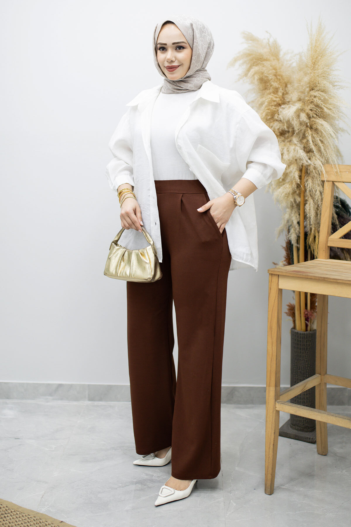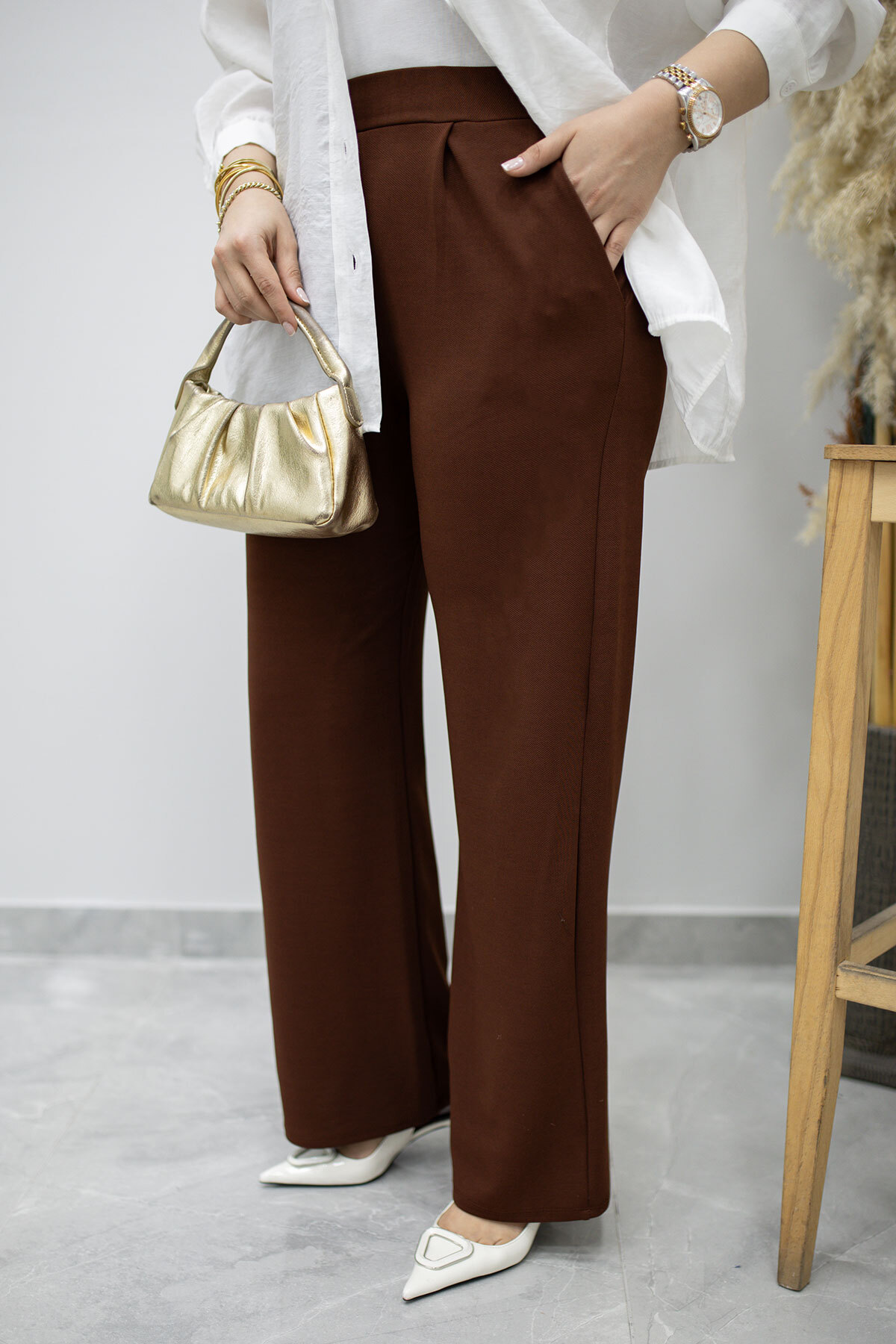 Beli Lastikli Cepli Palazzo Pantolon TSD260159 Kahverengi