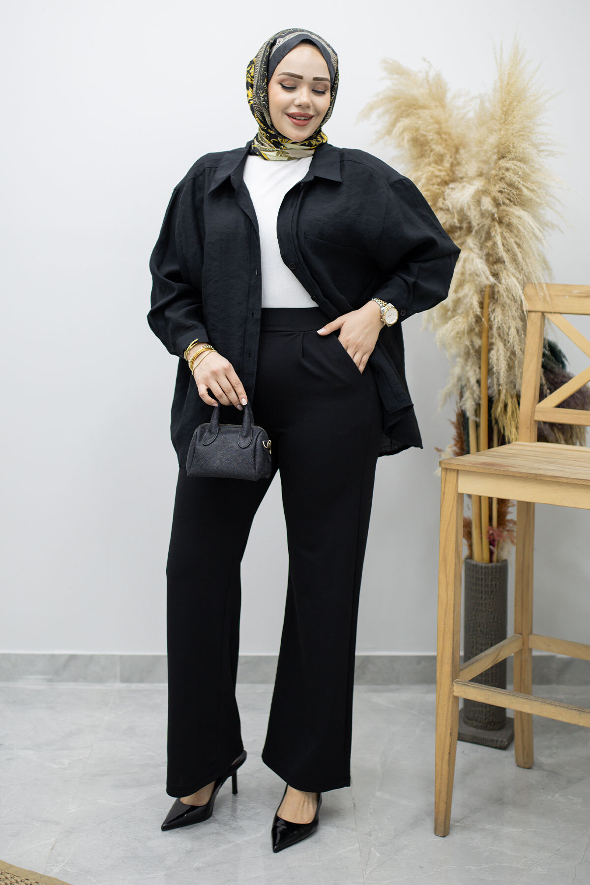 Beli Lastikli Cepli Palazzo Pantolon TSD260159 Siyah