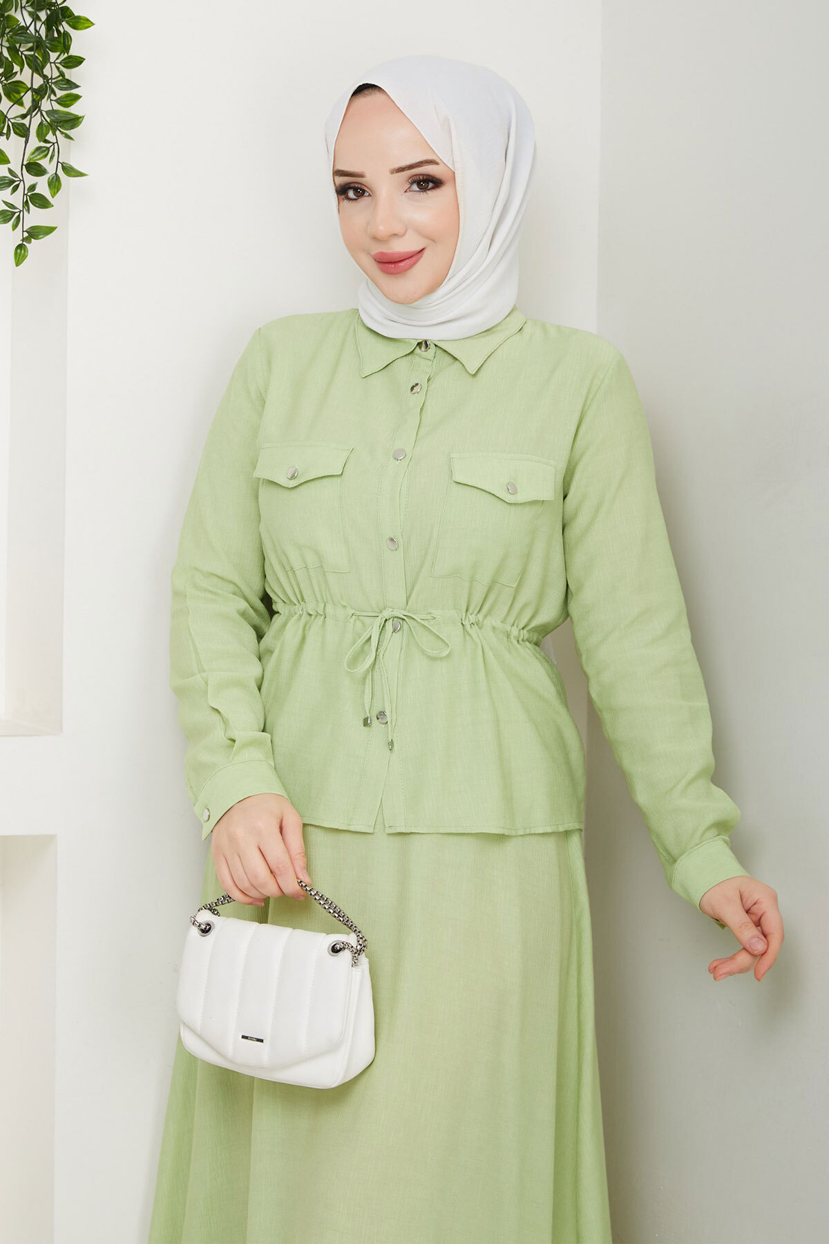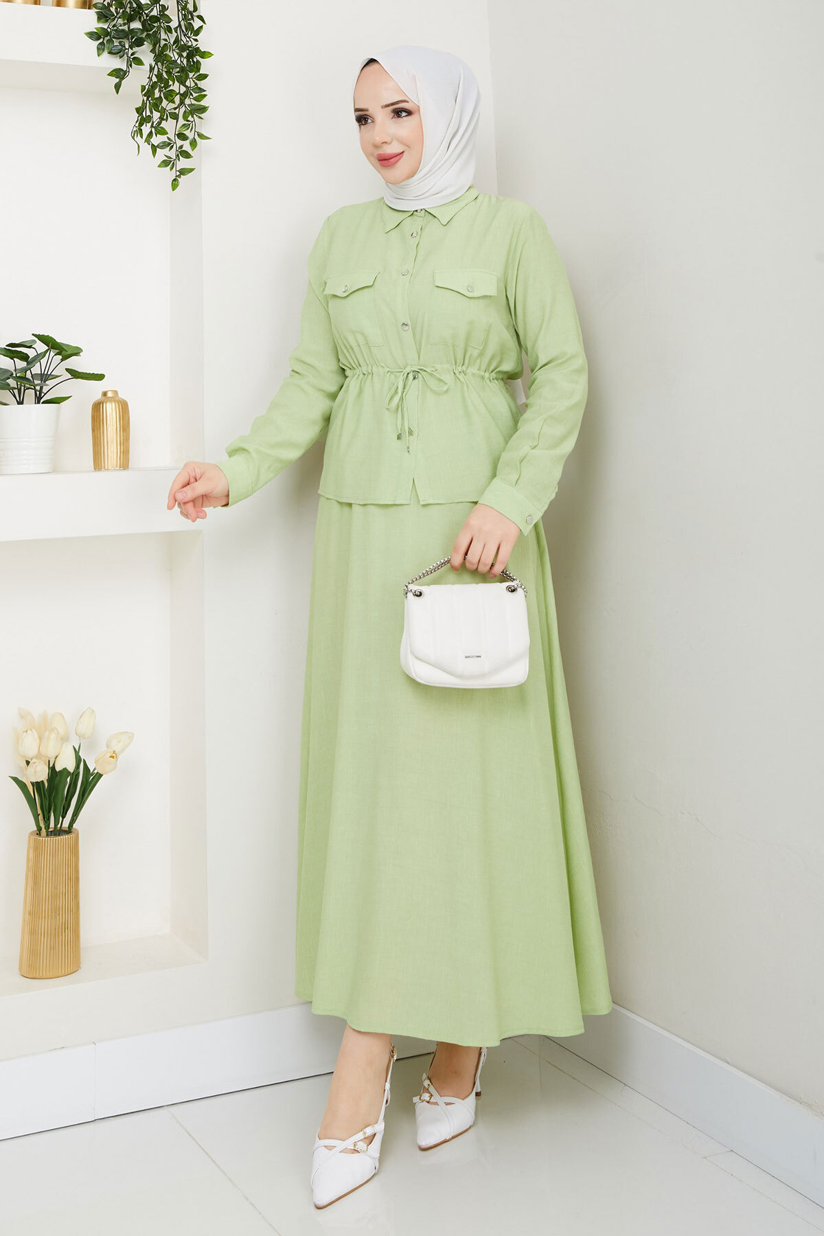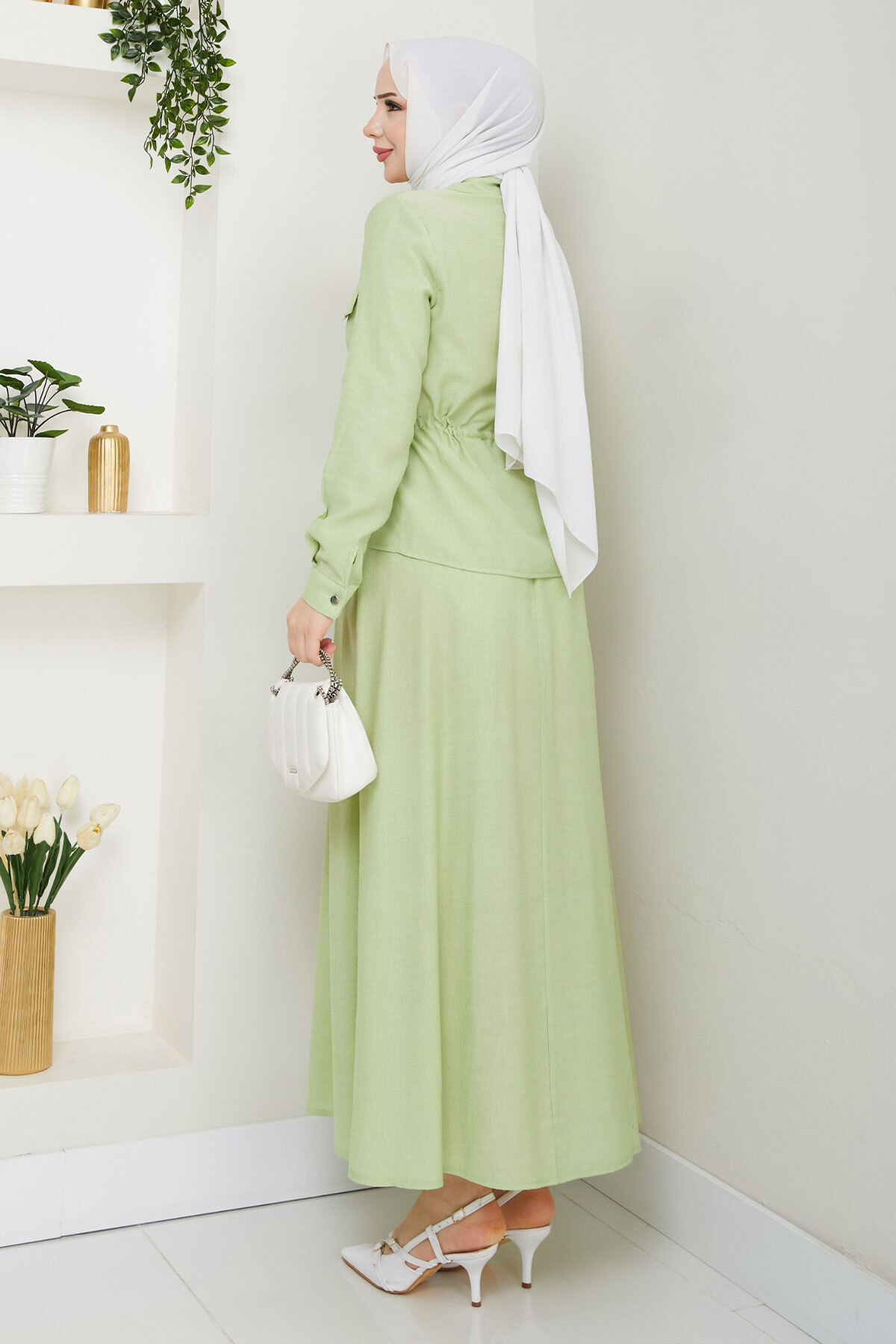 Beli Lastikli Etekli Takım TSD250164 Fıstık Yeşili Özellikleri