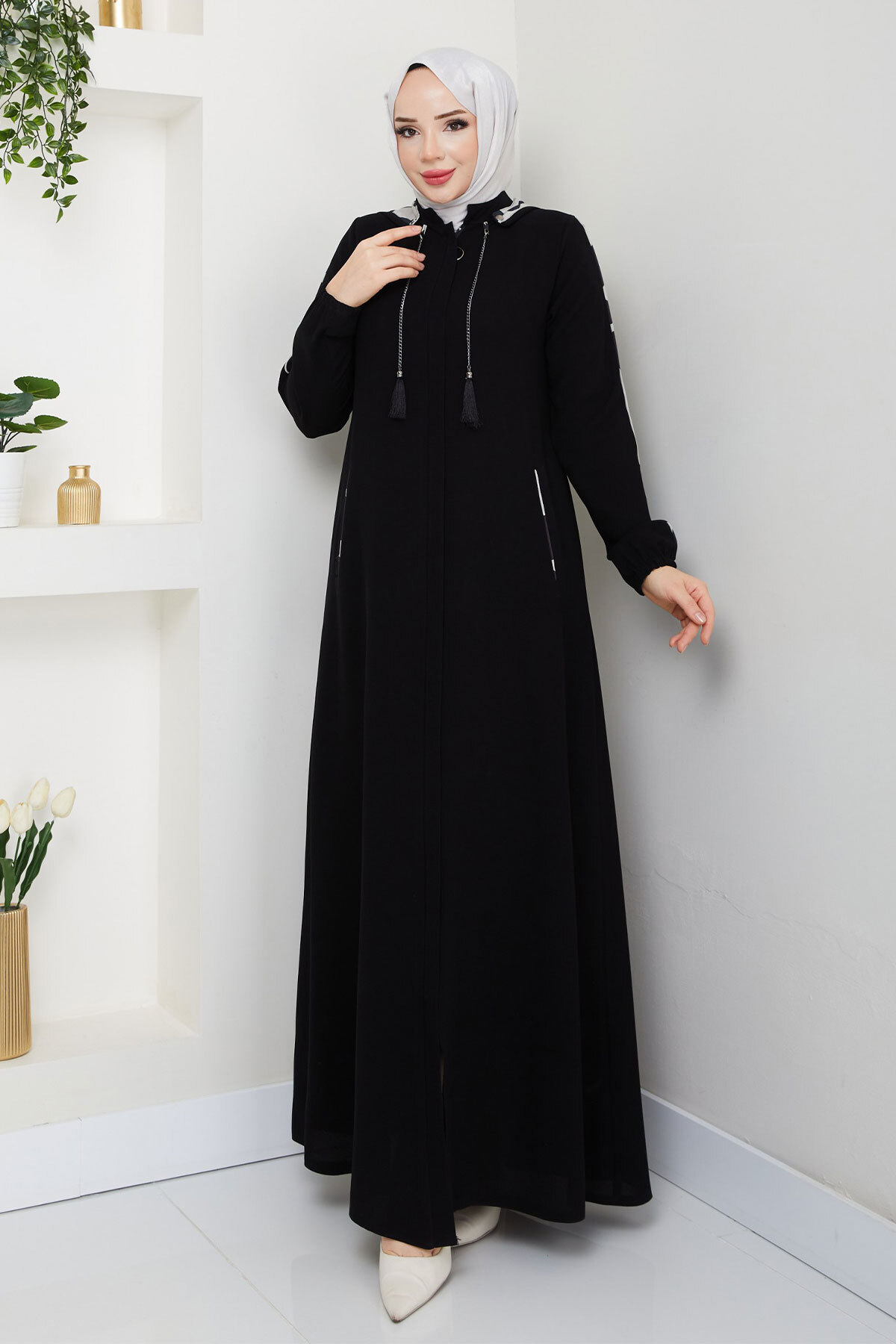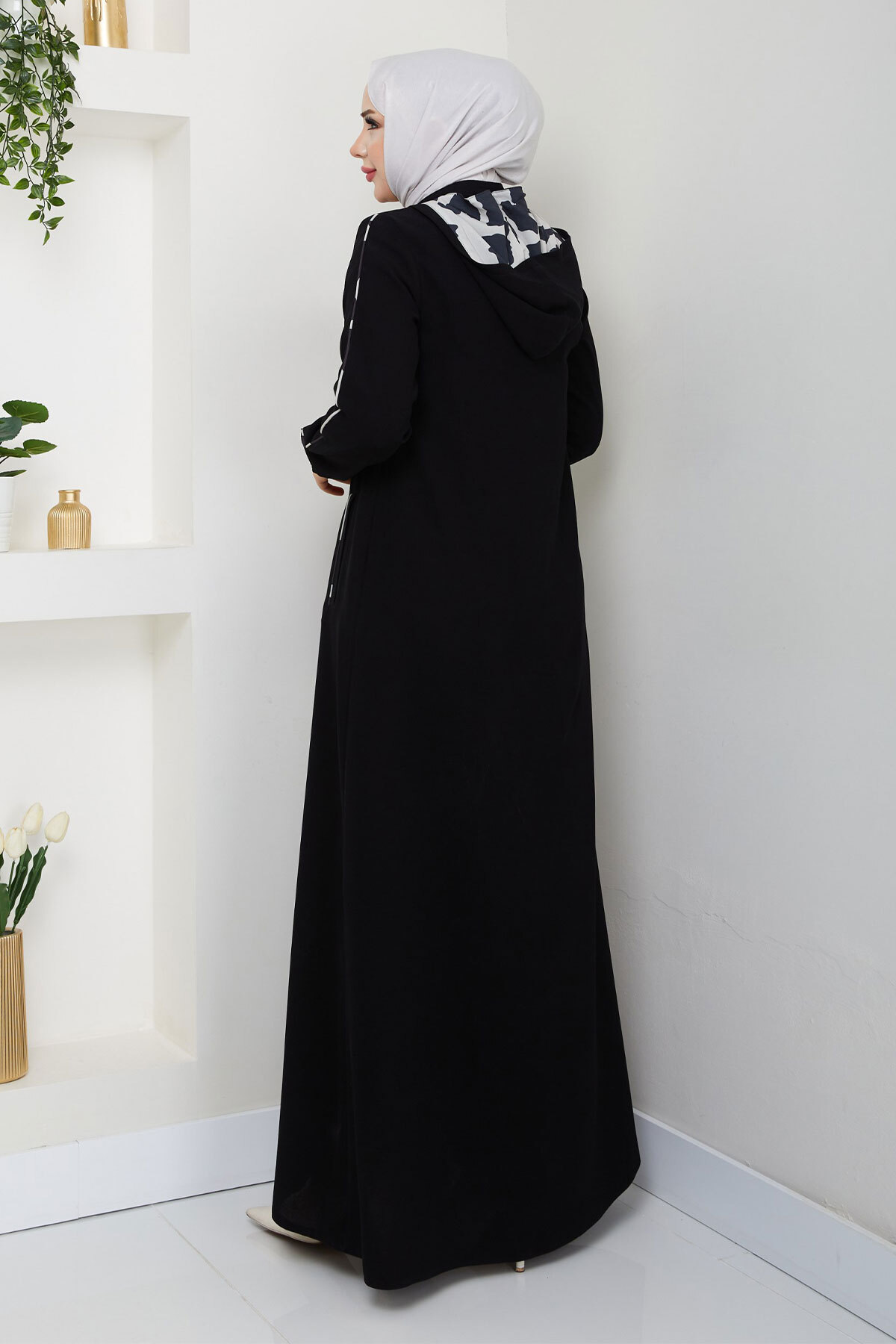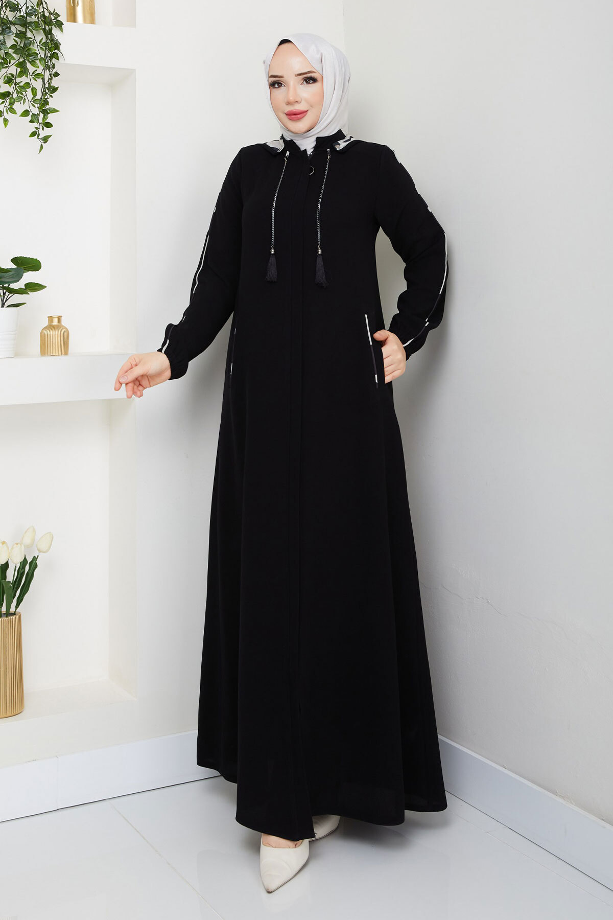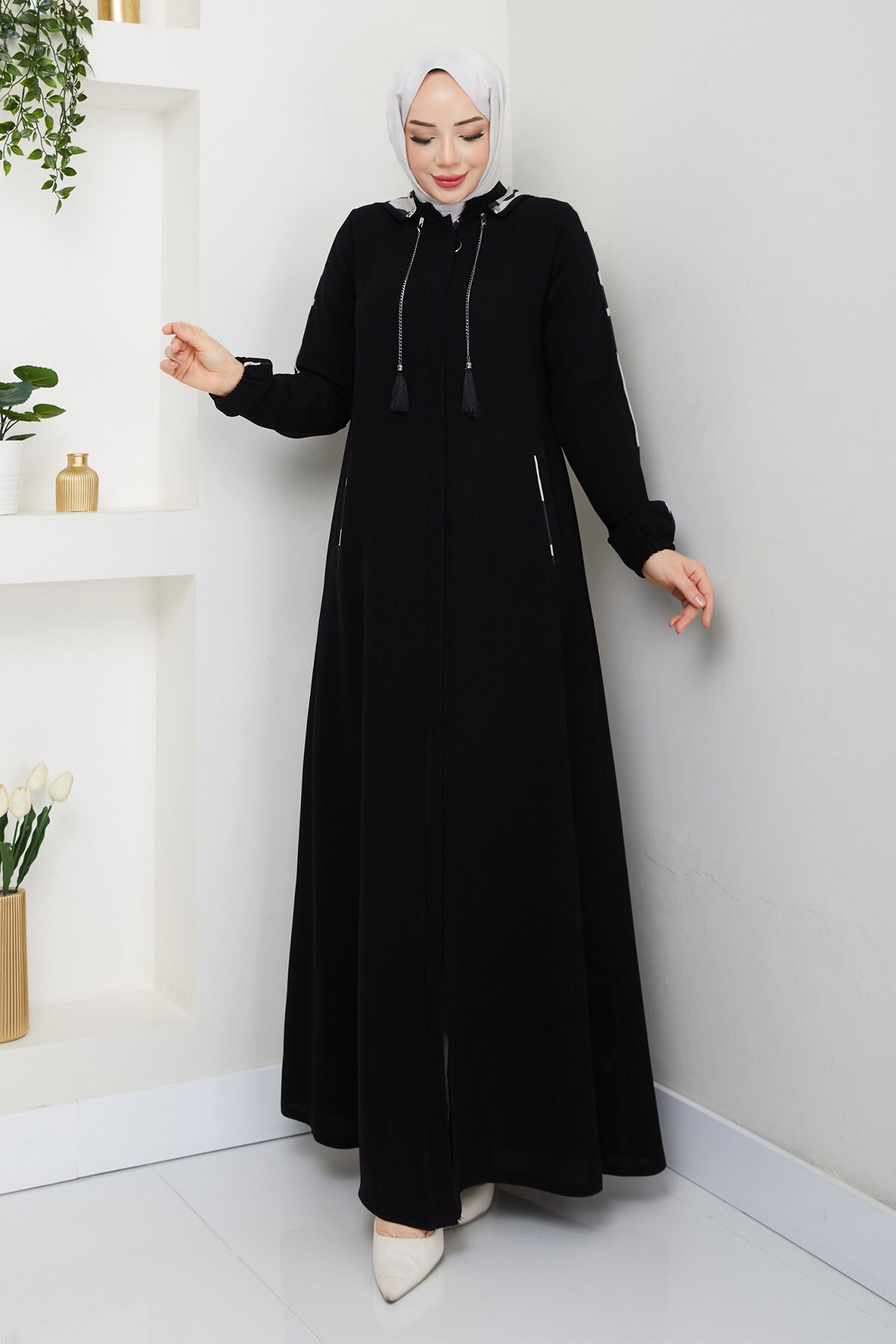 Biye Detaylı Kapüşonlu Ferace TSD250124 Siyah