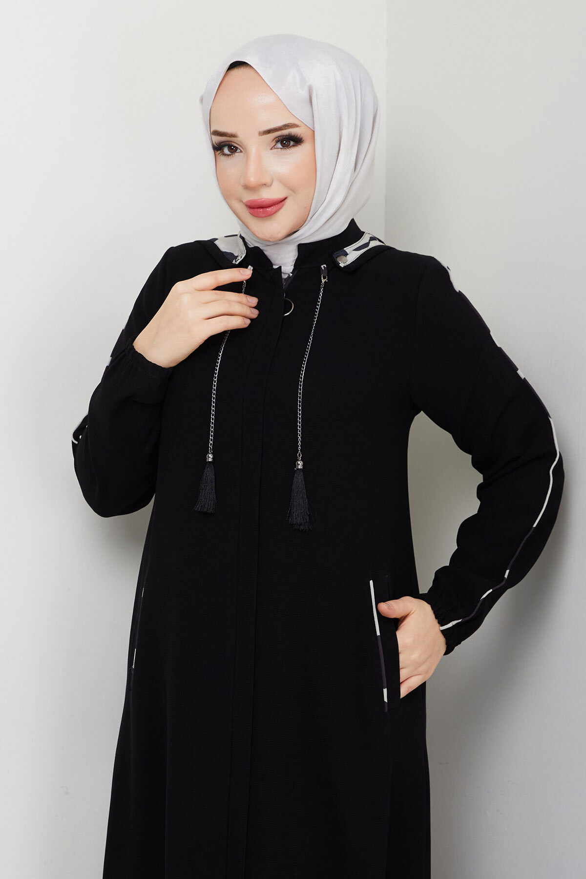 Ürün Özelliği : Yeni Biye Detaylı Kapüşonlu Ferace modelidir. Boydan gizli fermuarlıdır. Bilekleri lastiklidir. Kullanılabilir iki adet cebi bulunmaktadır. Yaka kısmında zincir detayları bulunmaktadır. Kapüşonu çıkarılabilmektedir. Astarsızdır. Ürün renginde konsept çekimlerinden dolayı ton farklılığı olabilir.