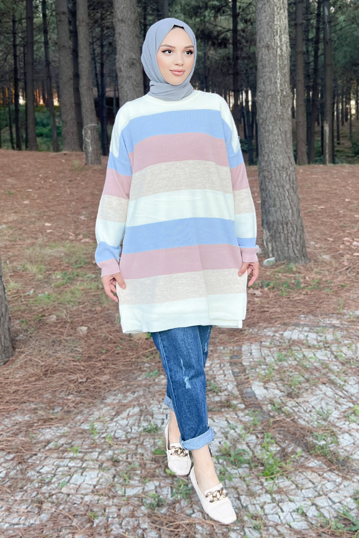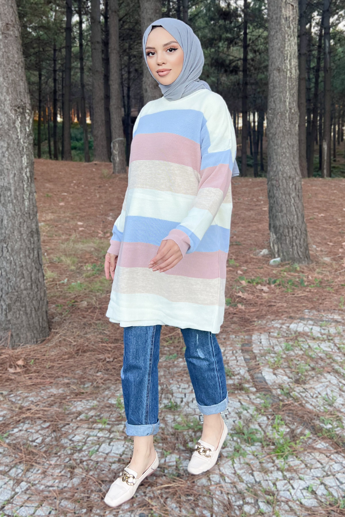 Ürün Özelliği : Yeni sezon Blok Renkli Triko Tunik modelidir. Ürün düşük kol modellidir.Renkli üründür. Ürün renginde konsept çekimlerinden dolayı ton farklılığı olabilir.