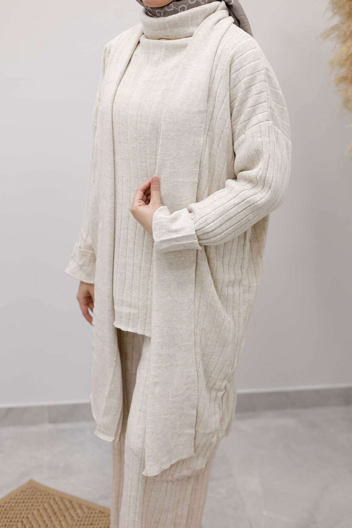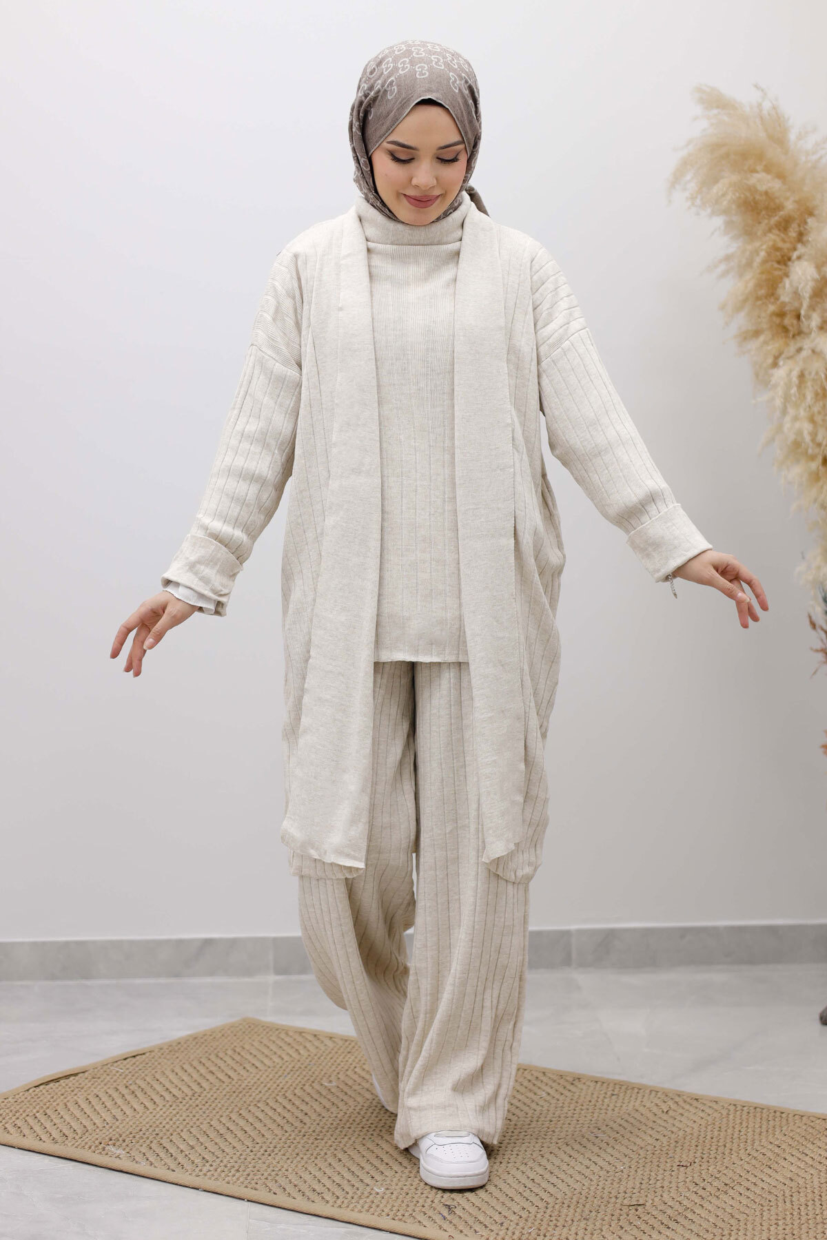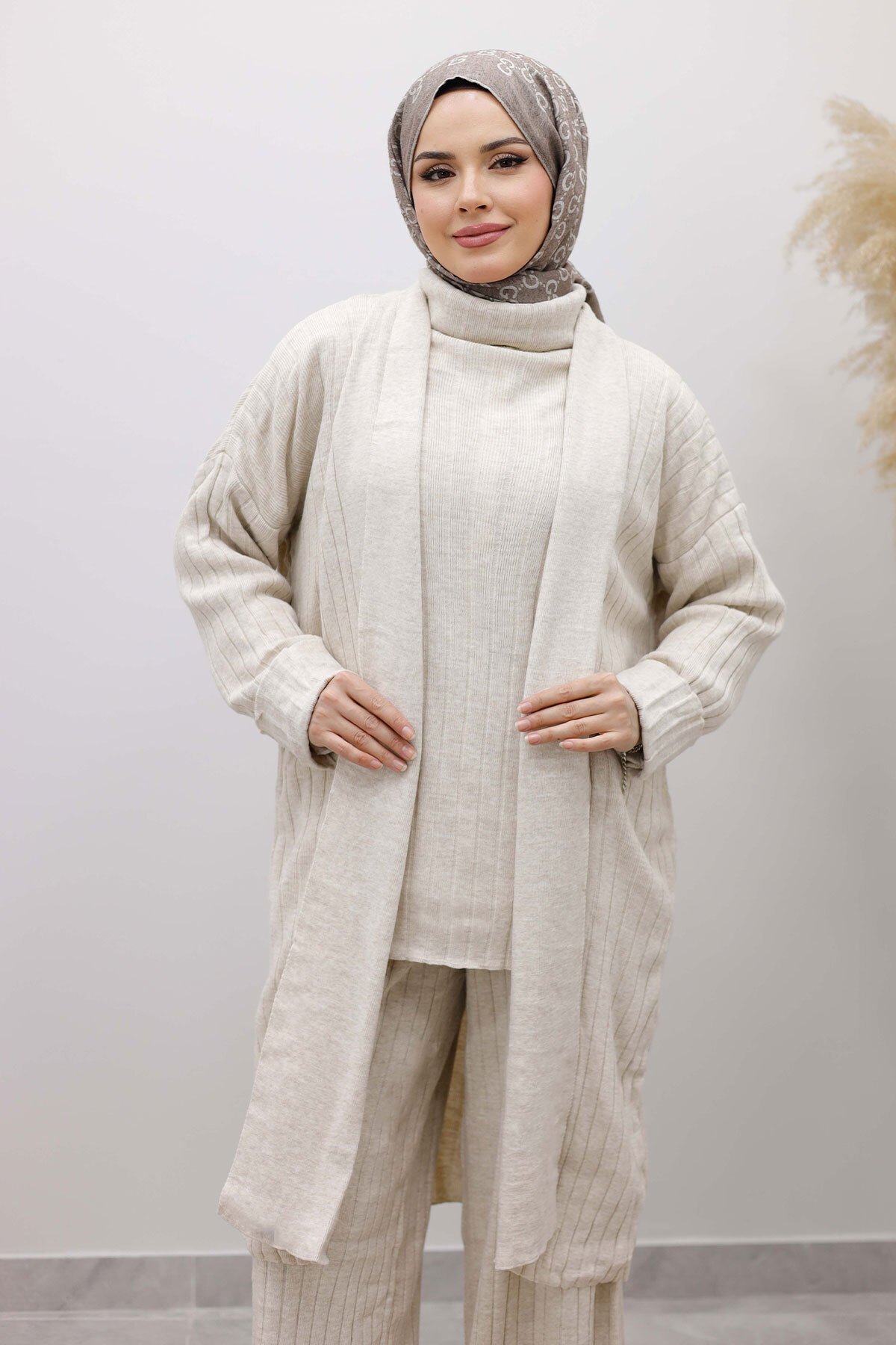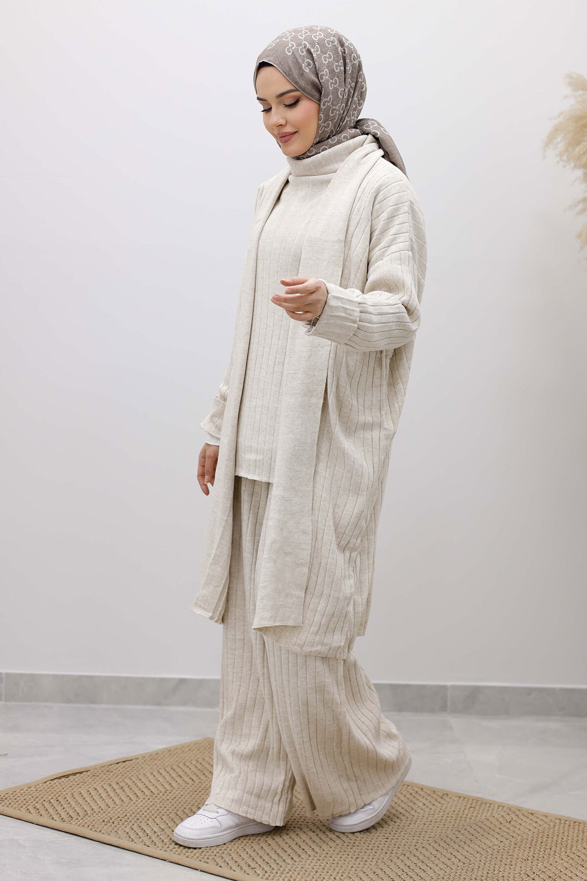 Boğazlı Üçlü Triko Takım TSD260111 Bej Özellikleri