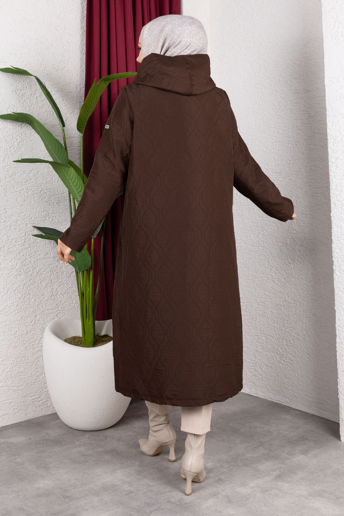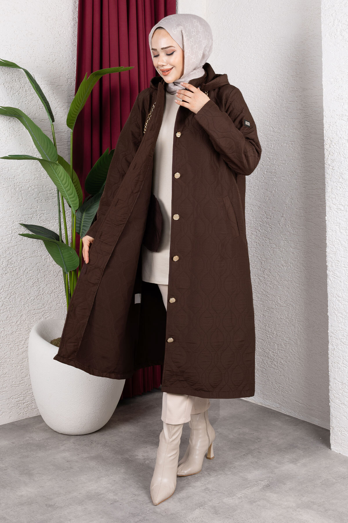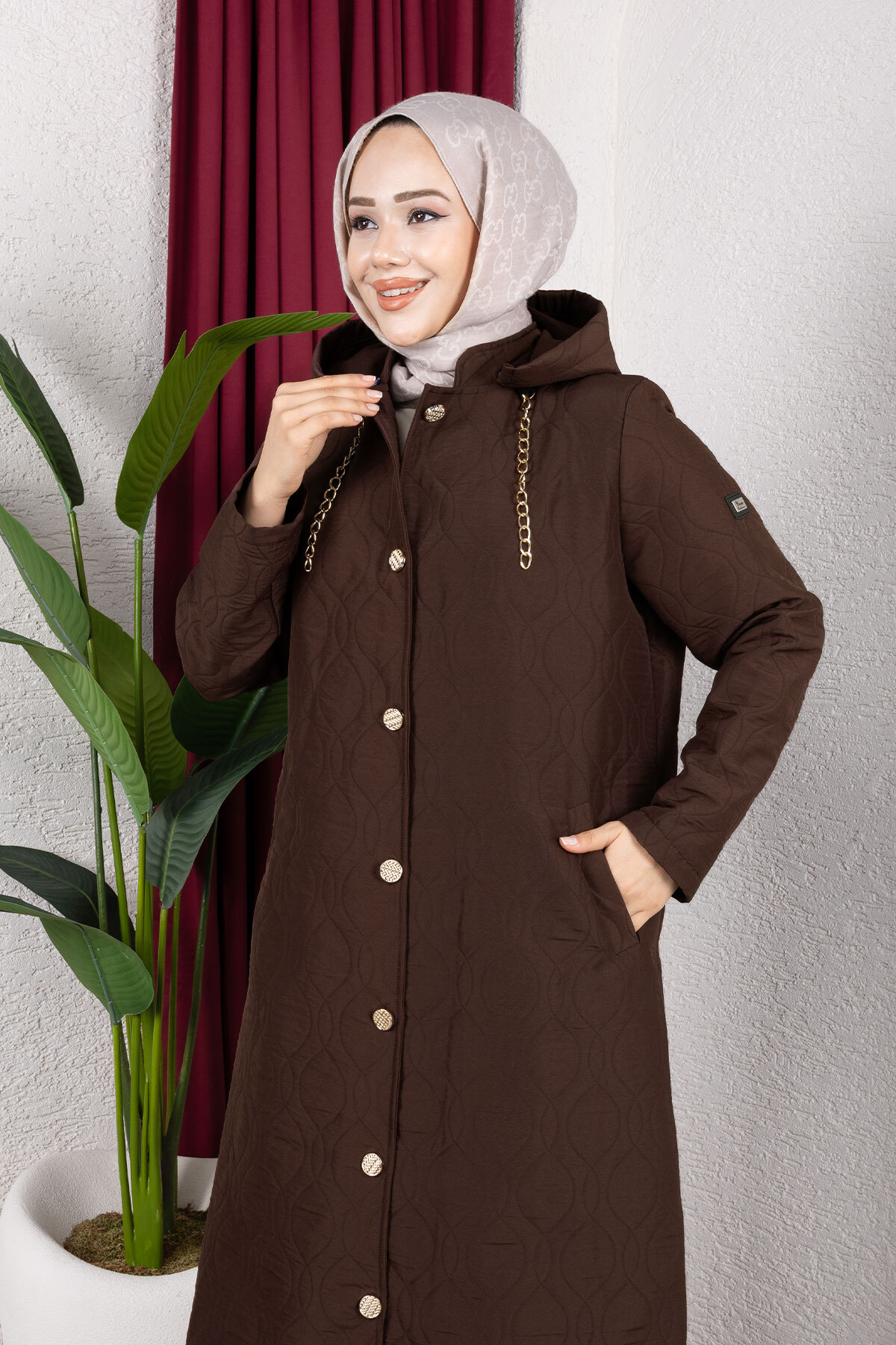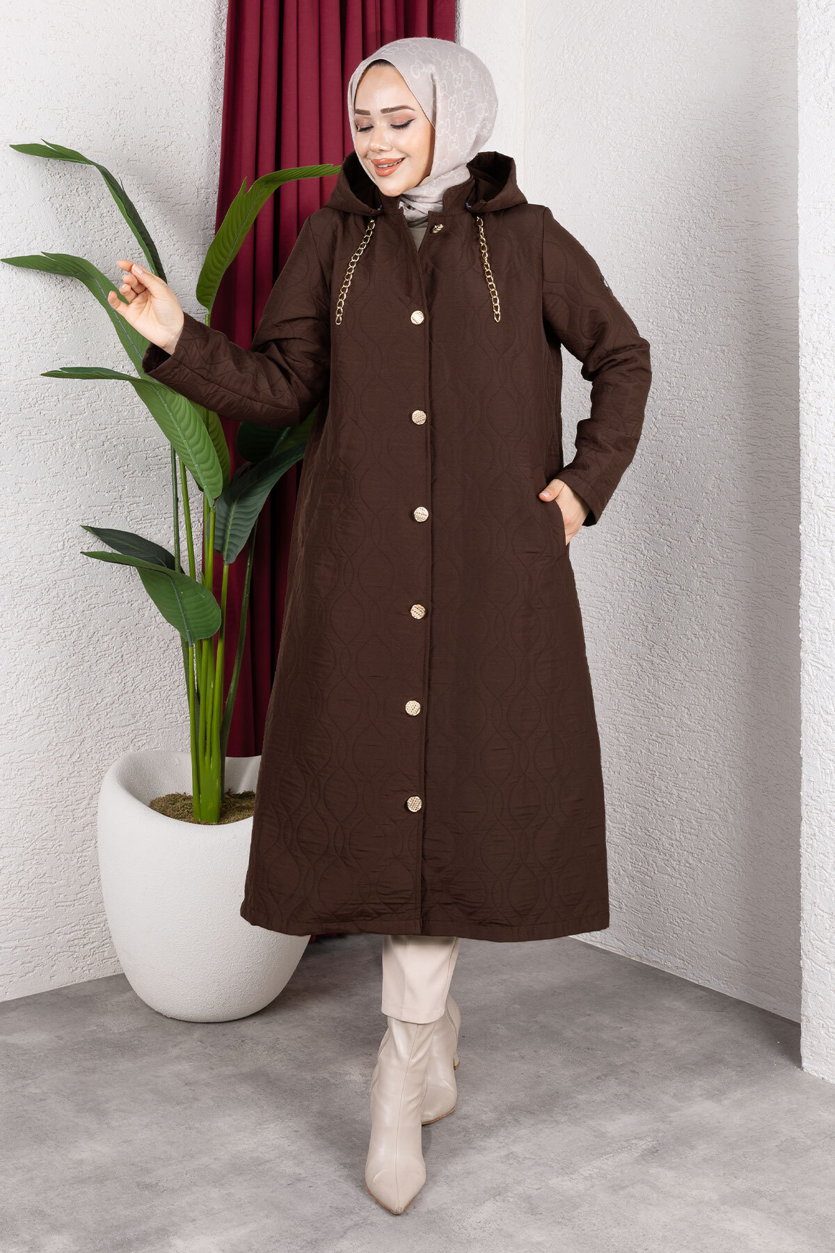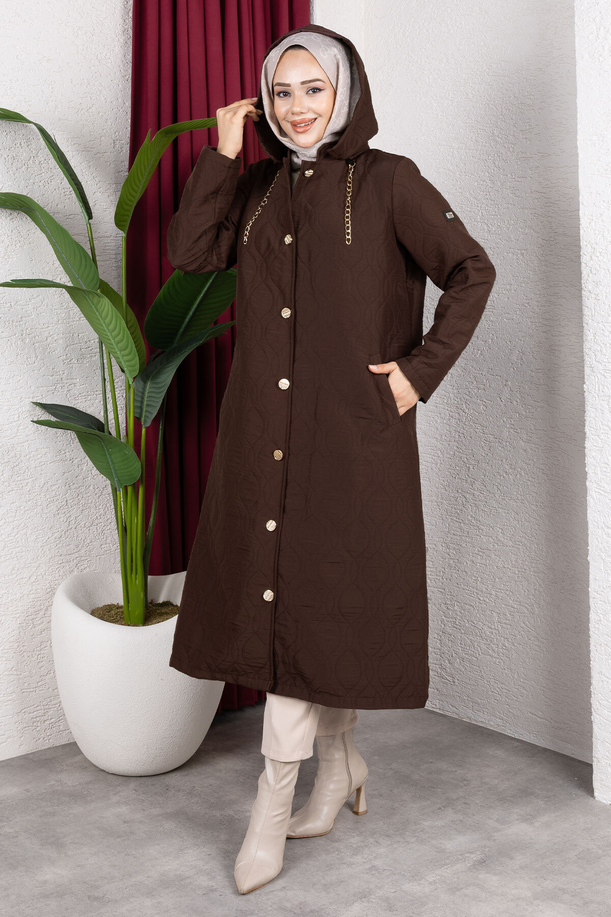 Boydan Düğmeli Kapitone Kap TSD250217 Acı Kahve Özellikleri