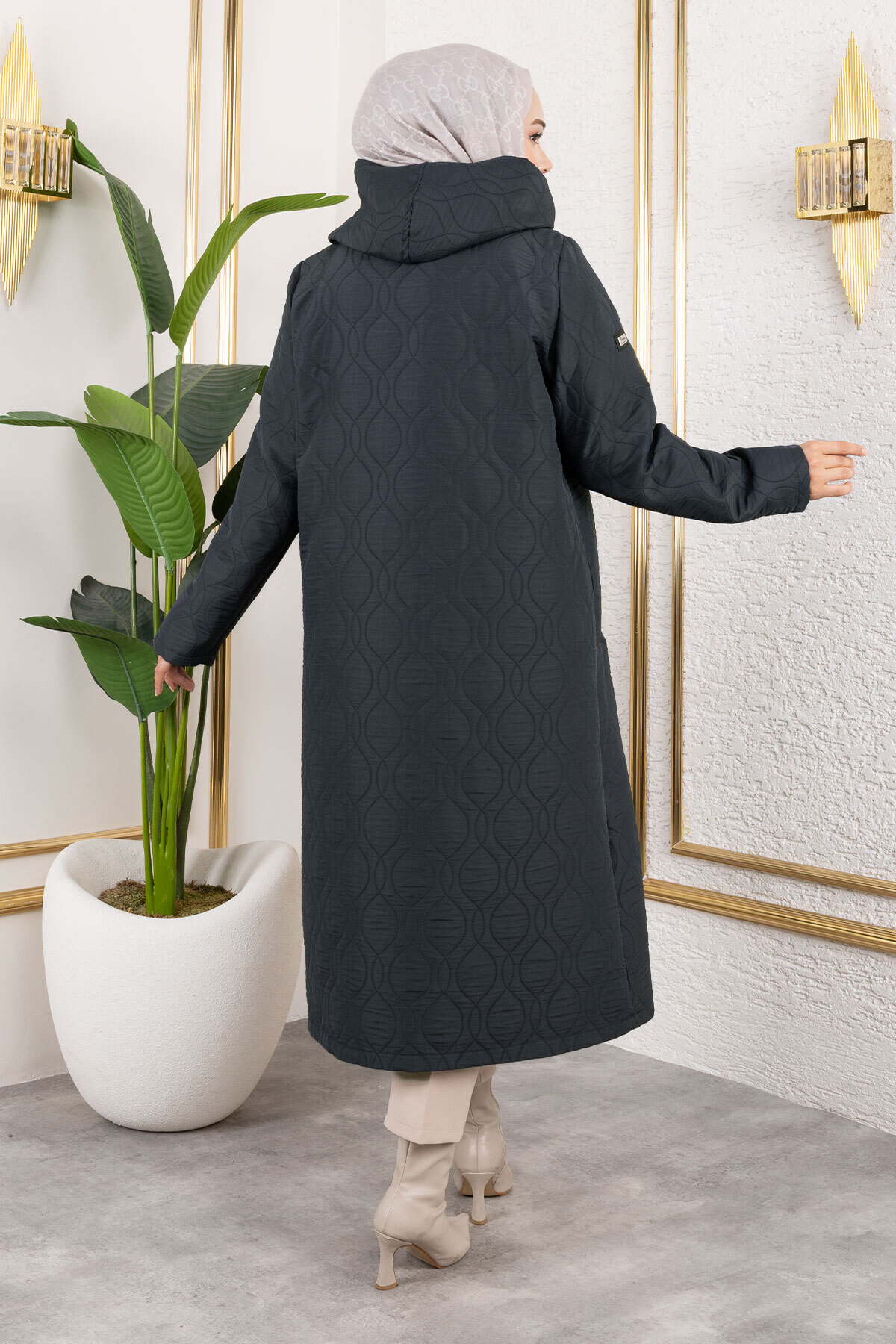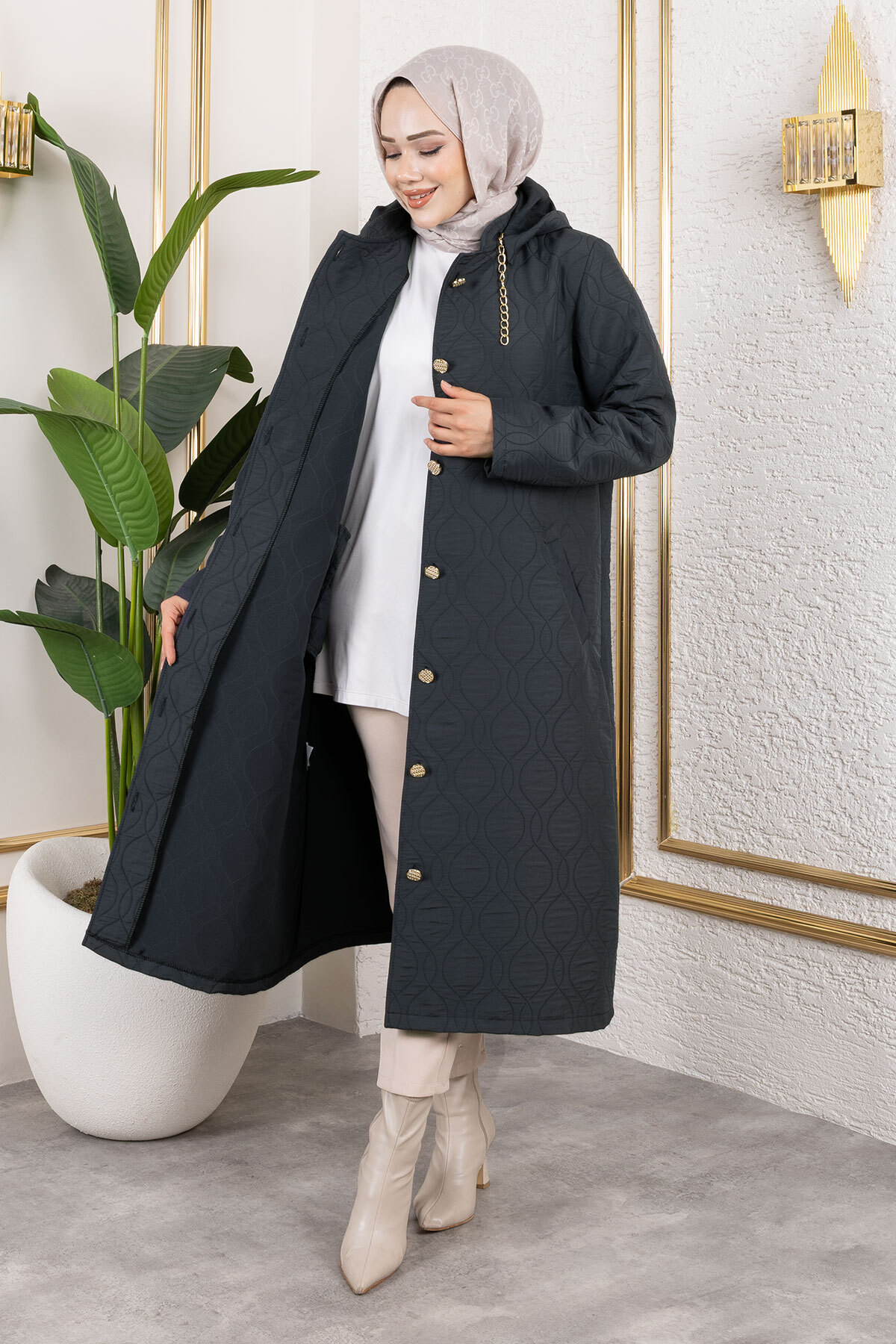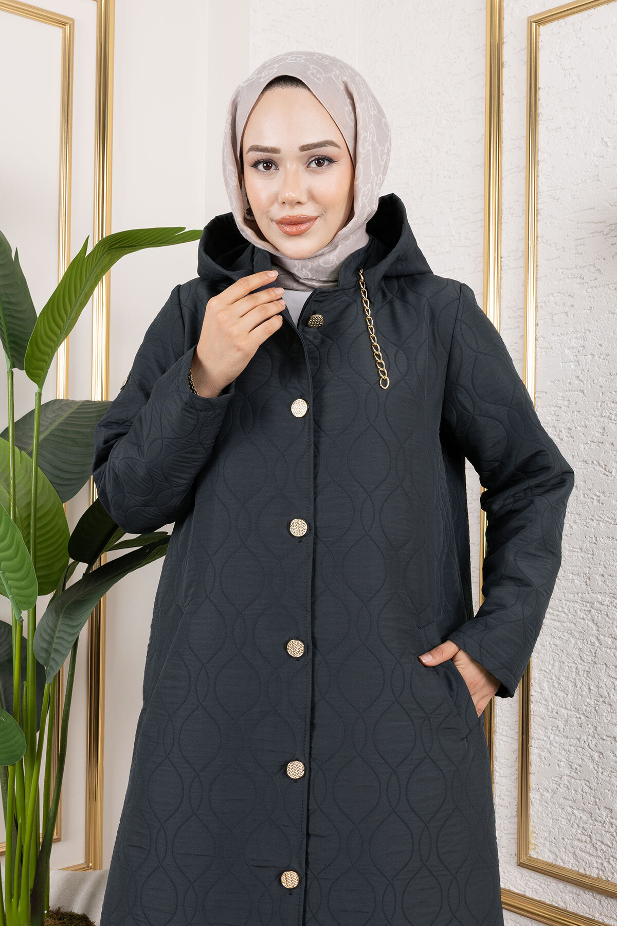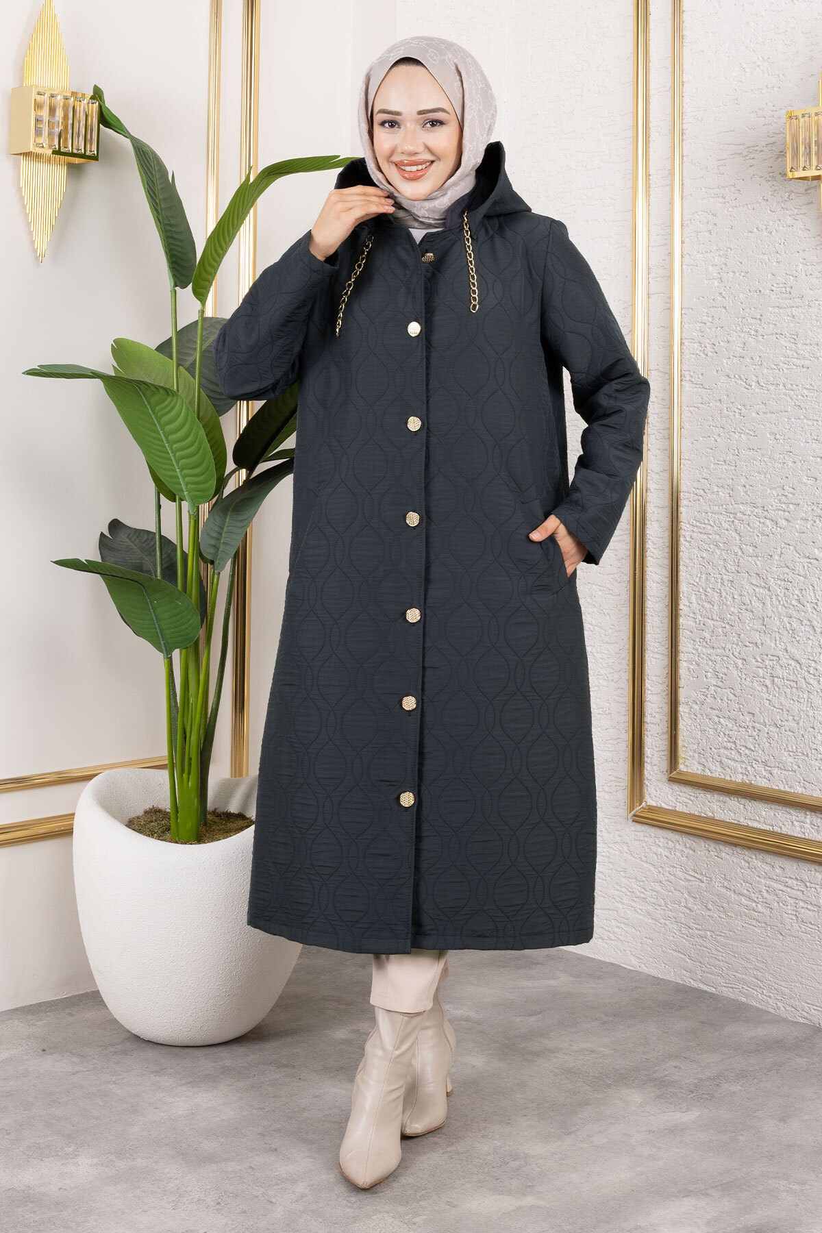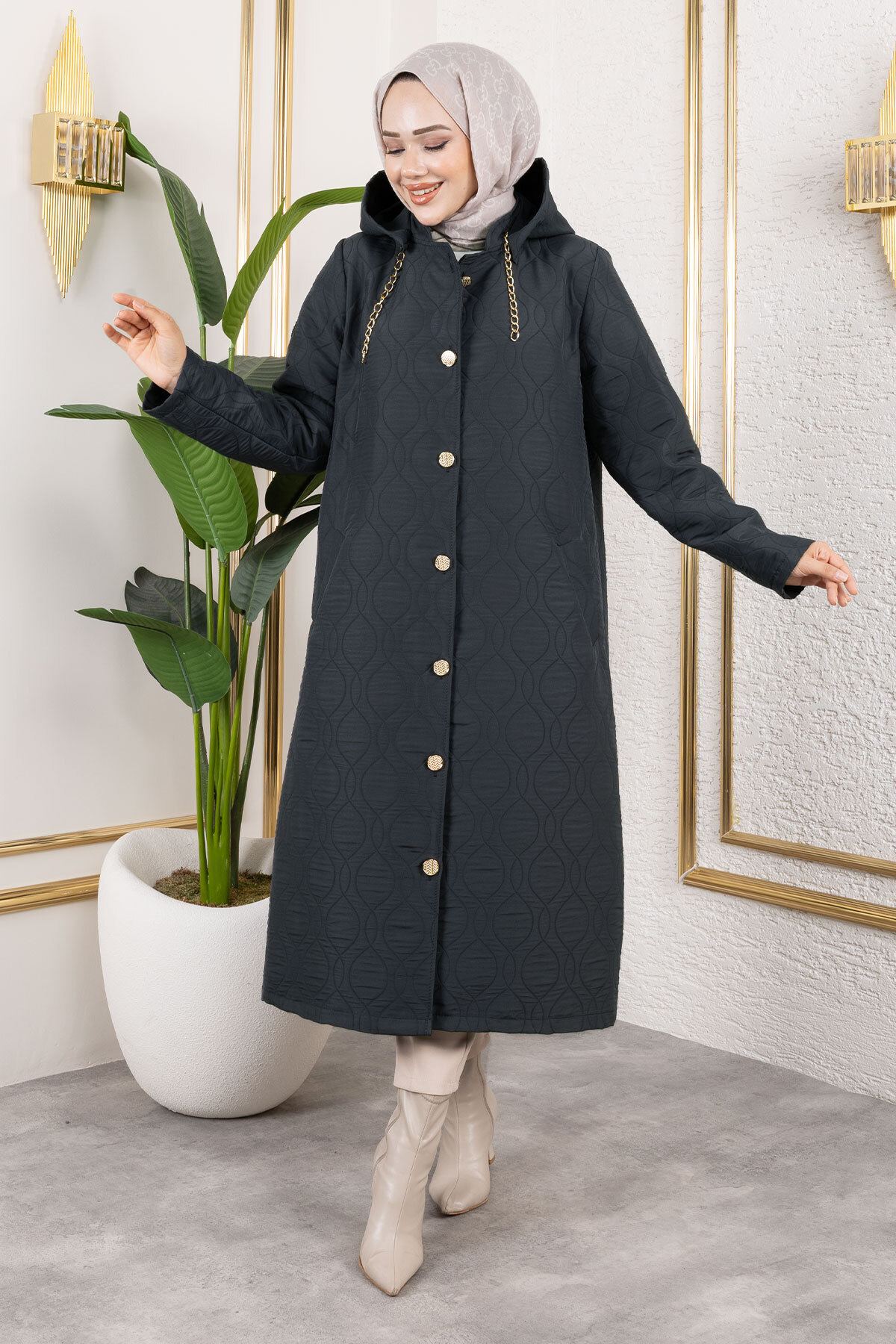 Boydan Düğmeli Kapitone Kap TSD250217 Antrasit Özellikleri