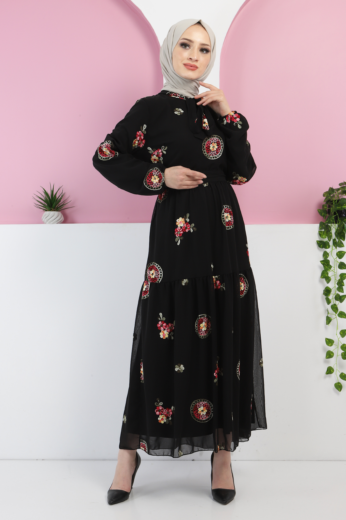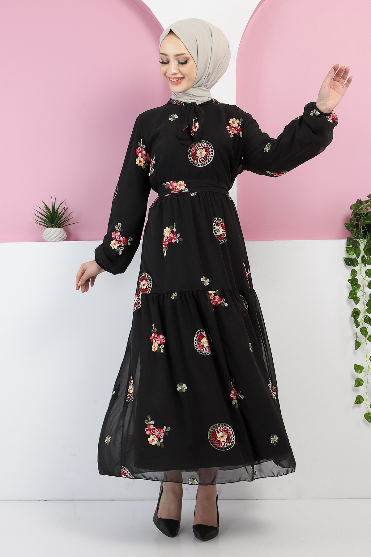 Kumaş Özelliği : Şifon kumaştan üretilmiştir.Ürün Özelliği : Yeni sezon Büyük Beden Nakışlı Elbise modelidir. Nakış Desenli kumaştır. Belinde çıkarılabilir kuşak mevcuttur. Astarlıdır. Ürün renginde konsept çekimlerinden dolayı ton farklılığı olabilir.