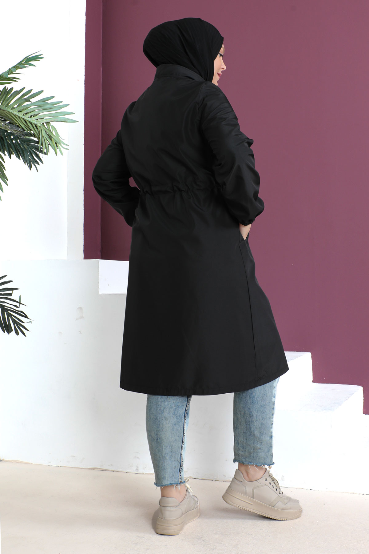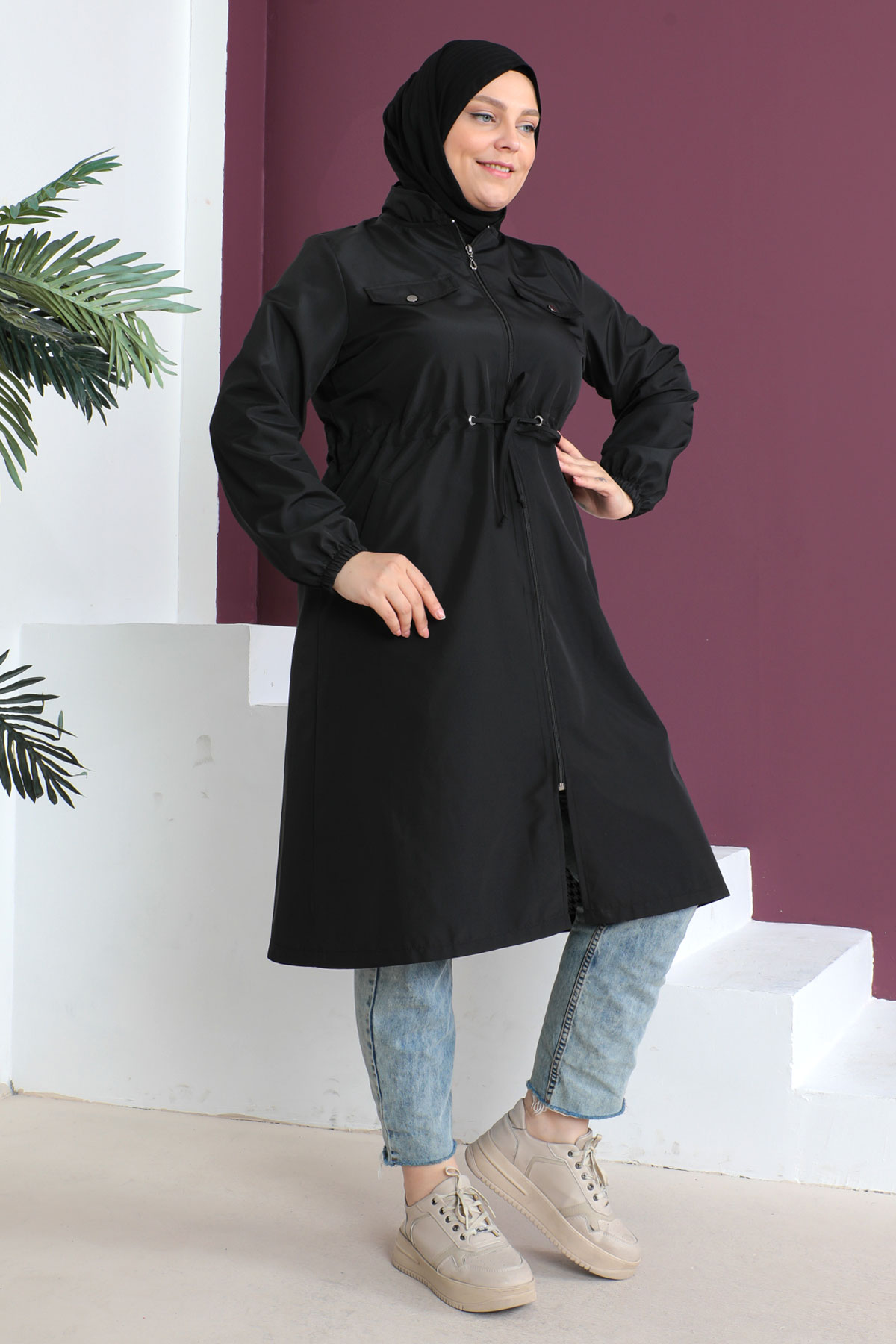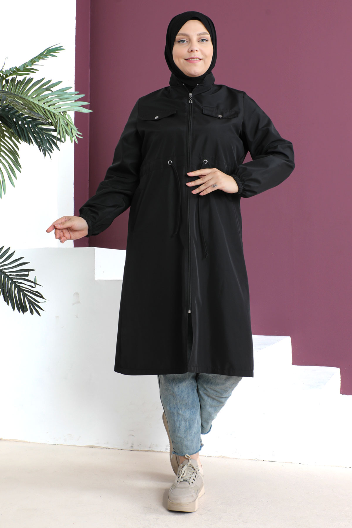 Büyük Beden Süs Cepli Trençkot TSD230504 Siyah Özellikleri