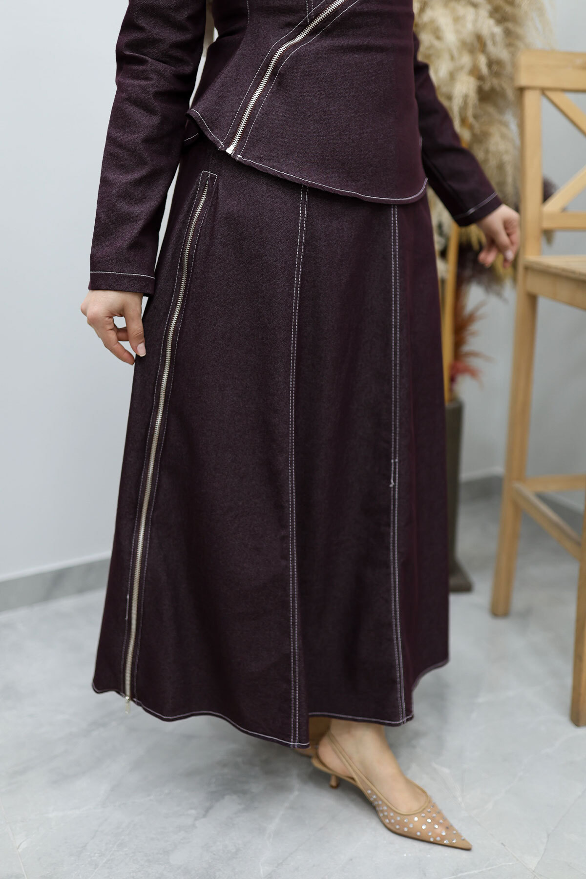 Çapraz Fermuarlı Etekli Takım TSD260144 Bordo