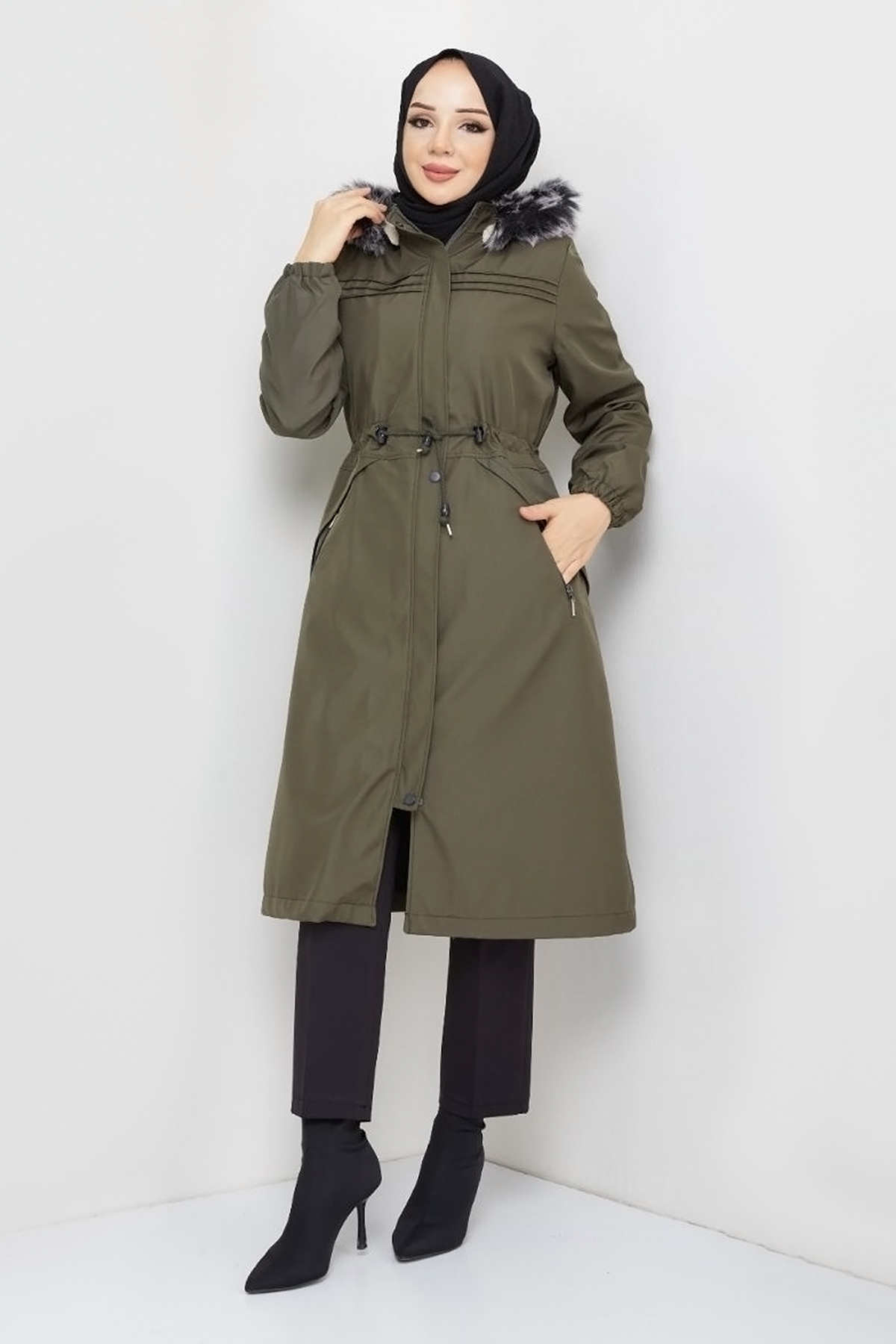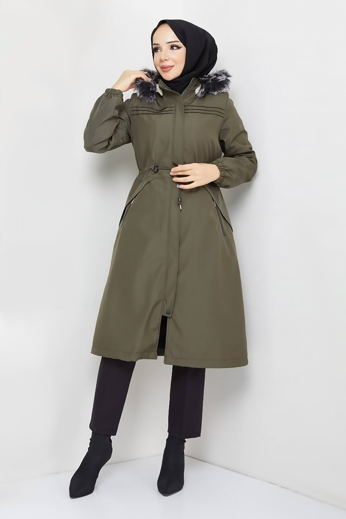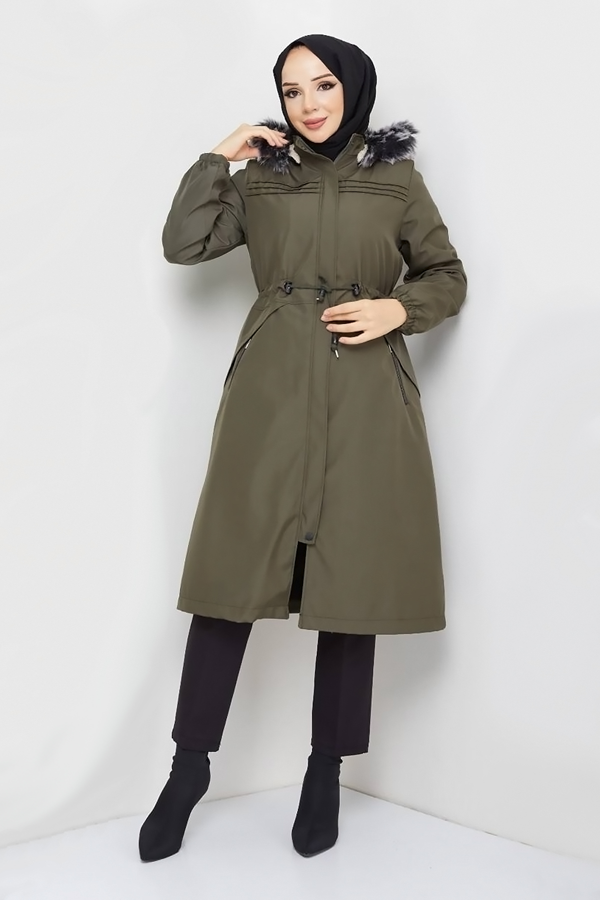 Ürün Özelliği : Yeni sezon Cebi Fermuarlı Pat Detaylı Mont modelidir. Beli bağcıklı, içi kürklü, çıkarılabilir kapüşonludur. Önünde pat detayı mevcuttur. Önü boydan çıtçıtlı ve gizli fermuarlıdır. Sağ ve solda kullanılabilir iki adet fermuarlı cebi bulunmaktadır. Kol ucu lastiklidir. Ürün renginde konsept çekimlerinden dolayı ton farklılığı olabilir.