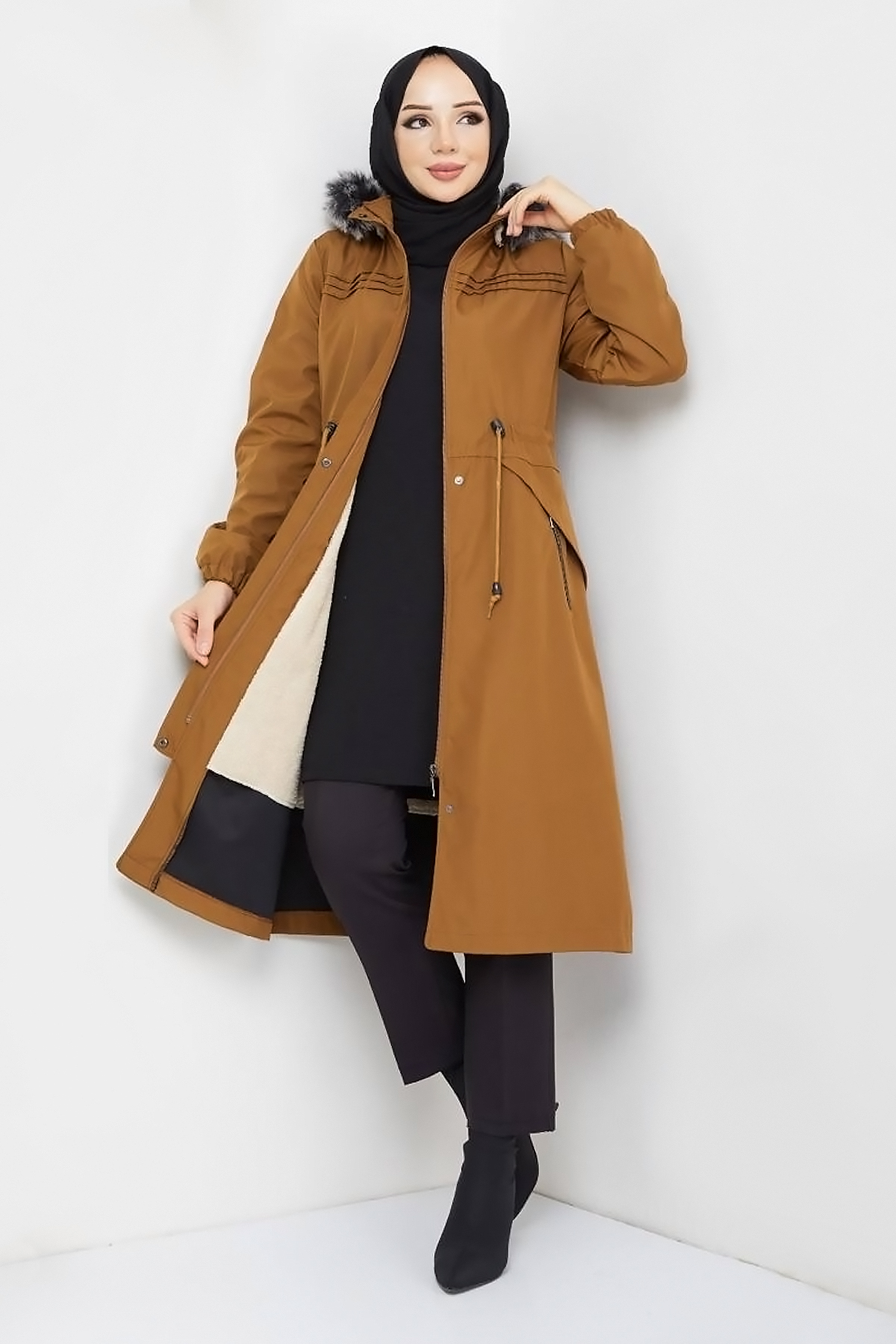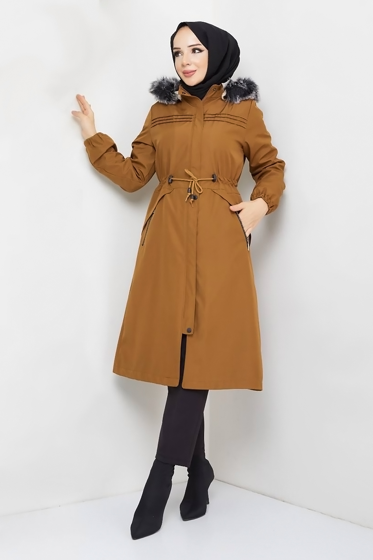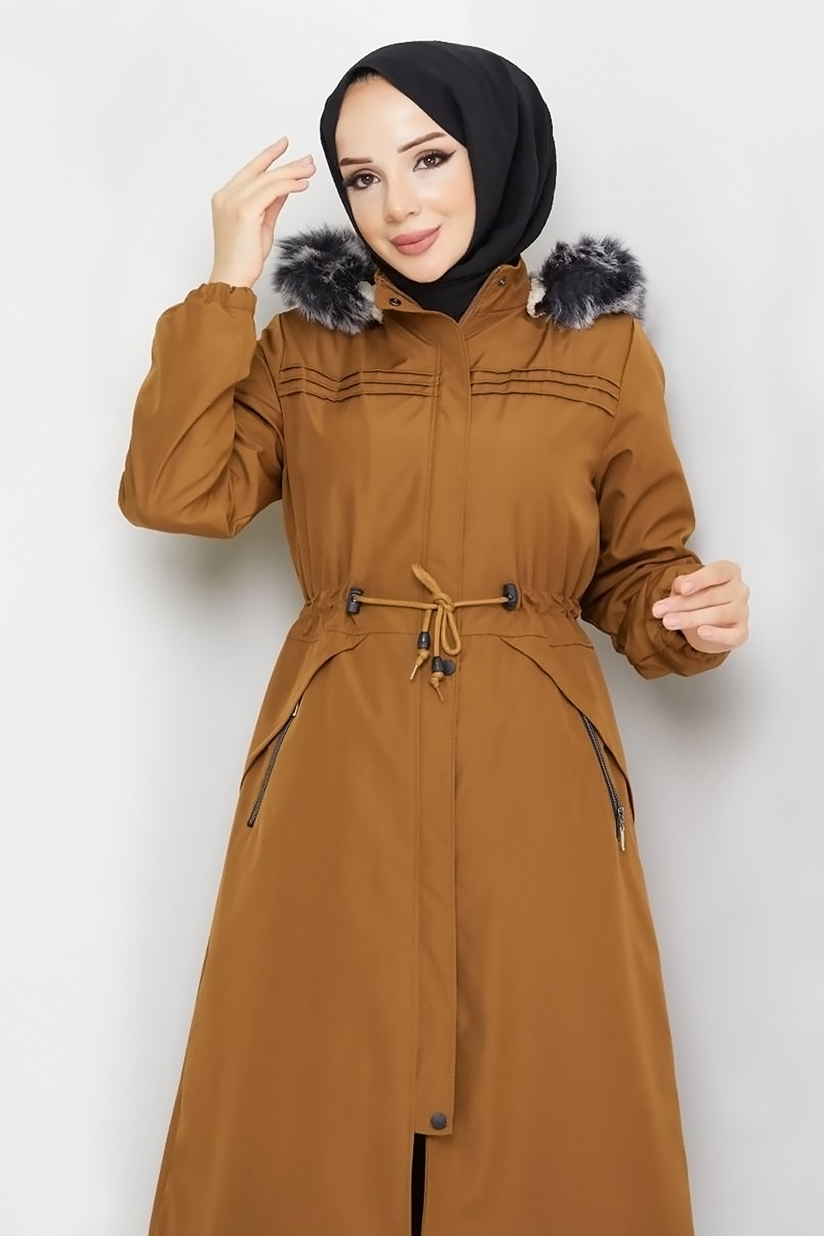 Ürün Özelliği : Yeni sezon Cebi Fermuarlı Pat Detaylı Mont modelidir. Beli bağcıklı, içi kürklü, çıkarılabilir kapüşonludur. Önünde pat detayı mevcuttur. Önü boydan çıtçıtlı ve gizli fermuarlıdır. Sağ ve solda kullanılabilir iki adet fermuarlı cebi bulunmaktadır. Kol ucu lastiklidir. Ürün renginde konsept çekimlerinden dolayı ton farklılığı olabilir.