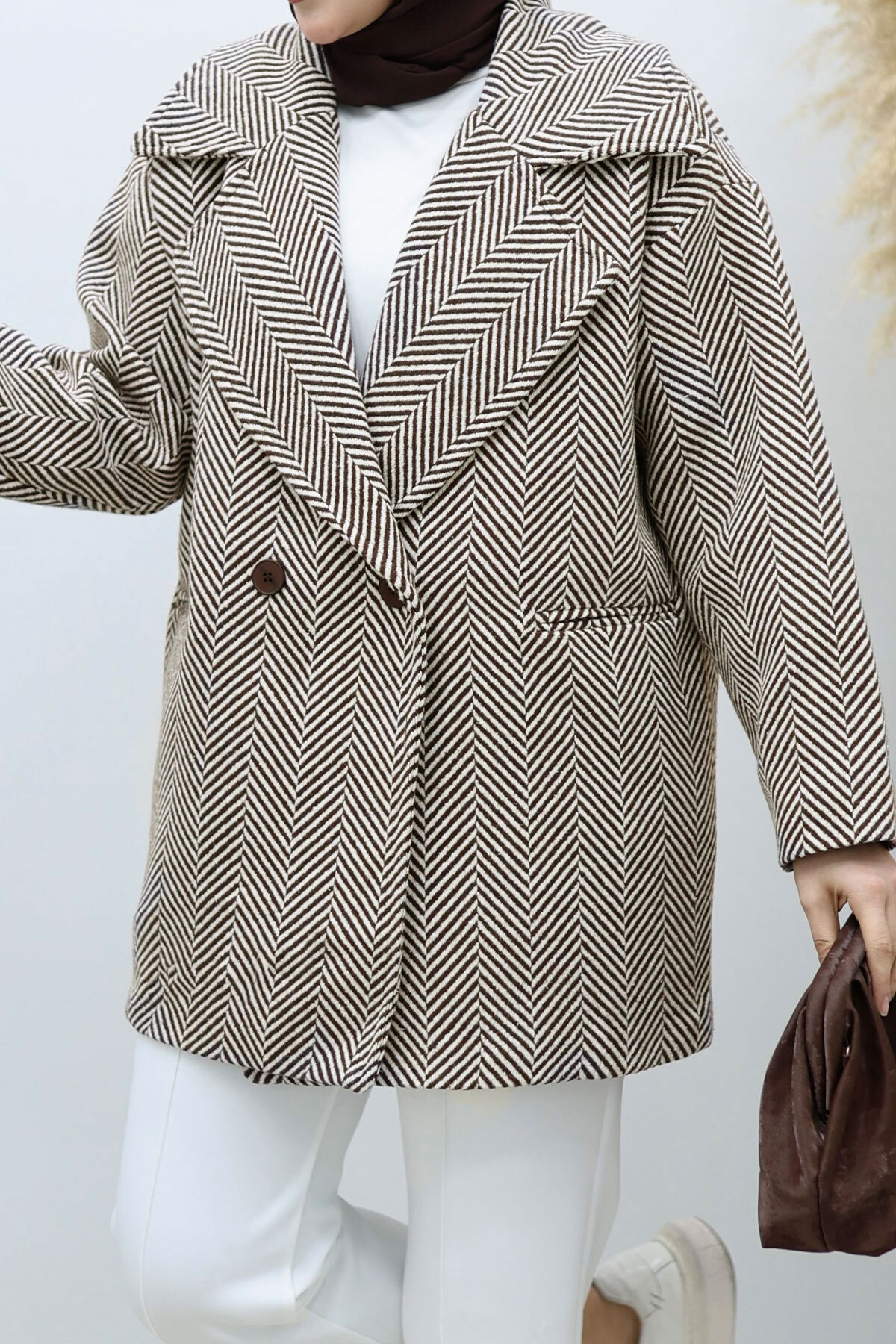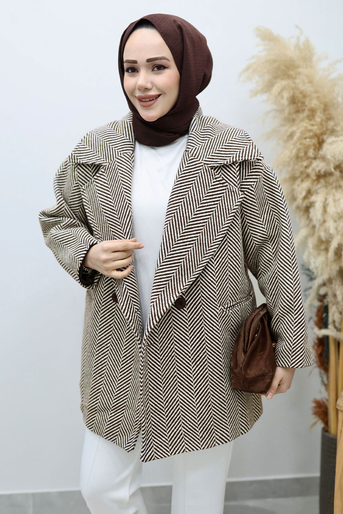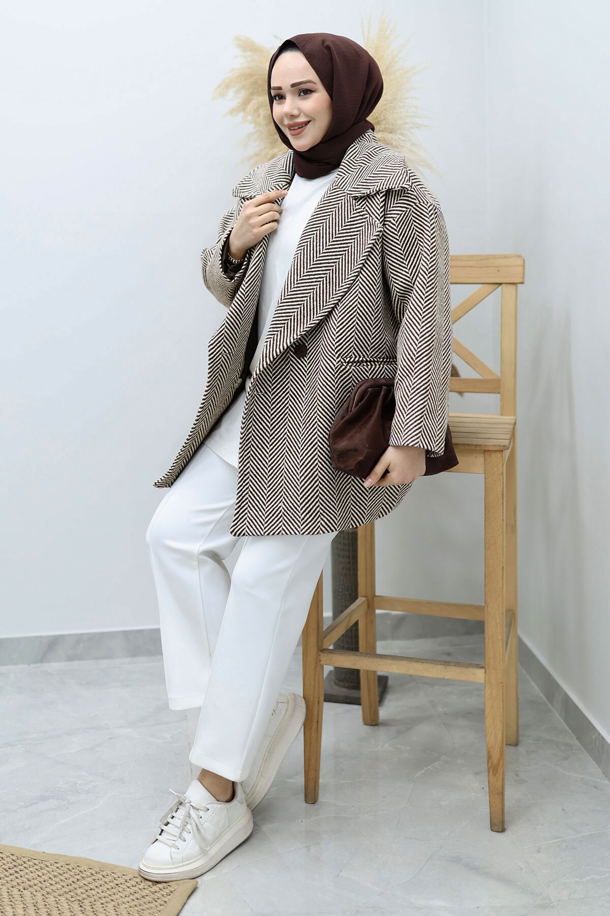 Cepli Balıksırtı Desenli Kaban TSD260129 Kahverengi Özellikleri