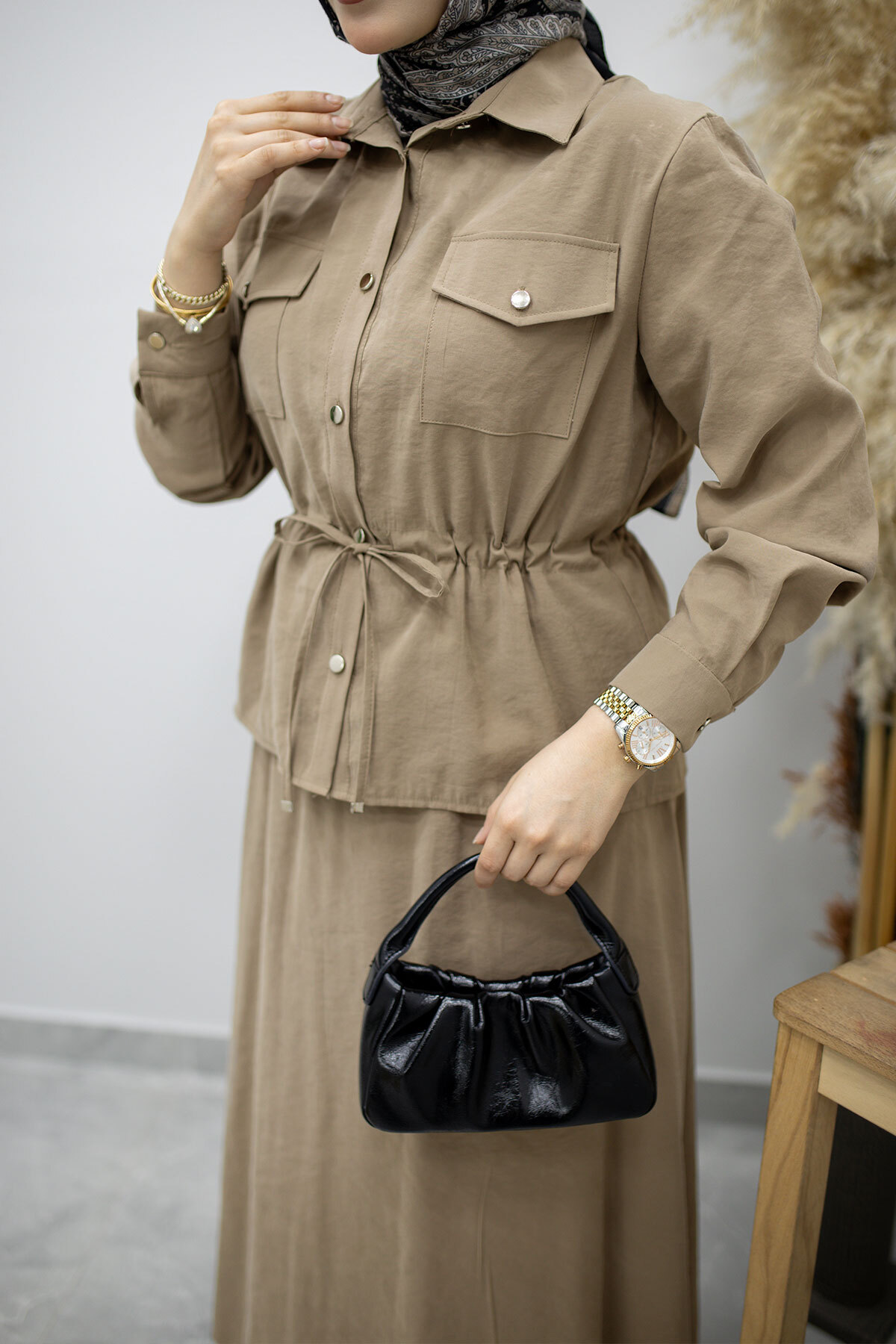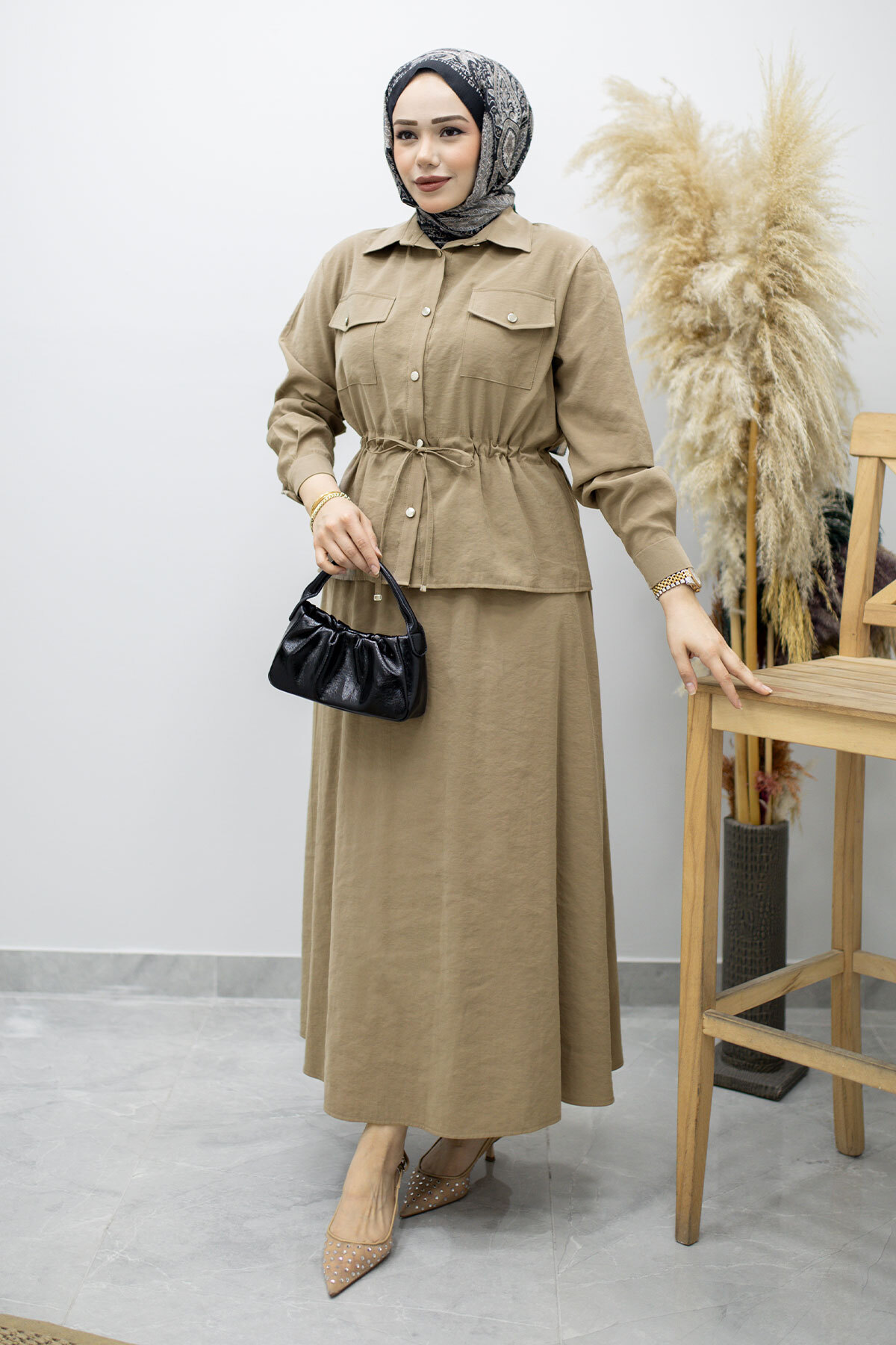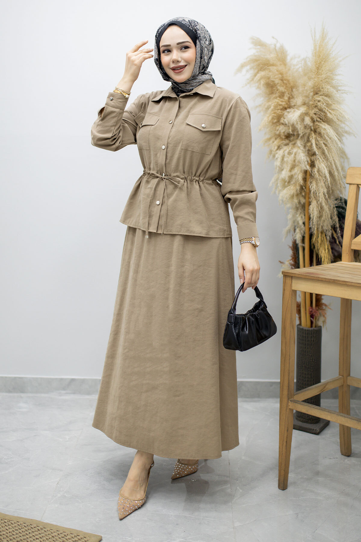 Ürün Özelliği : Yeni sezon Cepli Beli Büzgülü Etekli Takım modelidir.