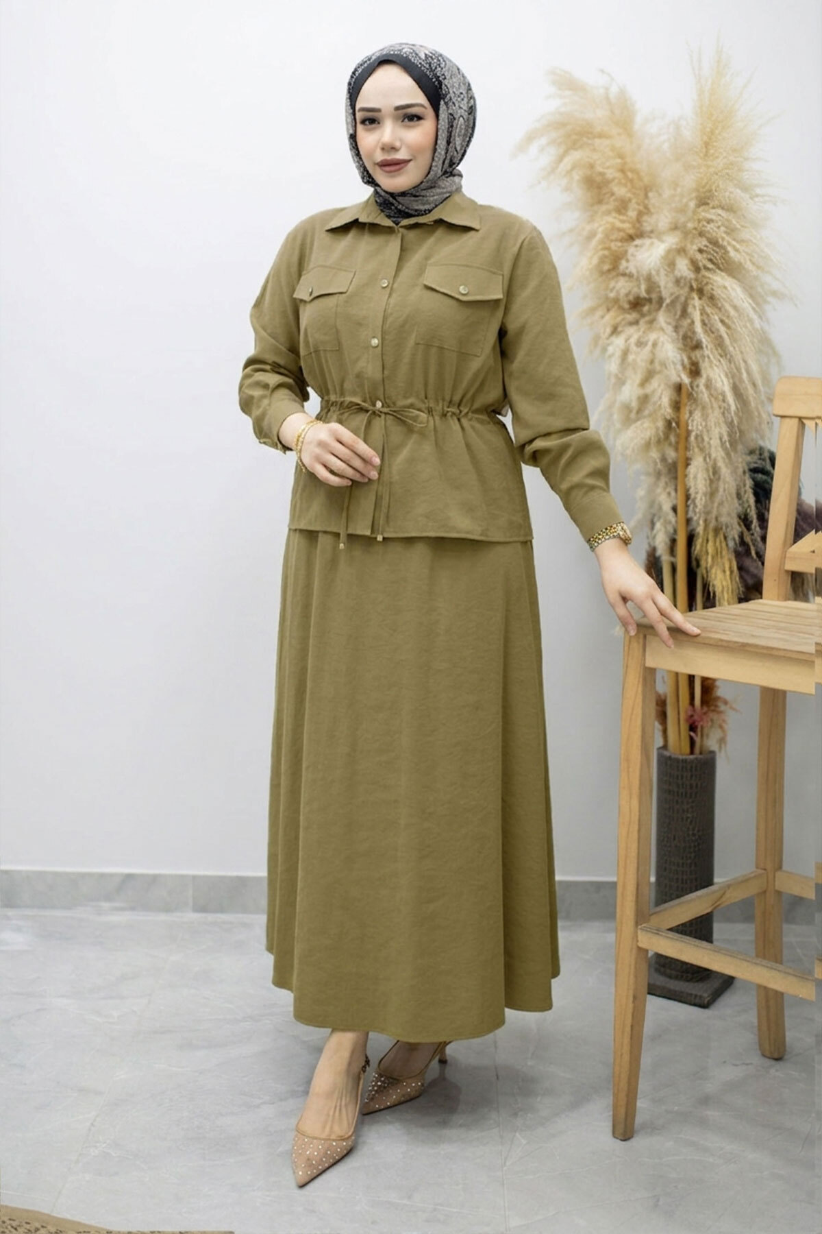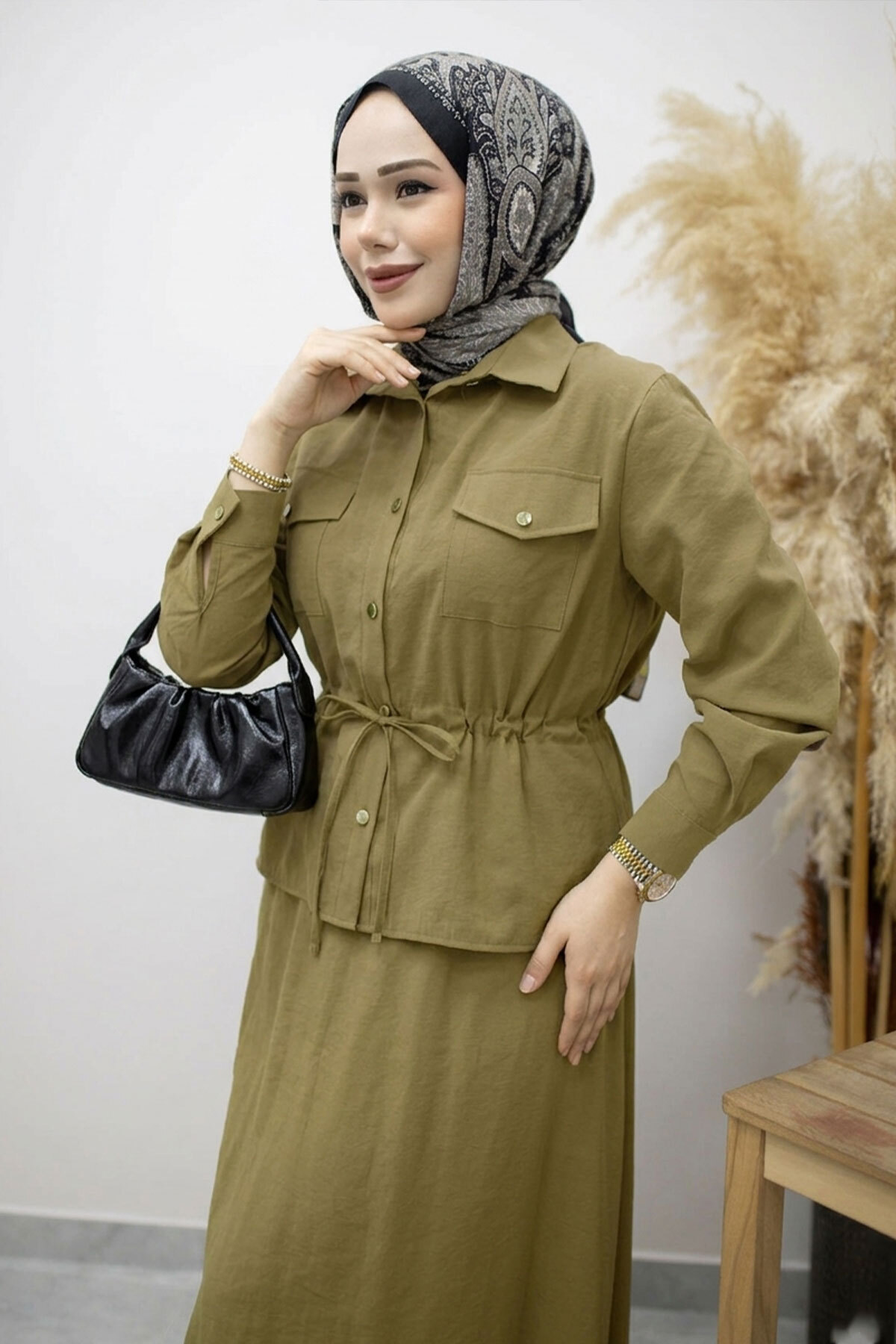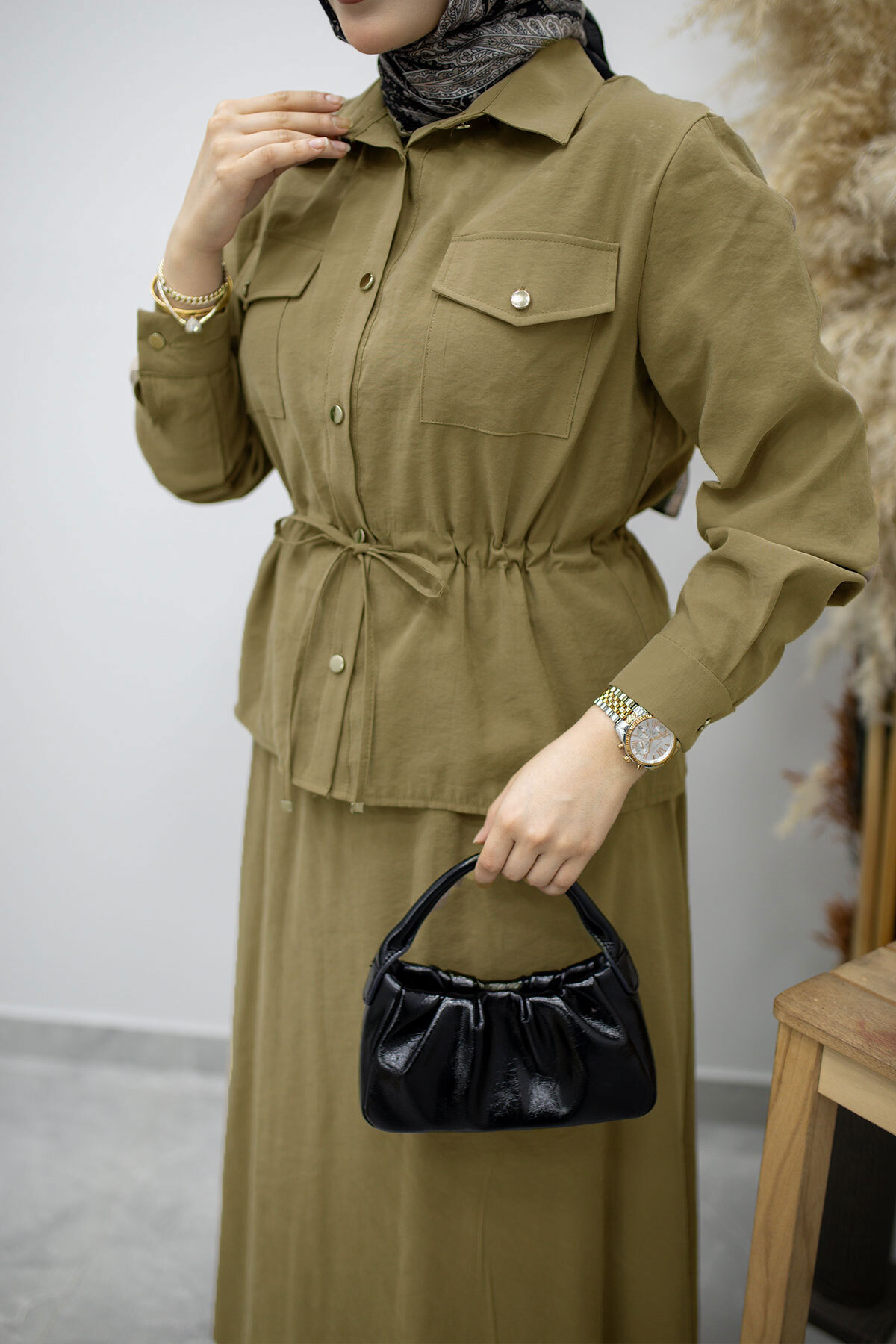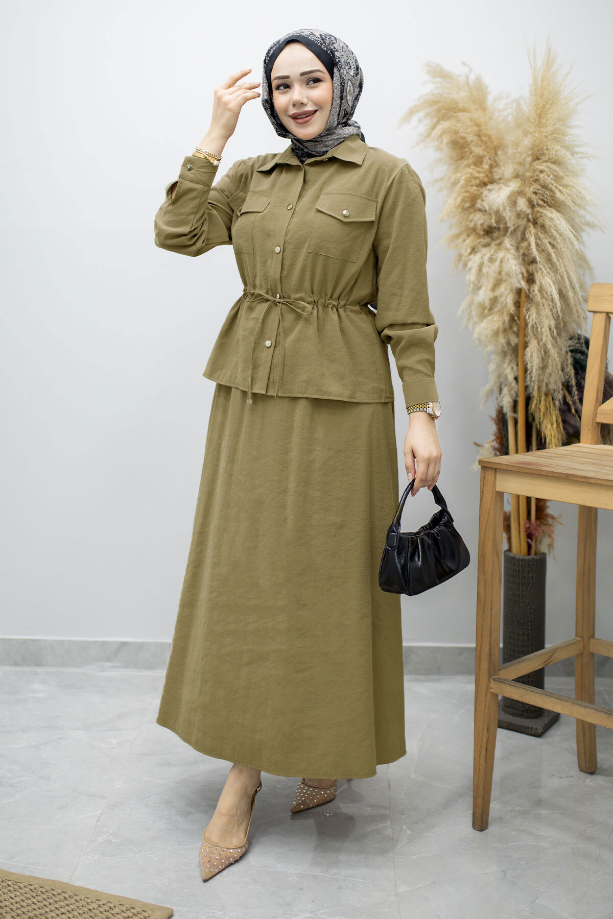 Ürün Özelliği : Yeni sezon Cepli Beli Büzgülü Etekli Takım modelidir.