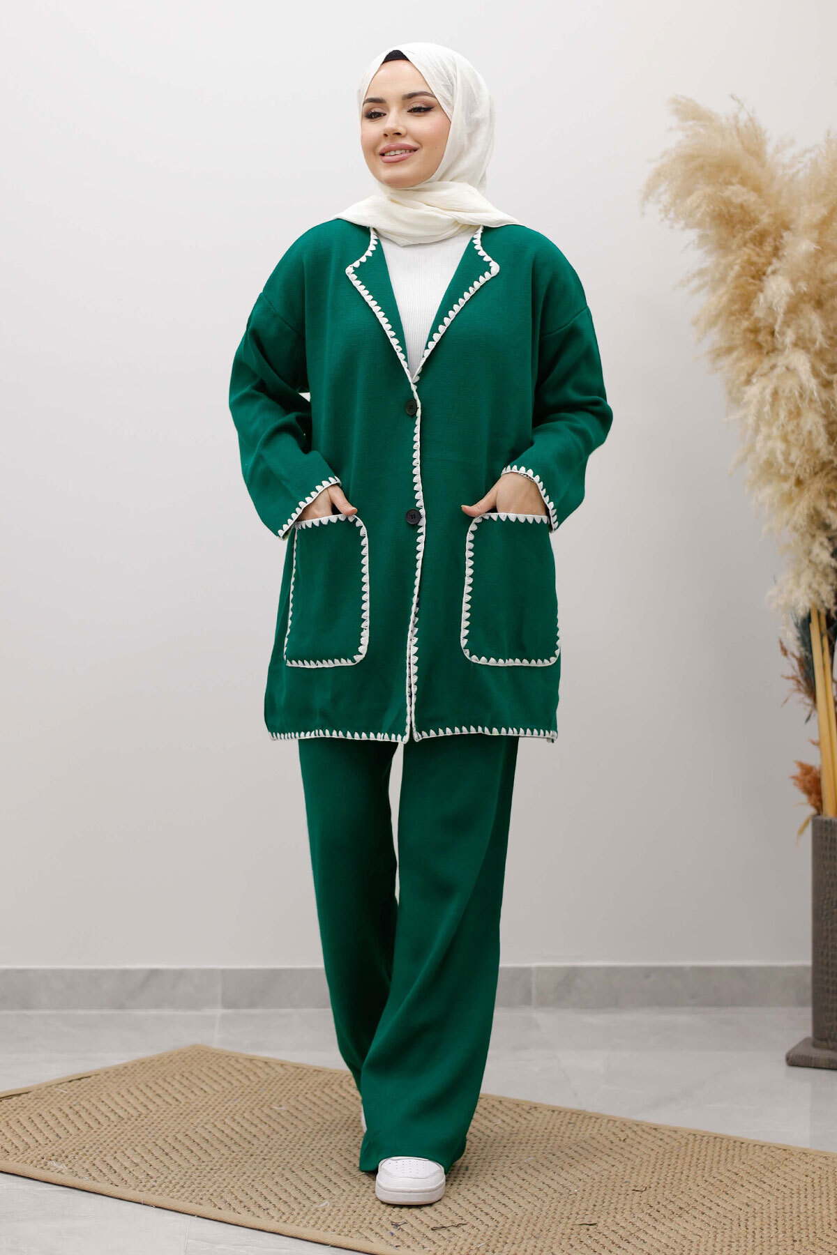 Cepli Çoban Dikişli Triko Takım TSD260100 Zümrüt Yeşil