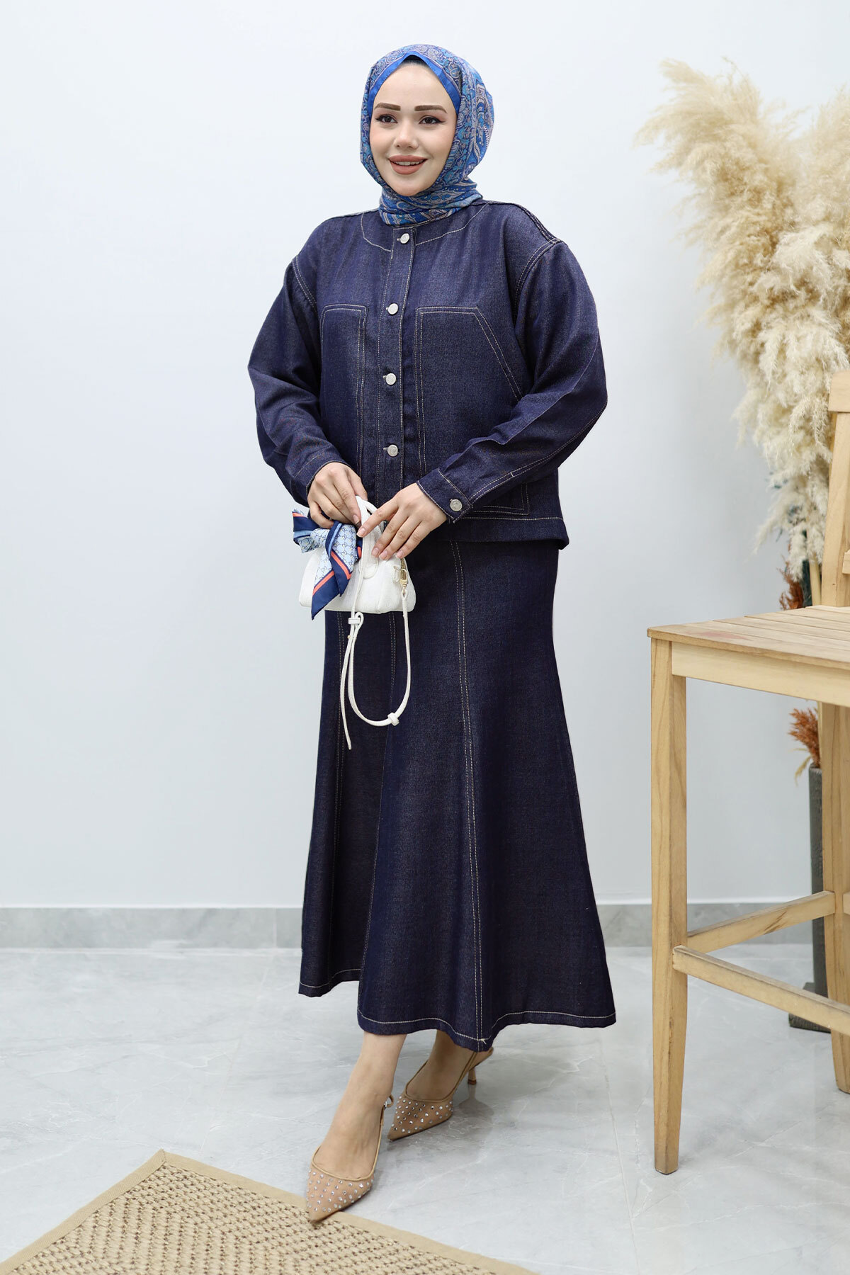 Cepli Denim Detaylı Denim Takım TSD260138 Koyu Mavi Özellikleri