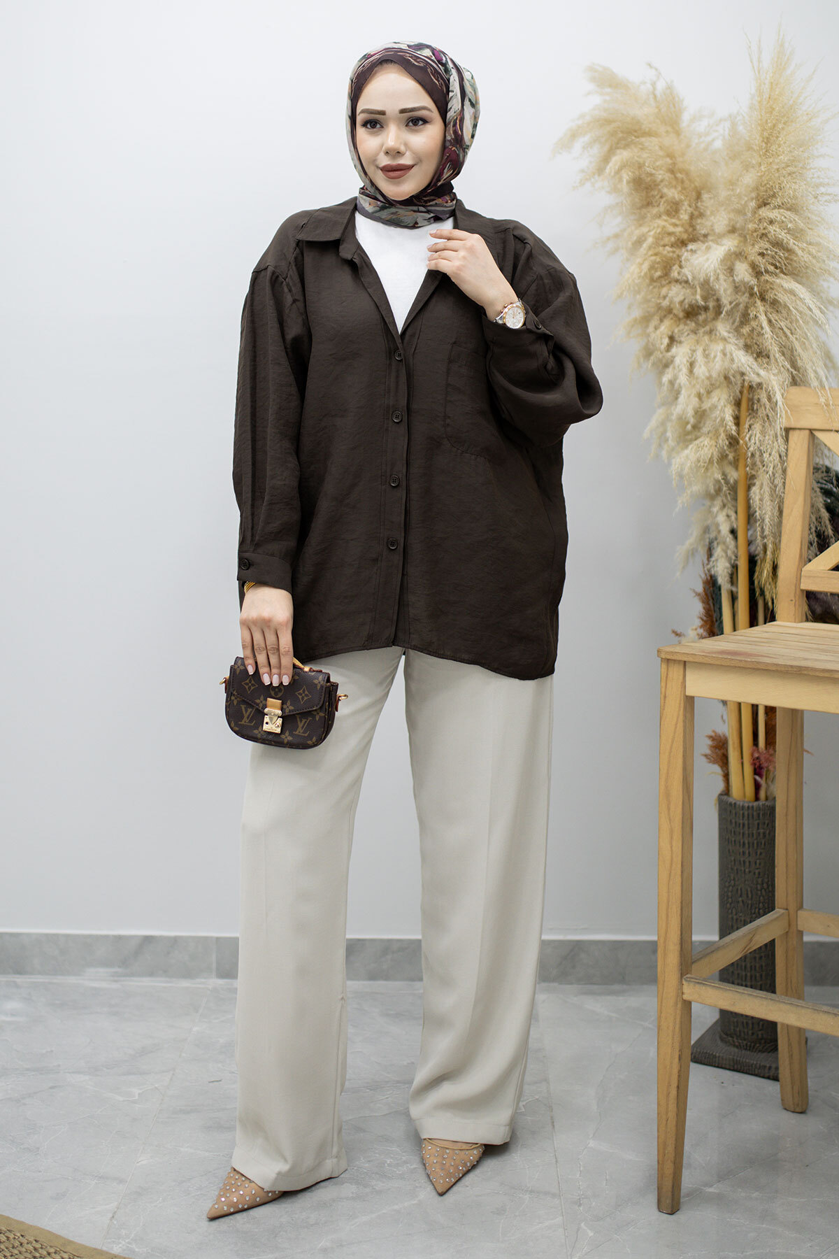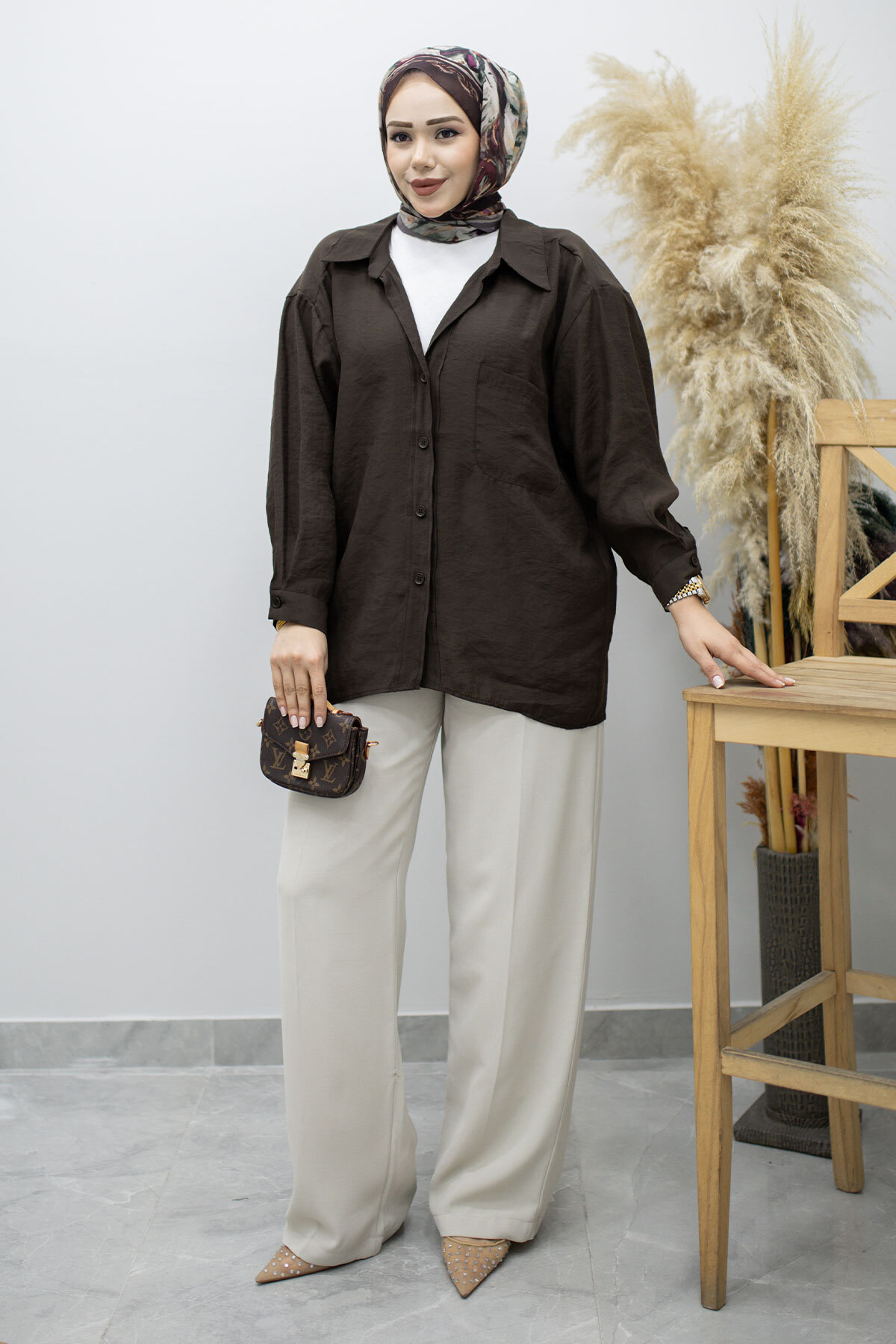 Cepli Oversize Gömlek TSD260167 Acı Kahve Özellikleri