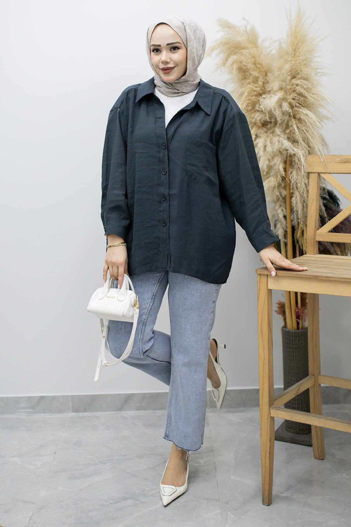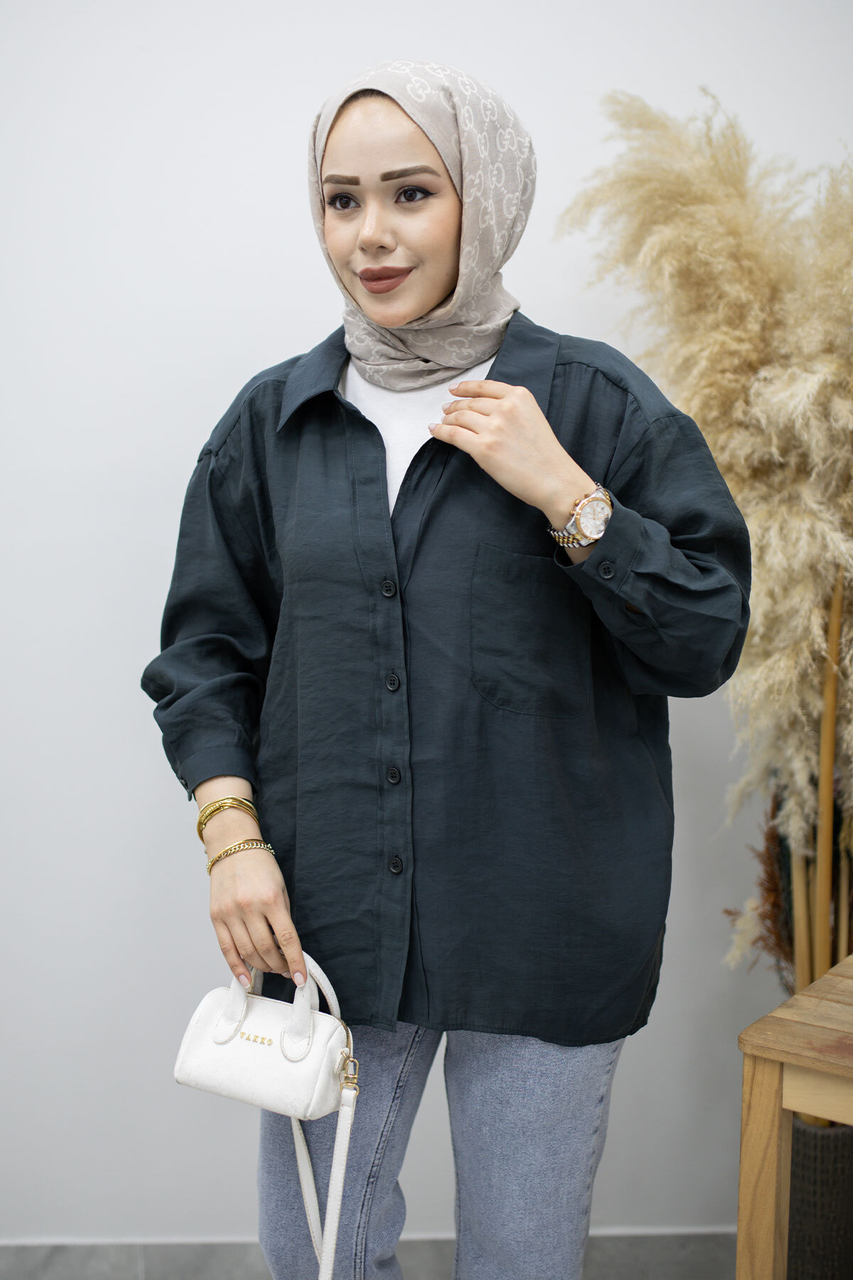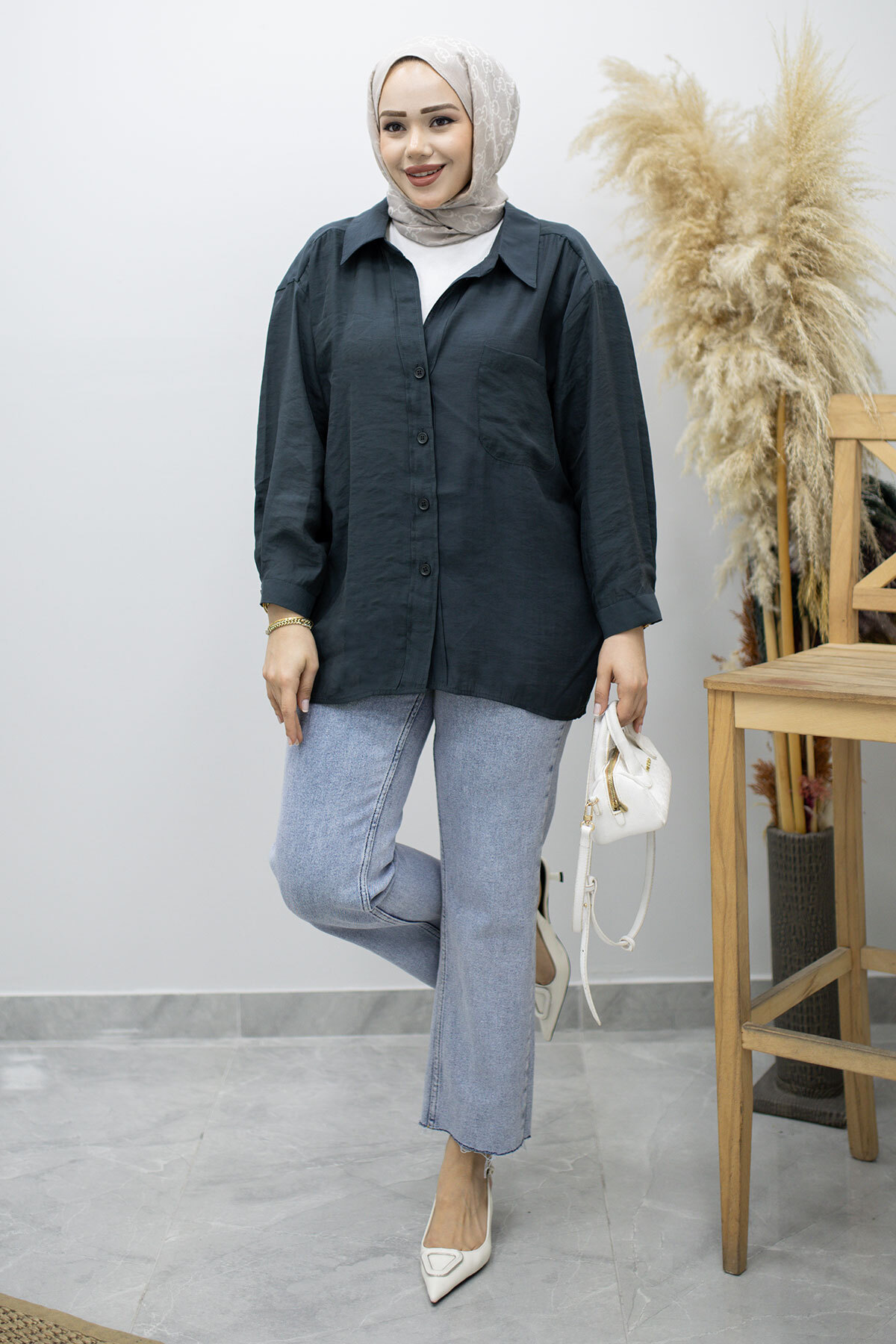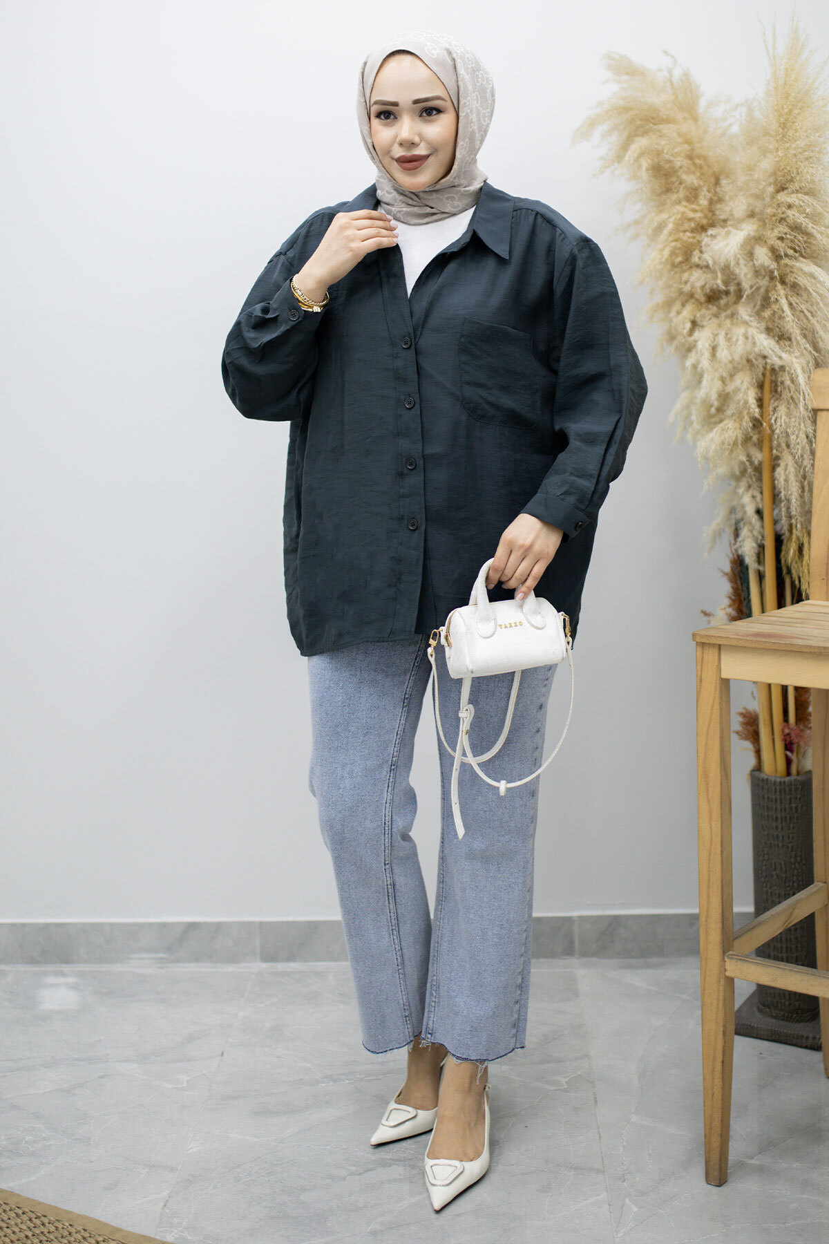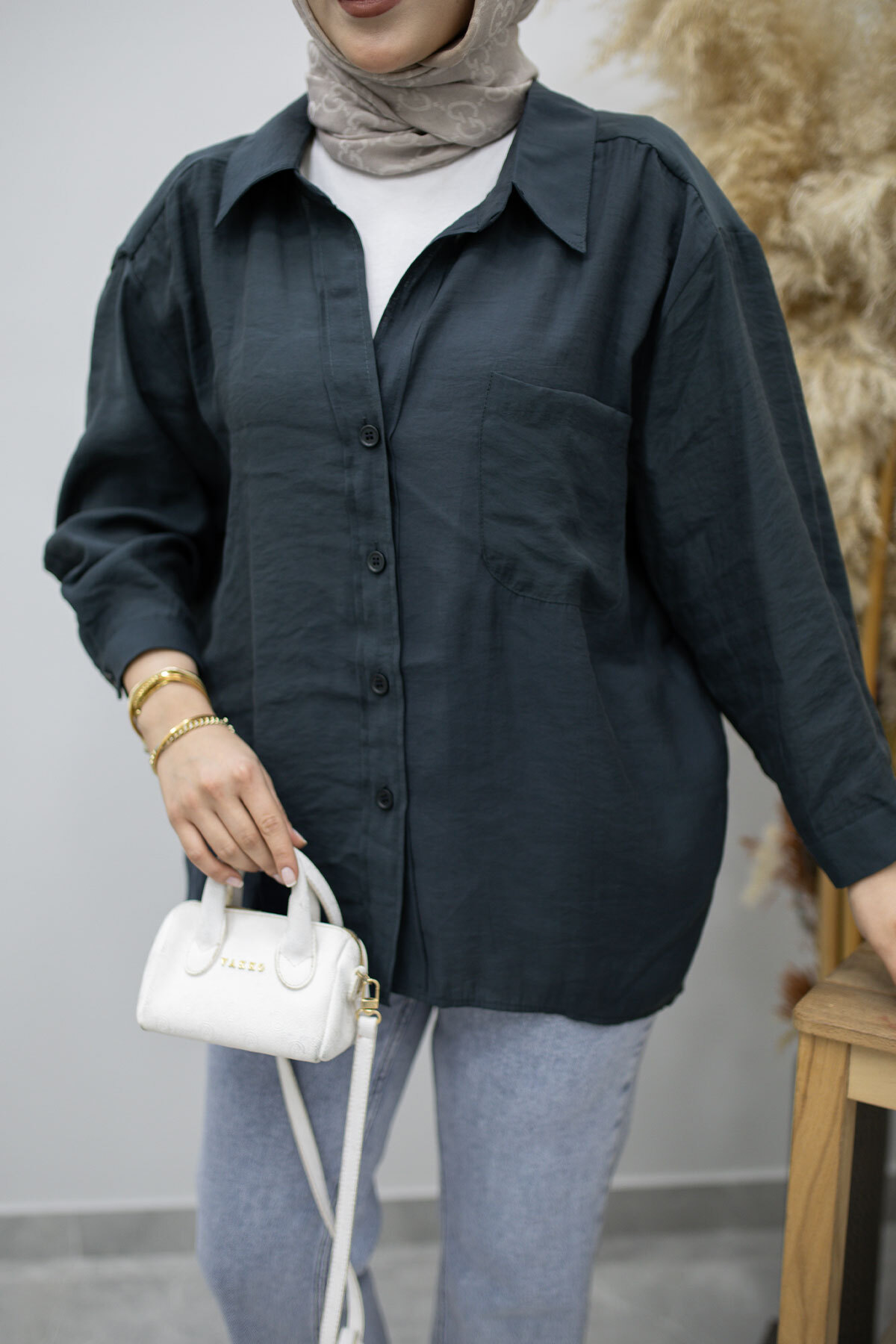 Cepli Oversize Gömlek TSD260167 Füme Özellikleri