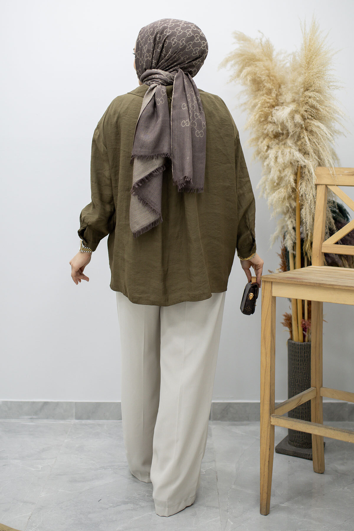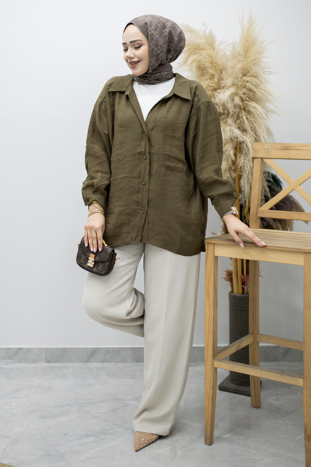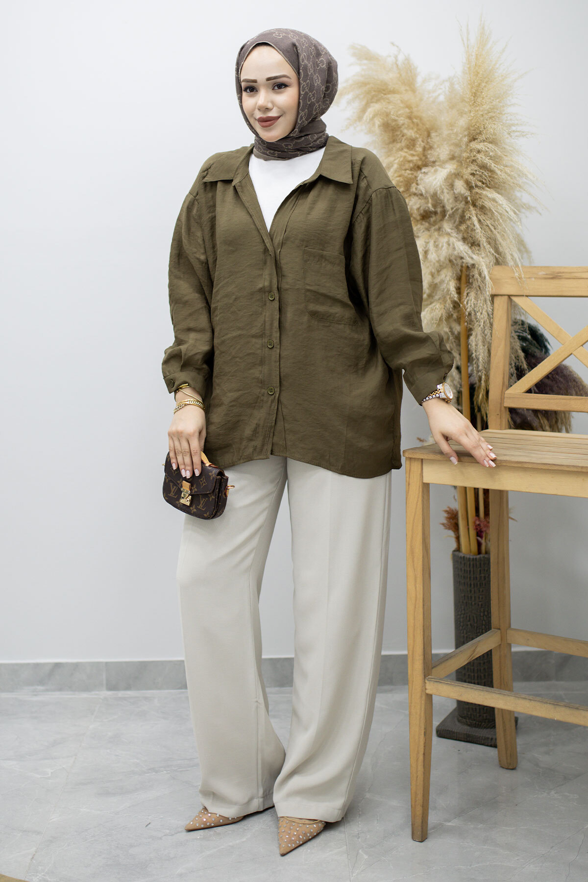 Cepli Oversize Gömlek TSD260167 Haki Özellikleri