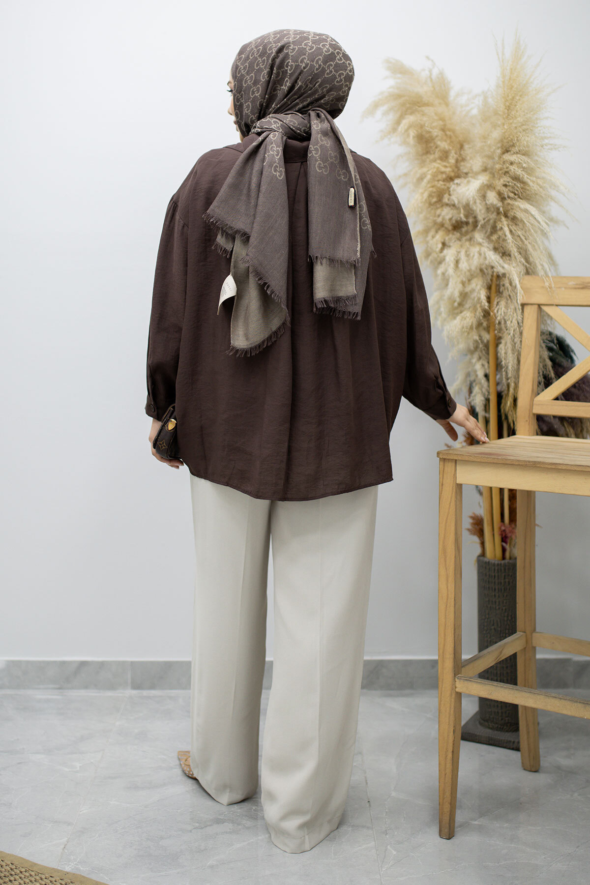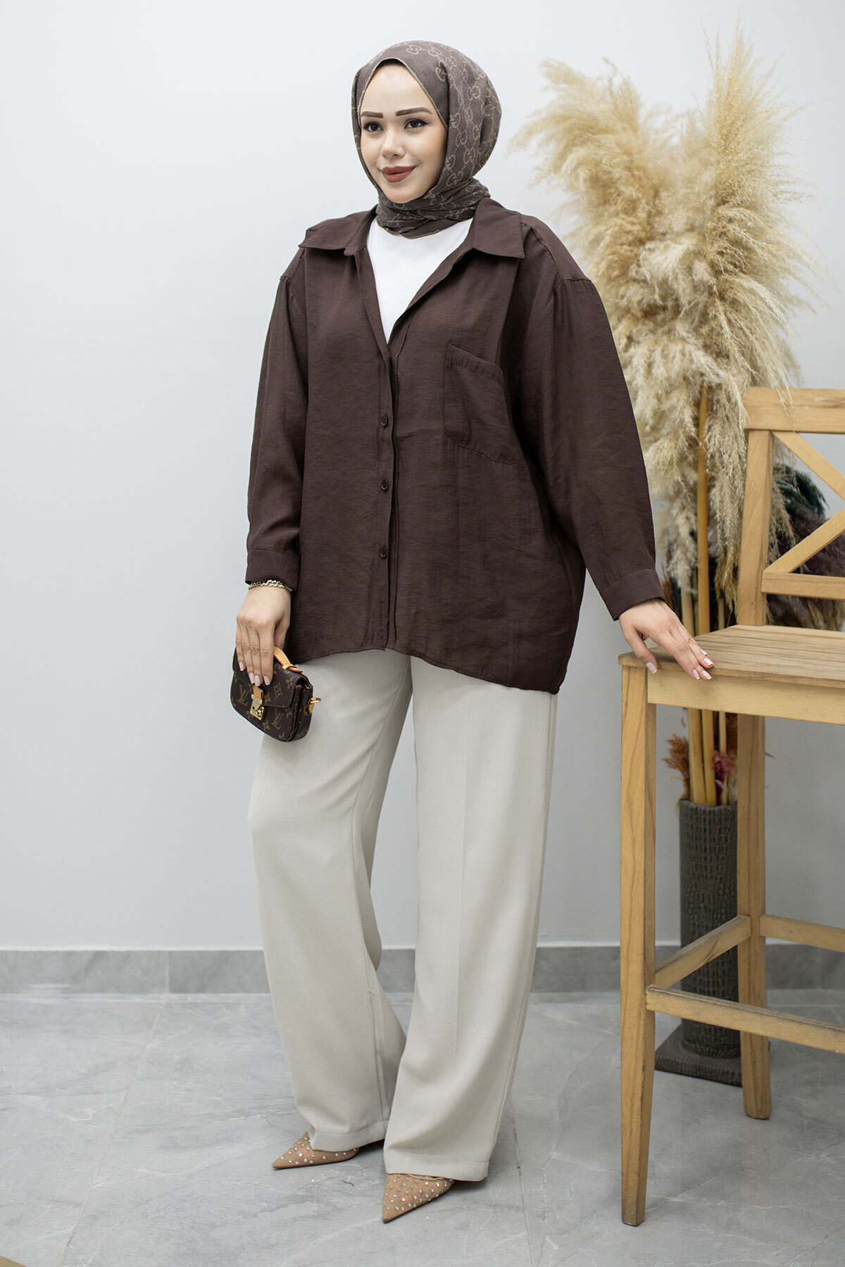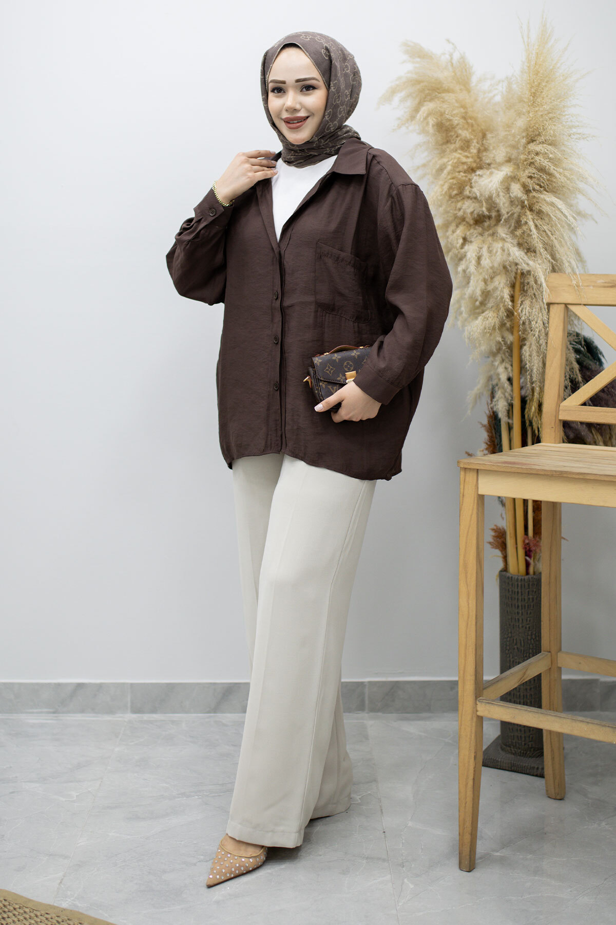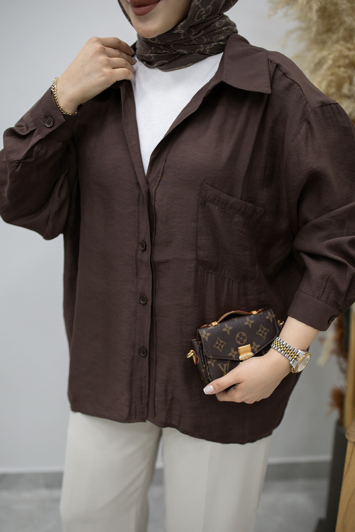 Cepli Oversize Gömlek TSD260167 Kahverengi Özellikleri