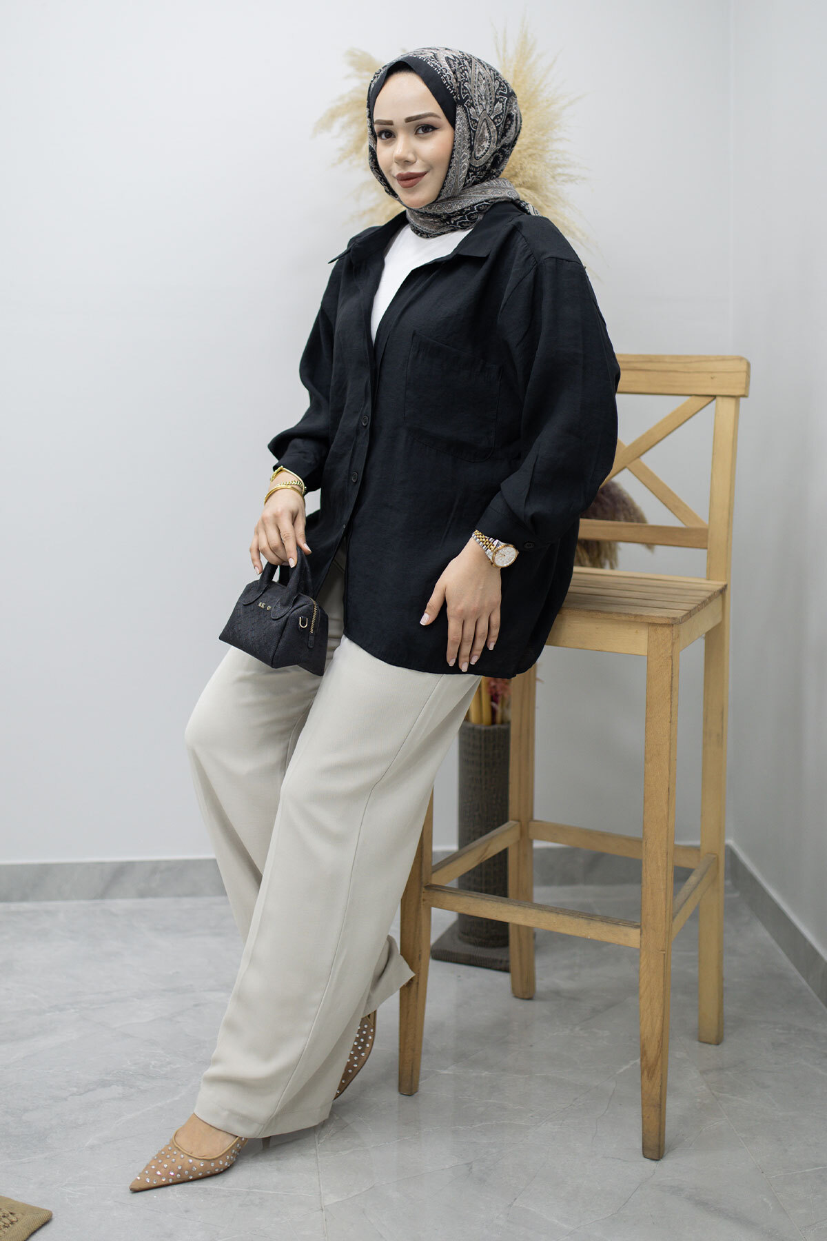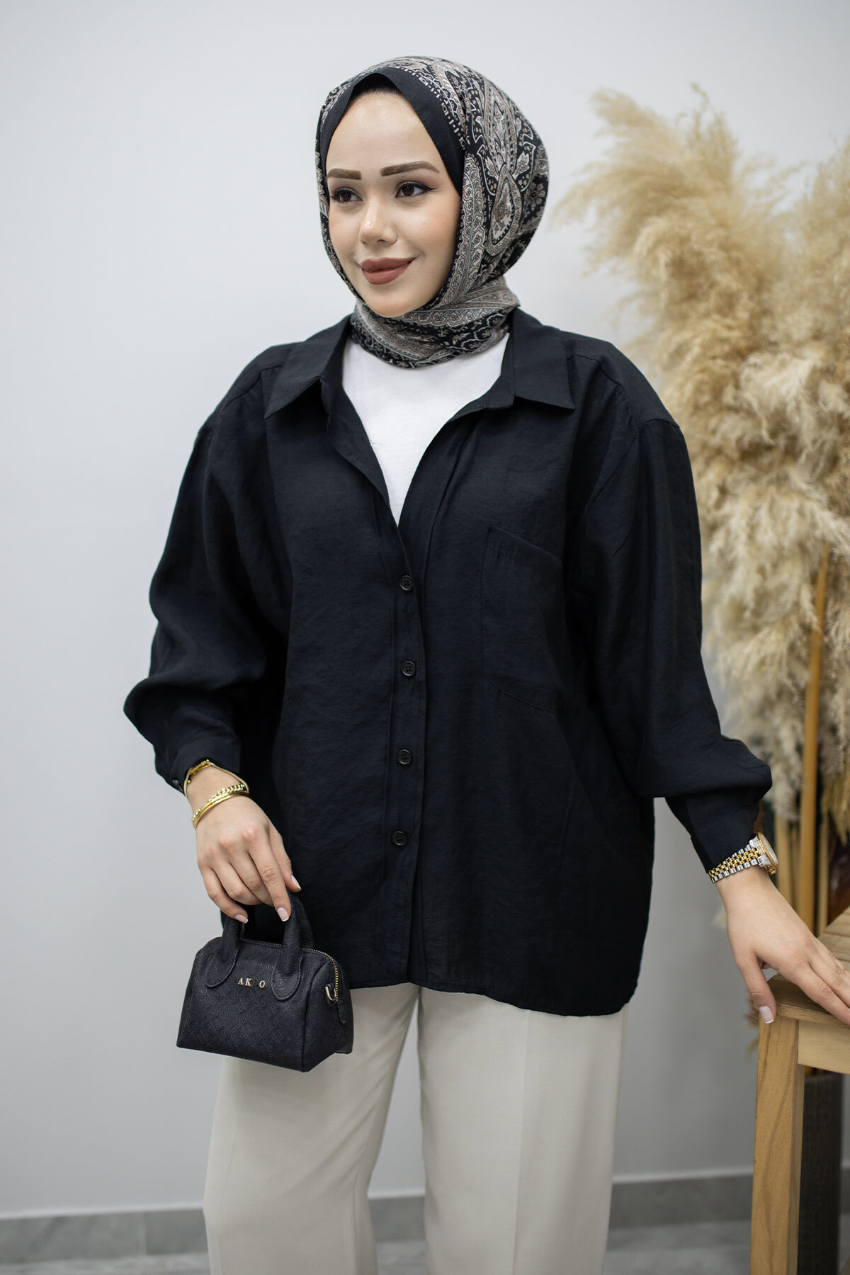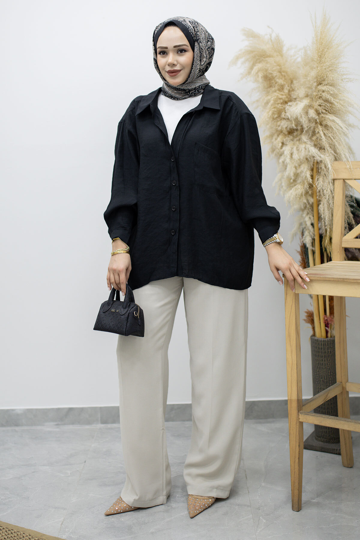 Cepli Oversize Gömlek TSD260167 Siyah Özellikleri