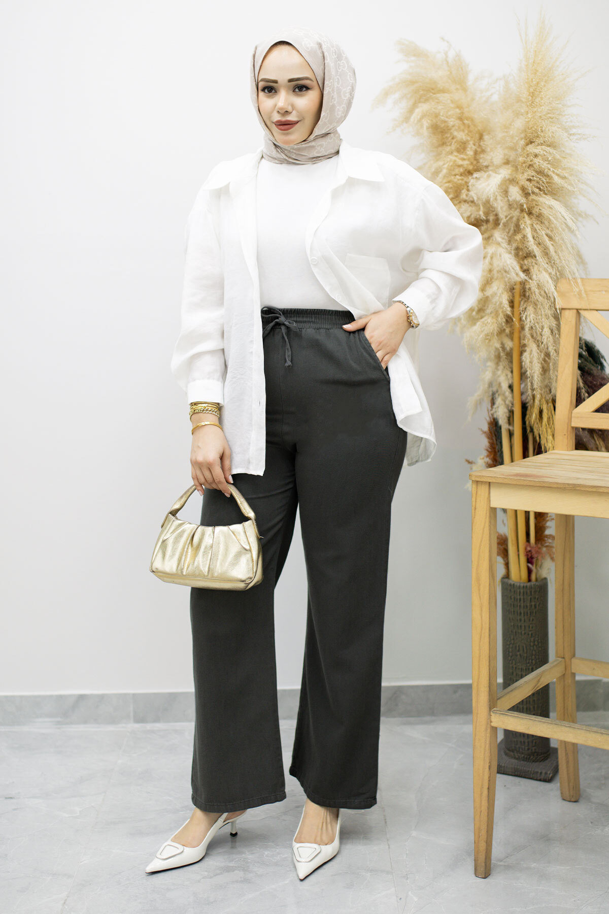 Cepli Yüksek Bel Pantolon TSD260157 Füme Özellikleri