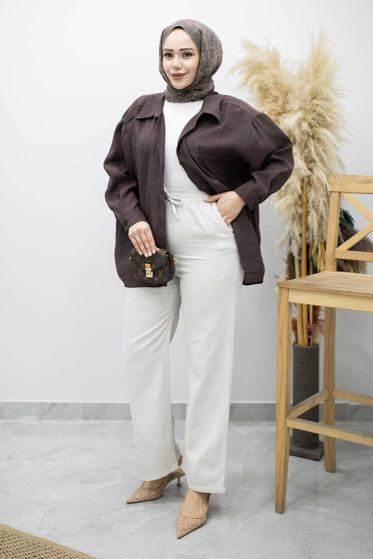 Cepli Yüksek Bel Pantolon TSD260157 Taş Rengi Özellikleri